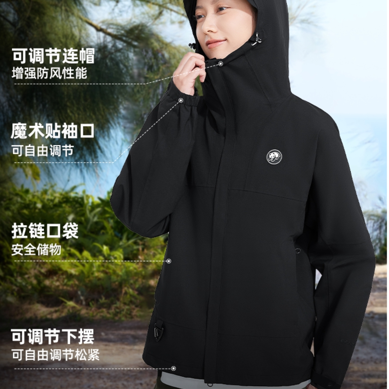 本篇笔记关联了【段小薇同款】骆驼熊猫系列防风防水硬壳拼接连帽单层冲锋衣 AA12235456 幻影黑/单冲等商品,为用户提供真实的使用体验和购买参考。