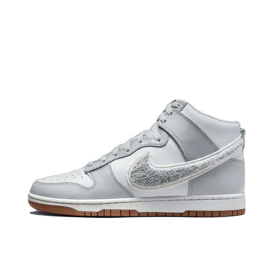 👟:Dunk High Retro University "Chenille Swoosh" 灰白色 简介: 鞋款是复古休闲板鞋中的Dunk鞋型,此款为高帮的设计外观,整体配色以灰白为主,又加入了生胶色,使鞋子更具复古气息。 细节: 鞋面选用了灰色的皮革做为主体的框架,白色的皮革进行填充,两侧的swoosh选用了毛巾布材料打造,使鞋款质感提升不少,且具有舒适的触感,织物鞋舌保证了鞋款的...