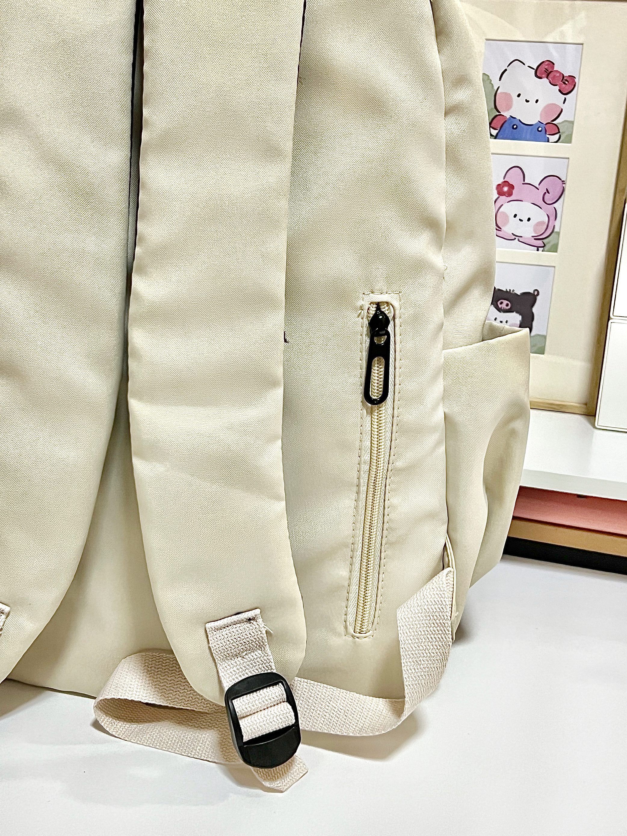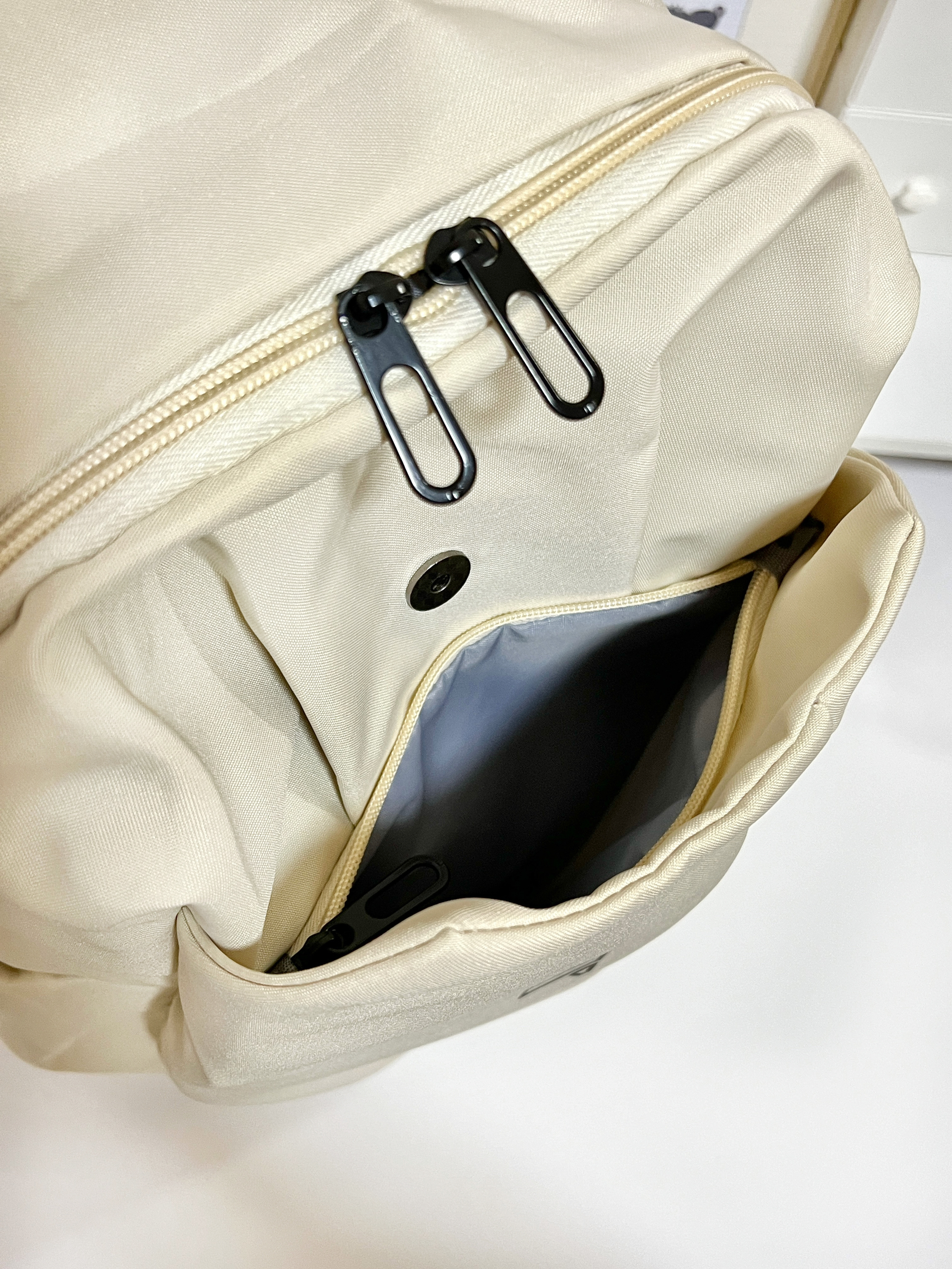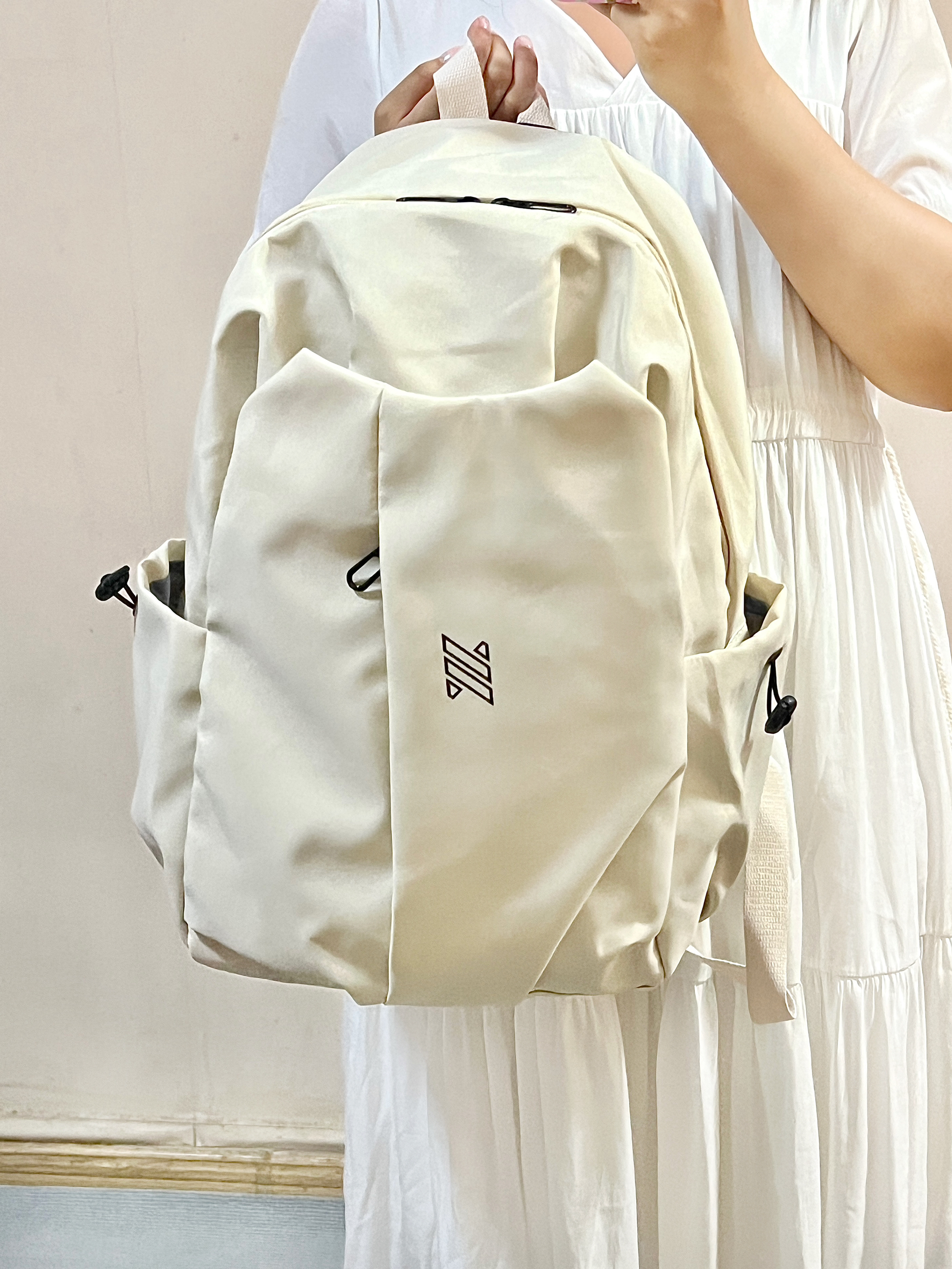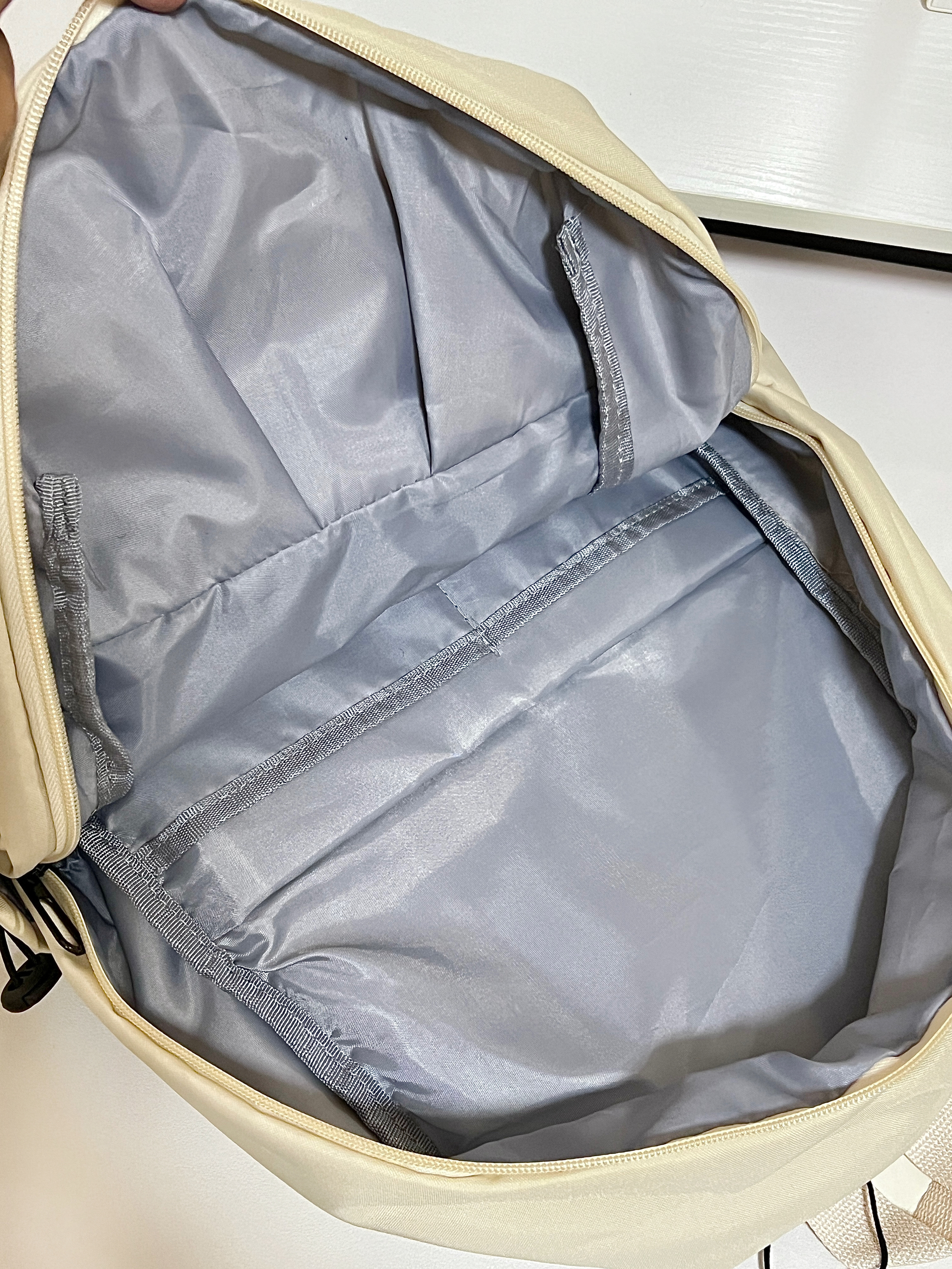 这次买的奶白色书包我尊的好喜欢! 奶fufu的超百搭!显得整个人温柔又阳光🧚♀️ 而且这个书包可能装了! 隔层还很多!装很多东西也不会乱乱的! 舍友们都来问我要🔗嘻嘻