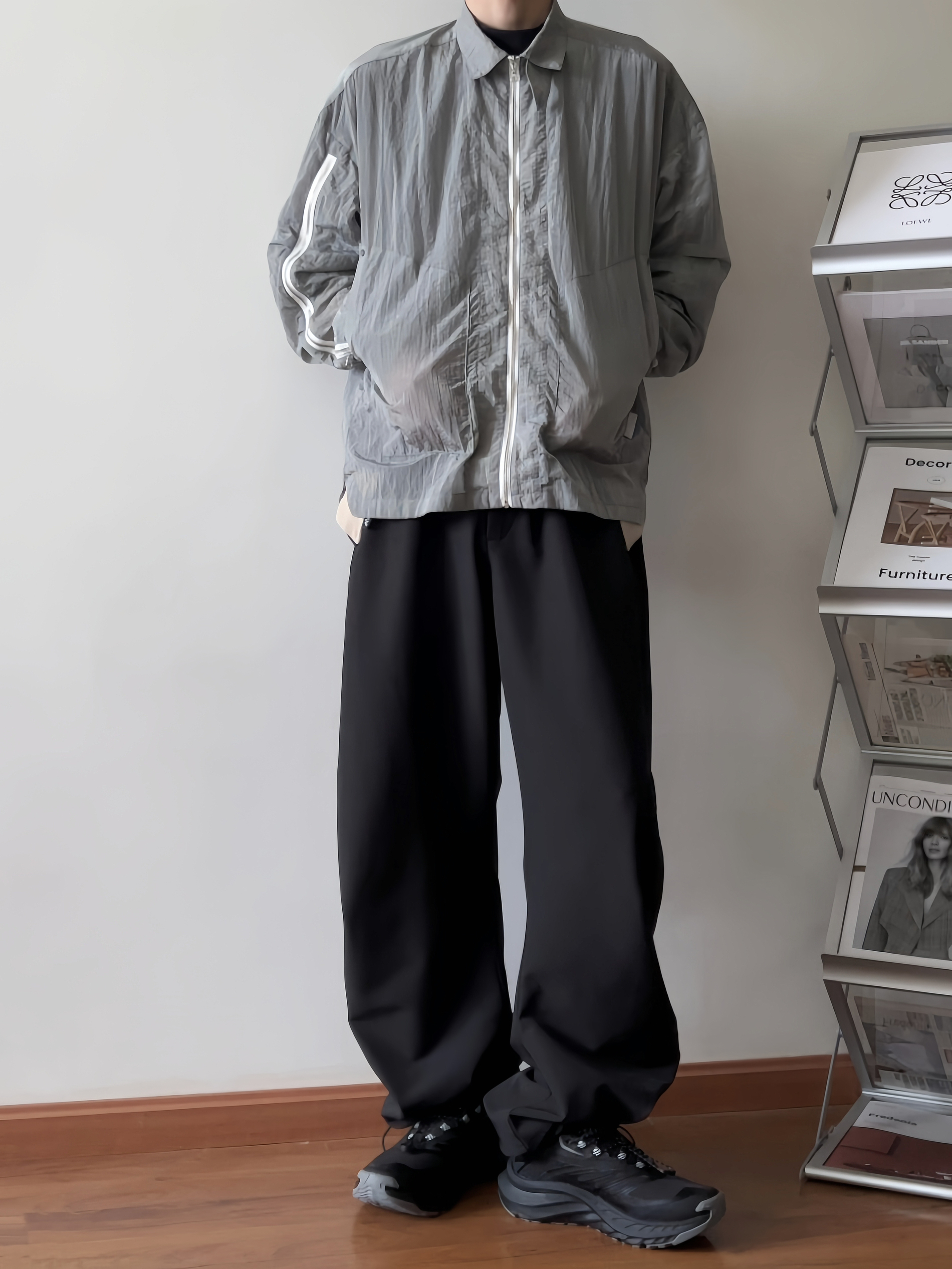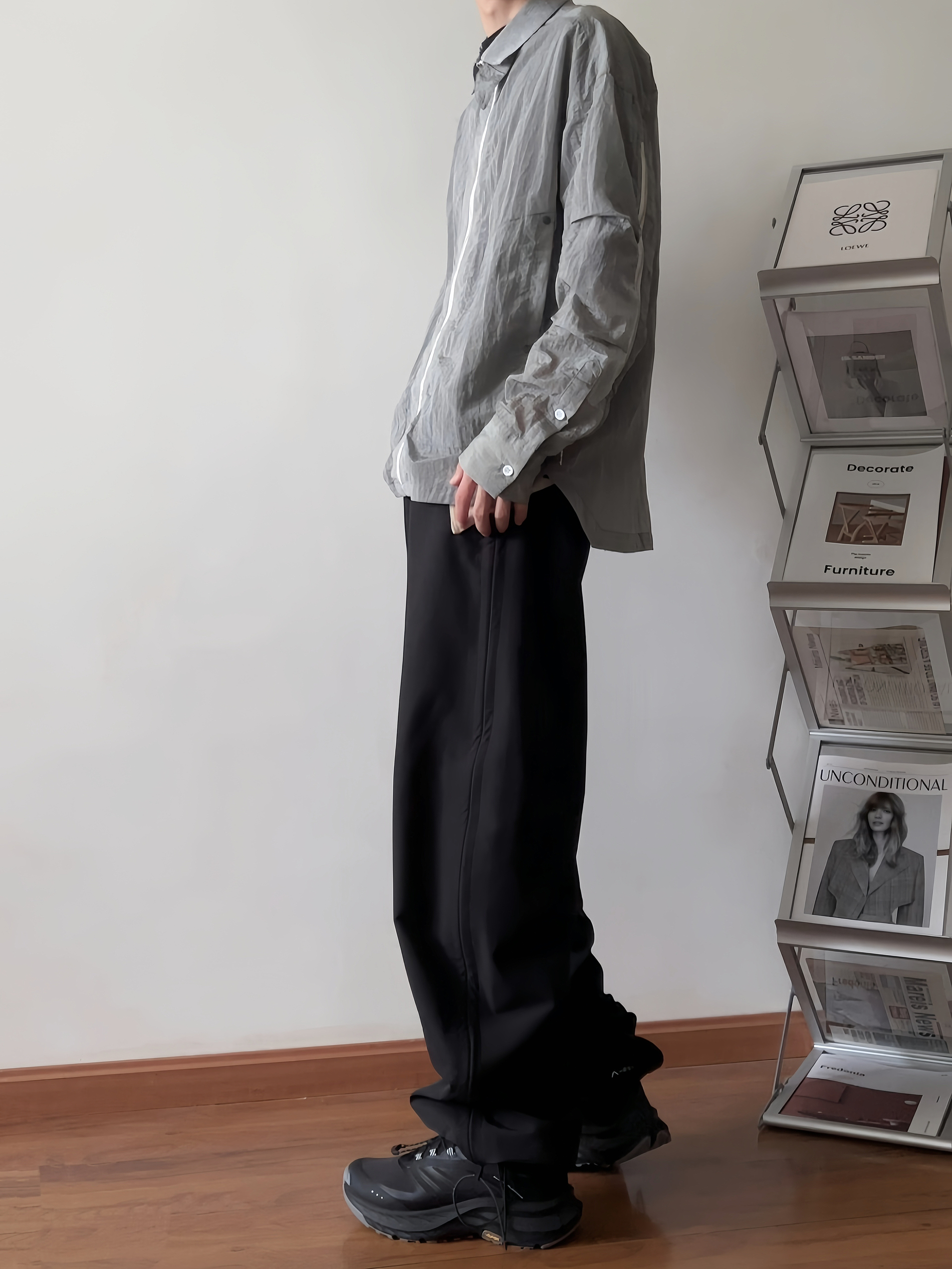 上身一件金属尼龙灰衬衫 内搭一件黑色打底这个季节刚和合适 裤子搭配了一条束脚机能阔腿裤👖 最后上脚一双安踏探野户外跑鞋 纯黑配色百搭又耐脏 鞋底采用vibram大底 安全防滑同时抓地力也很出色🌟 平时出门游玩或者户外徒步这双鞋都会是不错的选择⛰️