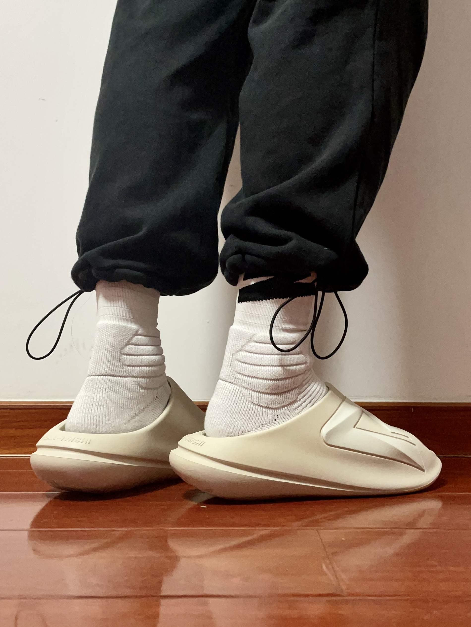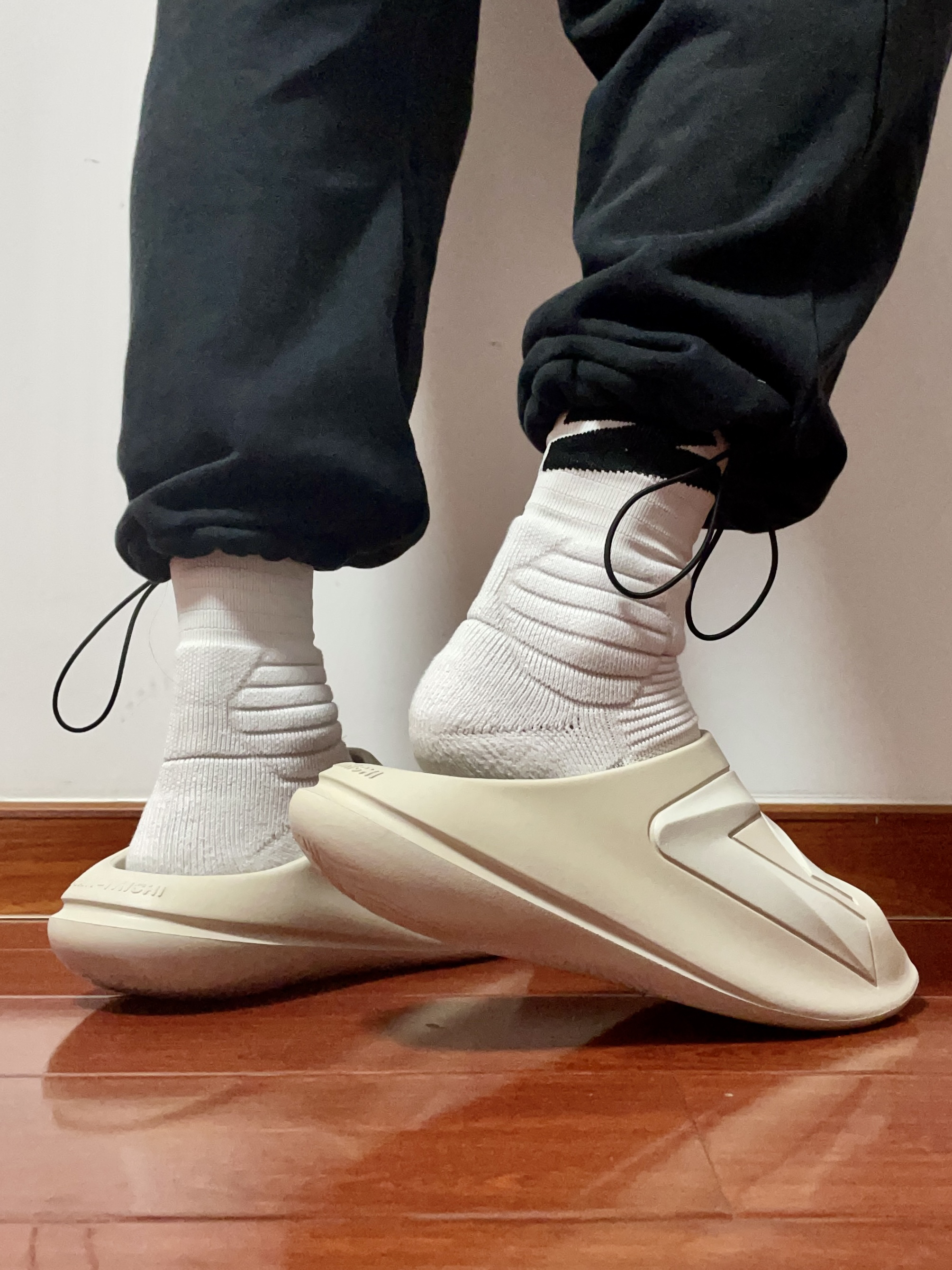 不敢说有多顶级,但这双拖鞋打五分是绝对没有异议的👌🏻 调校后的态极➕摇篮式鞋底形状➕带点凹凸的足底面,让这双小胖拖非常舒适,滚动感是匹克拖鞋里顶好的,也不会因为中底过软脚酸了。🛋️踩在沙发上的感觉 但尺码问题很大,📐正常篮球鞋码数买小2码,有半码就买小2.5码。这里的正常码是指其他品牌的码数,匹克篮球鞋码数是不正常的 包裹舒适,建议穿袜子穿着,脚背大部分都会有EVA材料裹住...