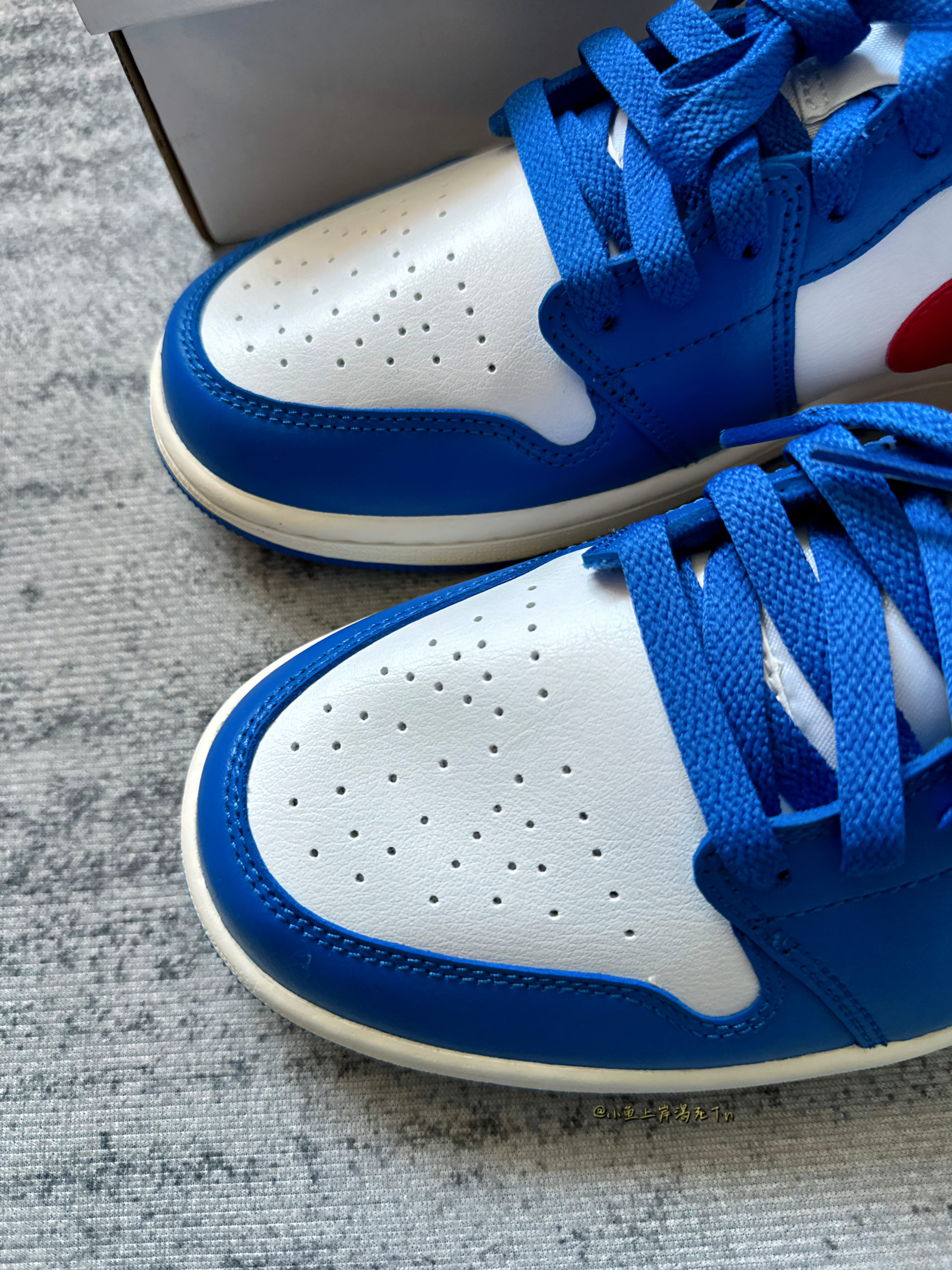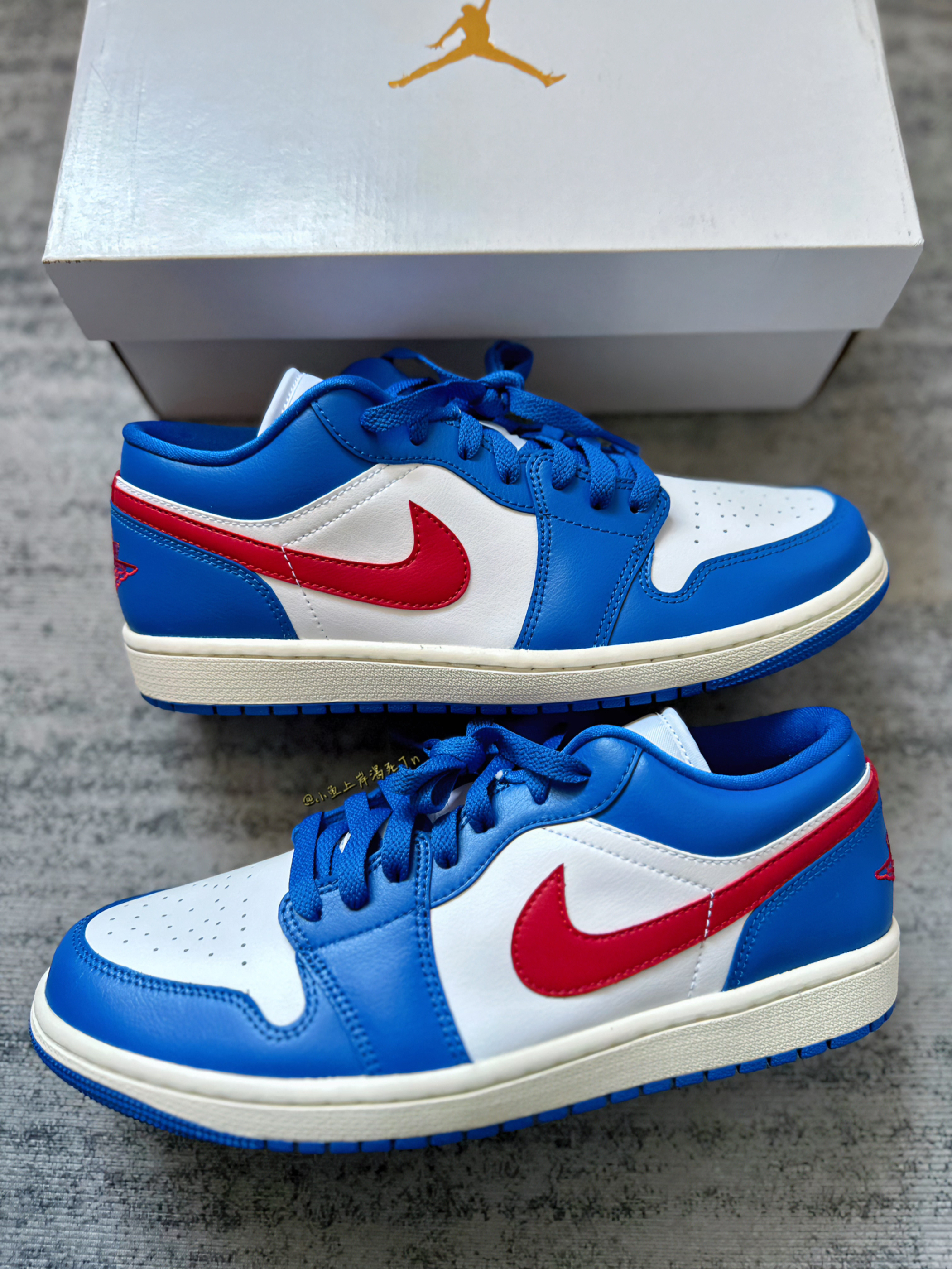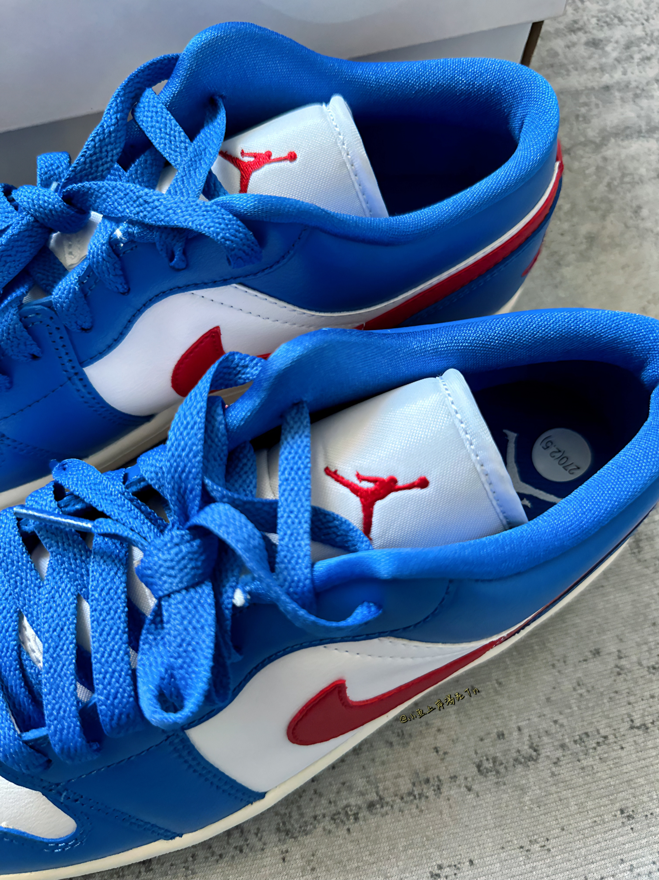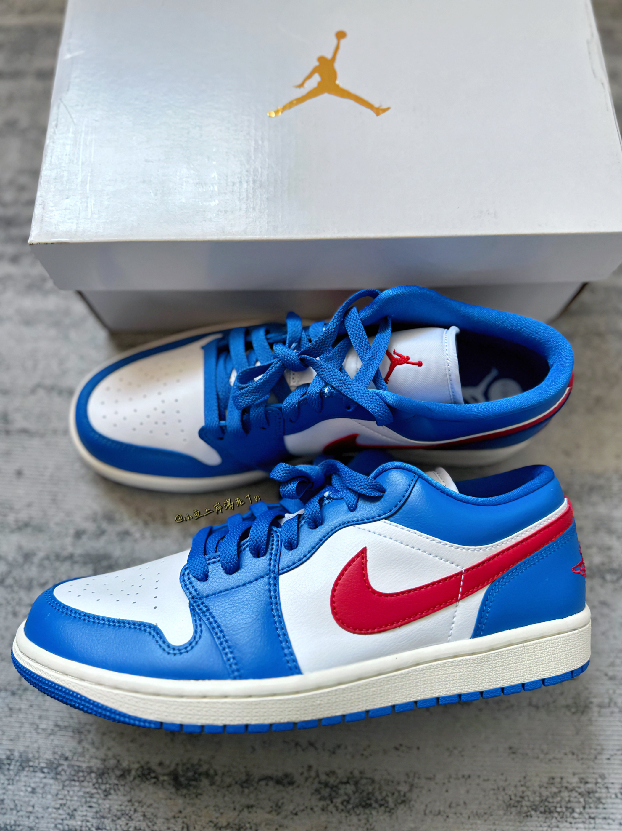 哈喽 小鱼🐟来喽! 这也是离七夕节越来越近啦!还没准备礼物嘛 这双ai1 low白蓝红 很像叮当猫配色 三位数的预算很适合送女友 配色也是比较百搭的 夏天搭配裙子短裤什么的都是可以的 鞋面合成革拼接合成革 质感还不错 蛮好打理的 上脚舒适度也还不错 七夕节送女友很合适啦