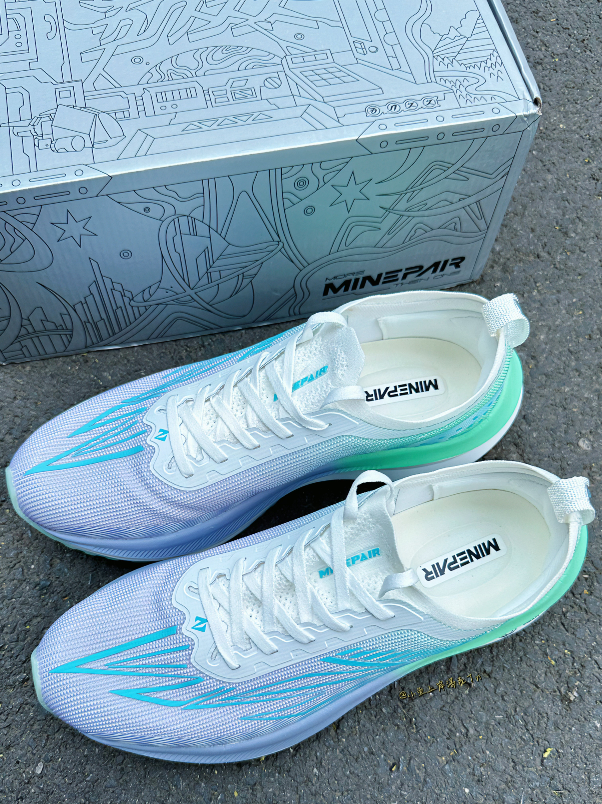 哈喽 小鱼🐟来喽! 今天给大家推荐分享这双回MINEPAIR吾双 运动跑 鞋 这款紫绿配色还是很小清新很帅的一款 我蛮喜欢的 整体给我一种干净清爽活泼的感觉 很适合夏天 鞋面整体飞梭织面 透气性强度都是很不错的 中底采用吾双頓态科技 缓震都是很不错的 大底前后掌分离式橡胶大底 防滑耐磨 适合入门级的跑者 1开的性价比也是很不错的