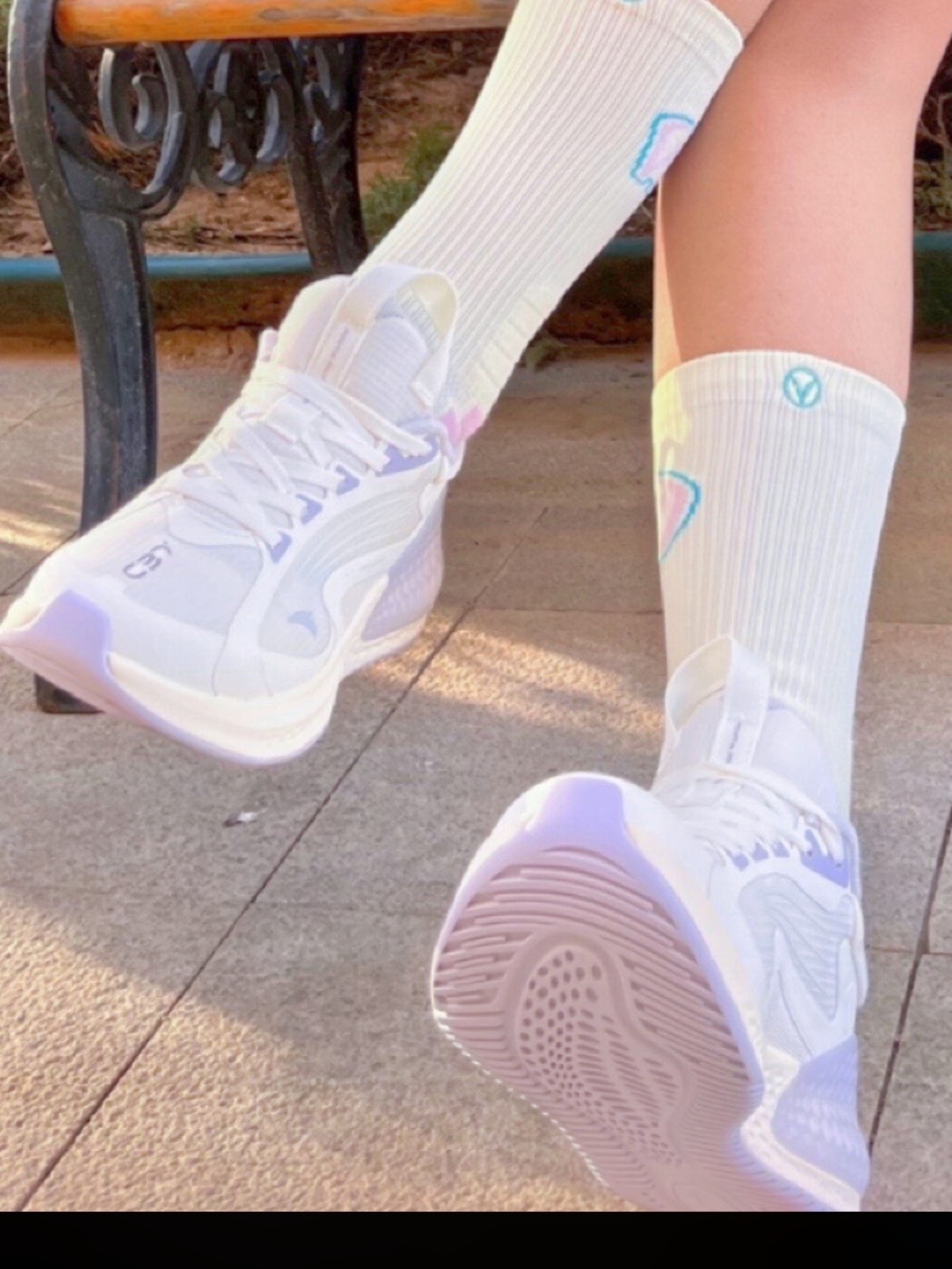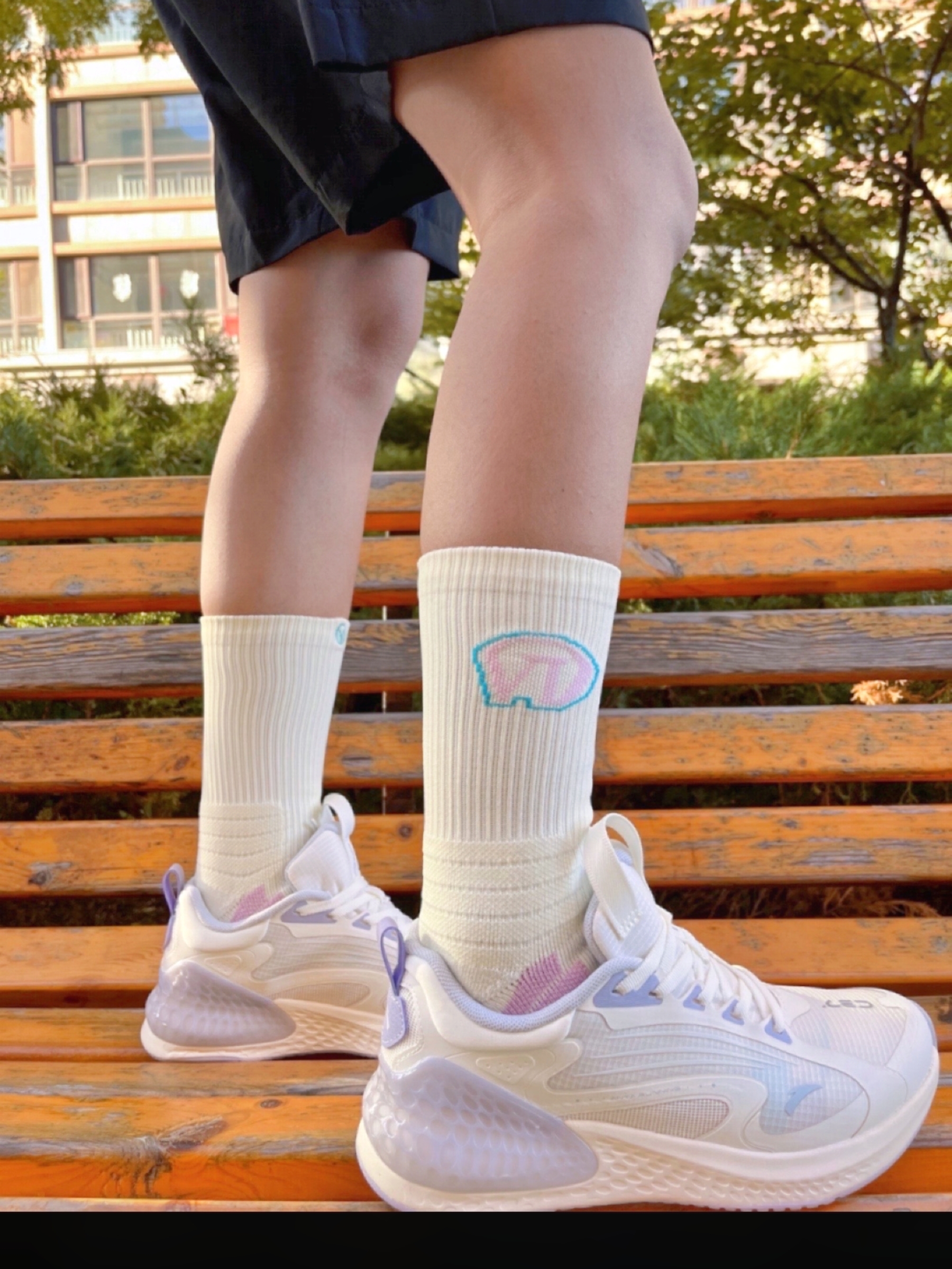 这毛巾袜的很难不爱! 这款维动篮球袜 首先从颜值上来看,冰激凌配色 1,可以随意 搭配各种配色的球鞋 采用网眼透气的面料阻,运动过程中透气吸 汗,脚腕处采用加厚防护面料( ,脚底做到了防滑 减震得,上脚舒适,非常适合经常运动的宝子们!