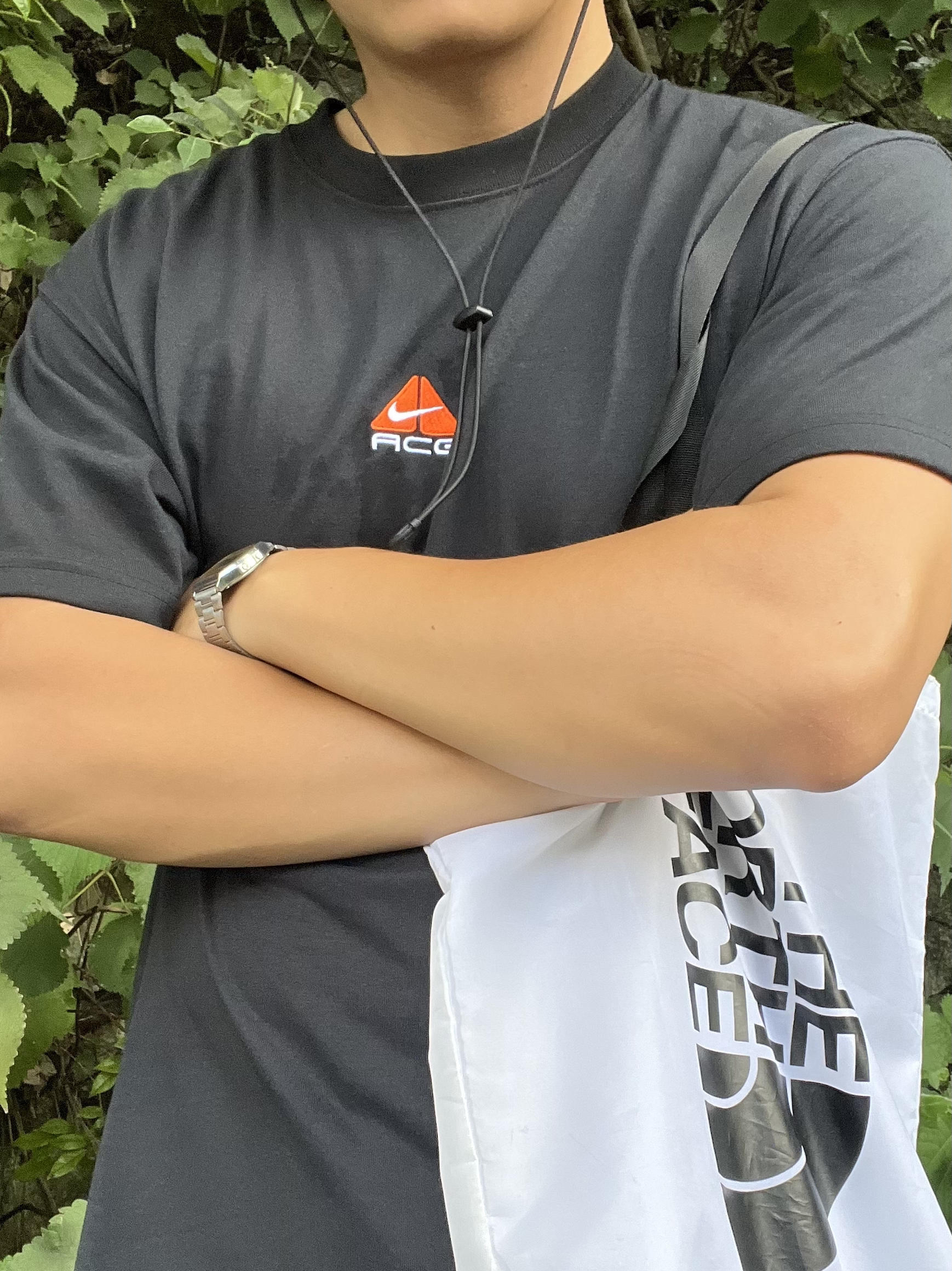 PS:身高:175cm/体重:75kg🙌🏼 ACG这件黑色短袖T也太适合户外搭配了!👏🏼胸前精细刺绣小logo非常特别,ACG保持了专业户外的水准,t恤久穿不闷,特别舒服!😆搭配军裤➕户外鞋,套上一顶遮阳效果出众的渔夫帽,在户外没人能比我更野!⛰️