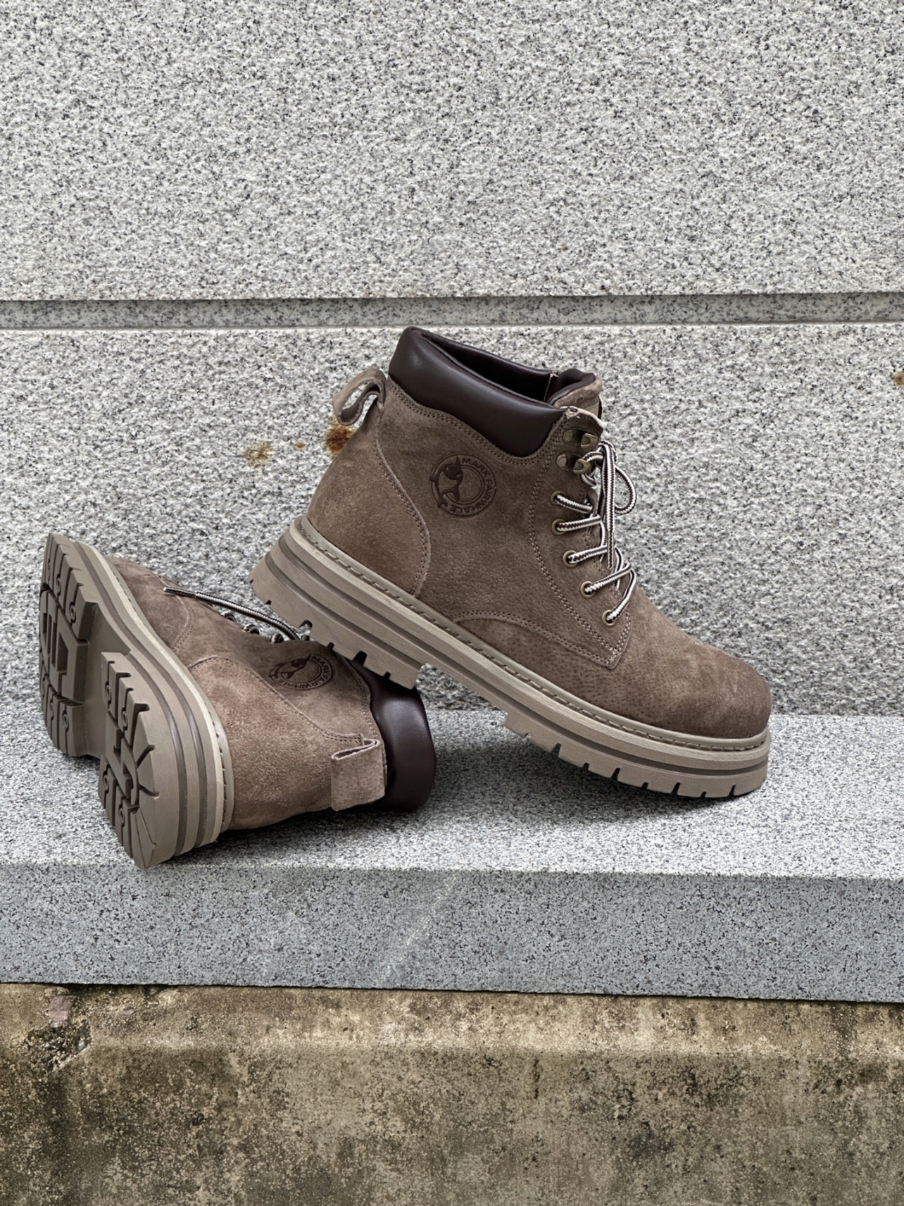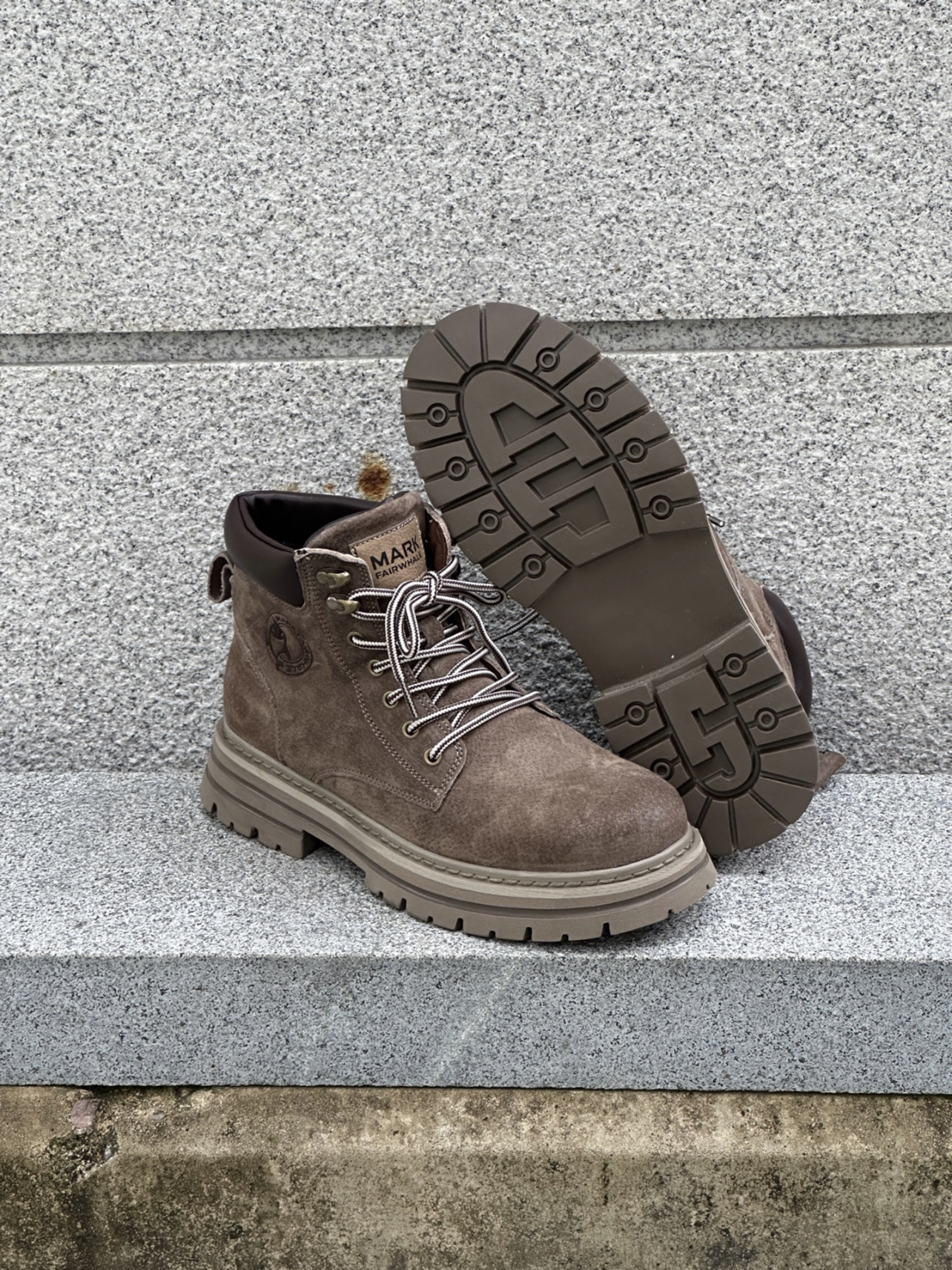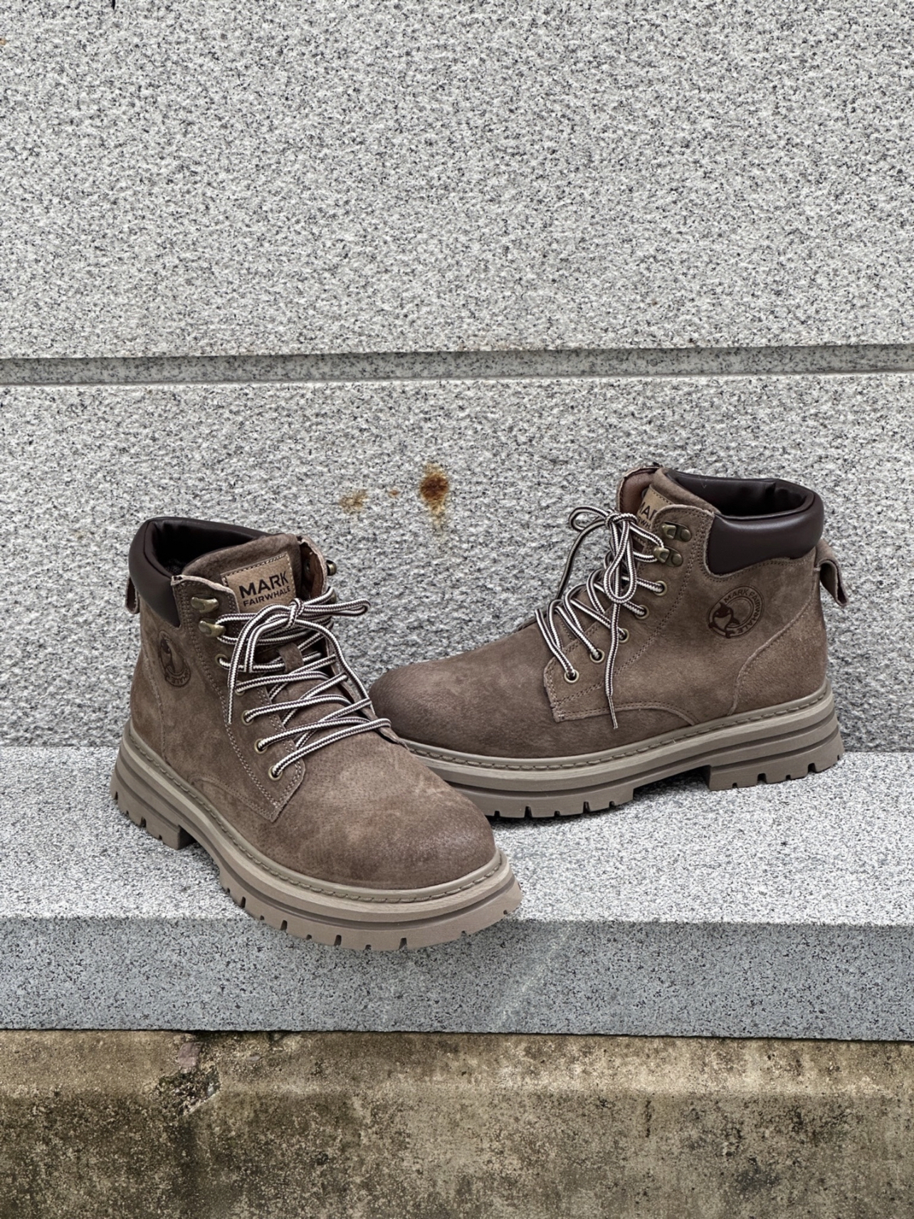 👟球鞋名称:马克华菲FAIRWHALE二层猪皮马丁靴 【升级款】卡其色 🔍分享理由:隐藏配色!补贴券后还是升级款,赚大! 🤔整体感受:鞋面整体由猪一剖层革材质打造,触感柔软顺滑,并且它还有着一定的防泼水的功效。加厚填充的鞋口搭配上光面皮革履面,以及后跟提拉环设计,旨在提升我们穿着的舒适度,关键一点也不会磨脚V要说最吸引我的地方,那莫过于极具辨识度的双色圆形鞋带和五金鞋带扣的点缀,丰富层次感的同...