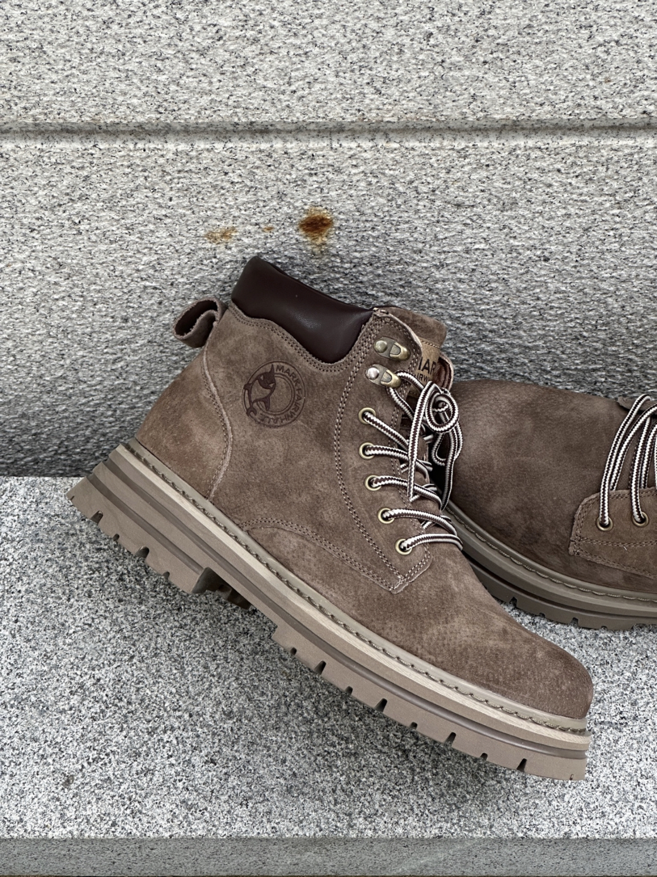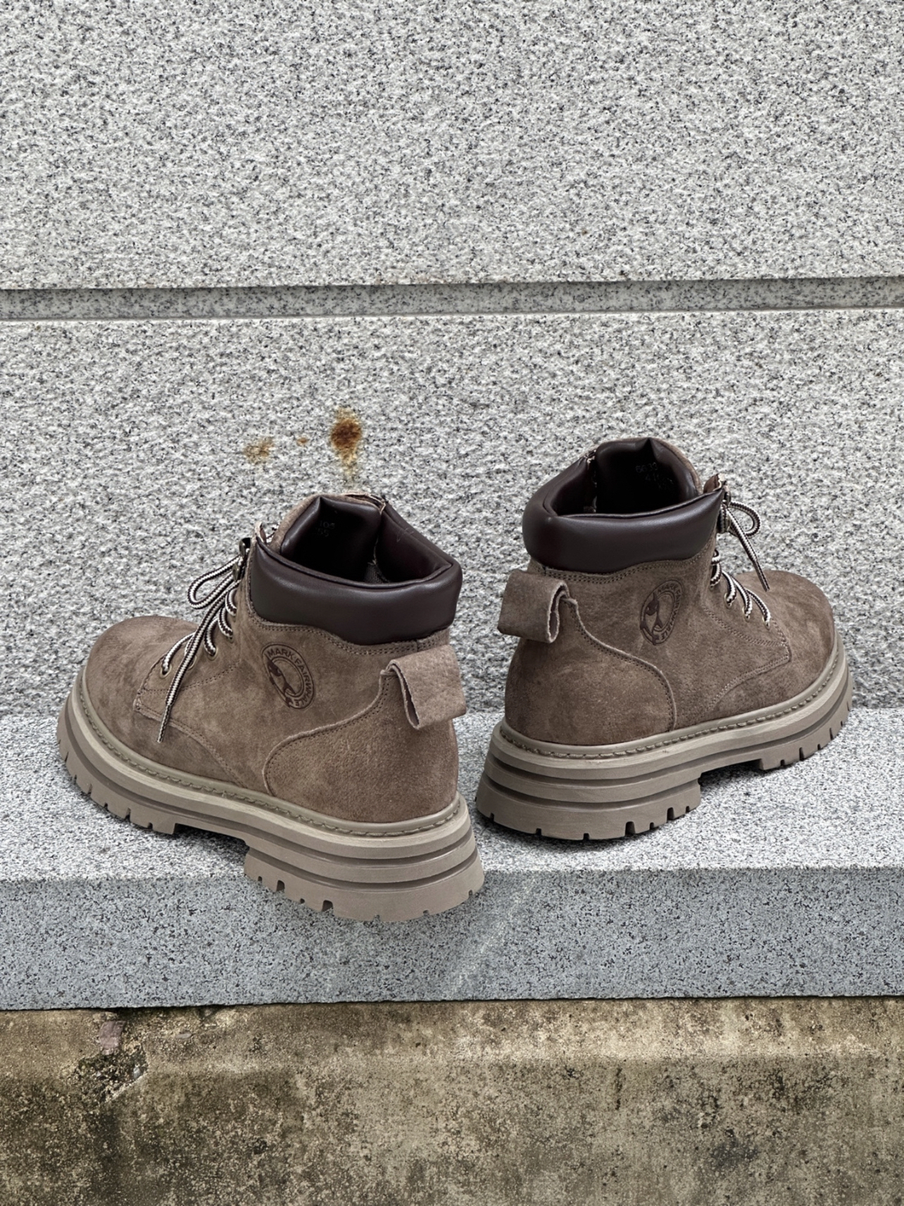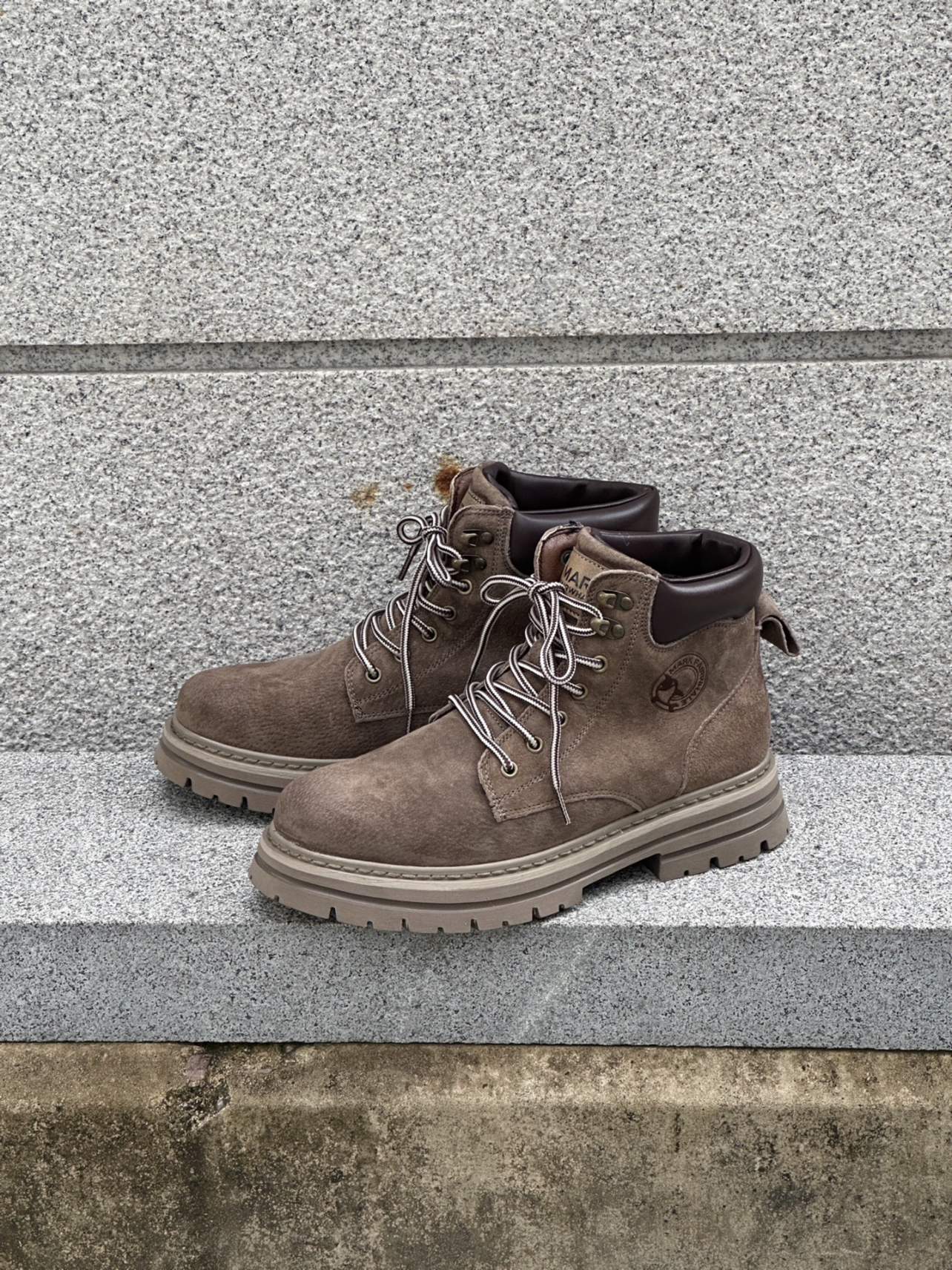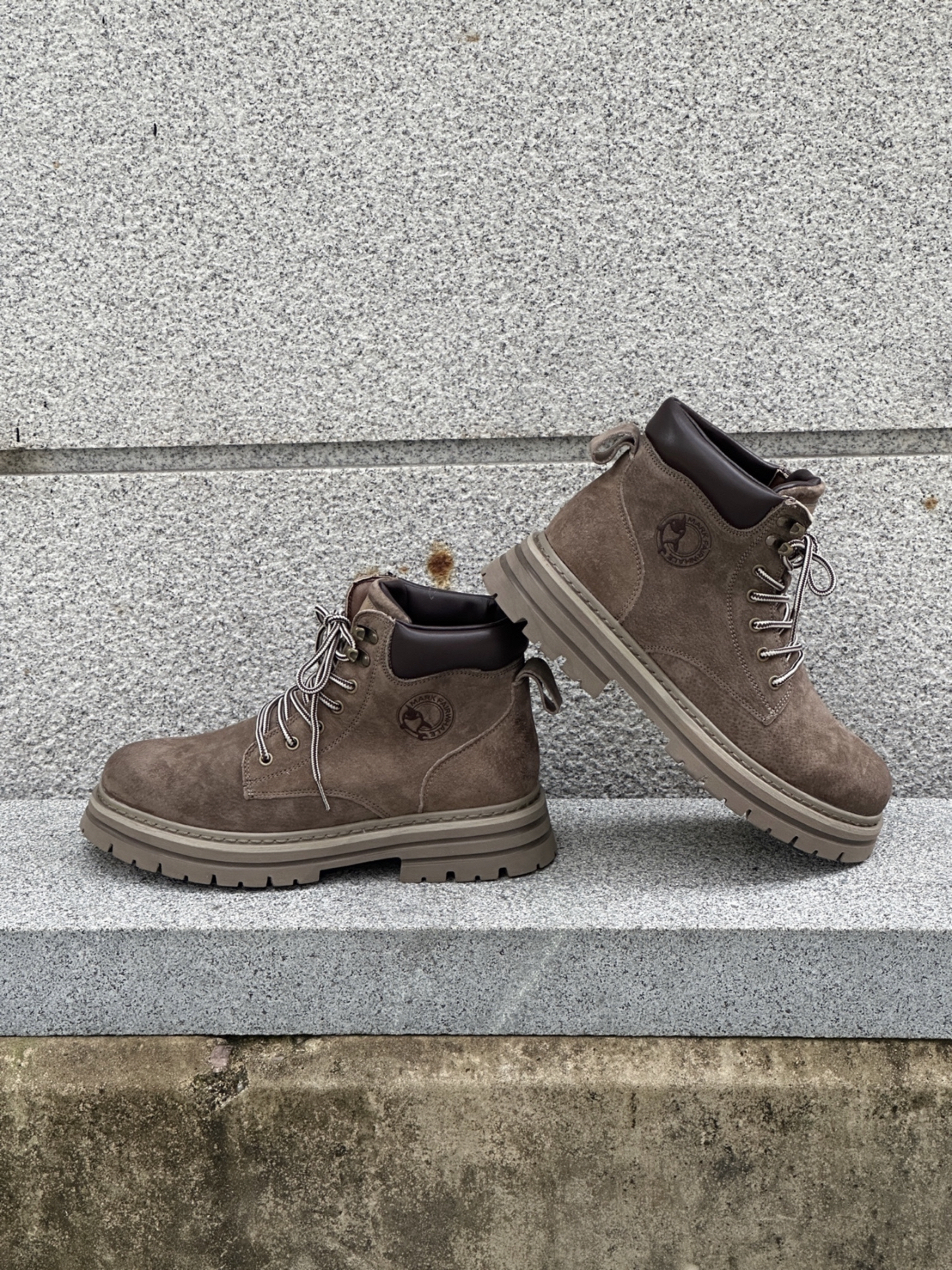 👟球鞋名称:马克华菲FAIRWHALE二层猪皮马丁靴 【升级款】卡其色 🔍分享理由:隐藏配色!补贴券后还是升级款,赚大! 🤔整体感受:鞋面整体由猪一剖层革材质打造,触感柔软顺滑,并且它还有着一定的防泼水的功效。加厚填充的鞋口搭配上光面皮革履面,以及后跟提拉环设计,旨在提升我们穿着的舒适度,关键一点也不会磨脚V要说最吸引我的地方,那莫过于极具辨识度的双色圆形鞋带和五金鞋带扣的点缀,丰富层次感的同...
