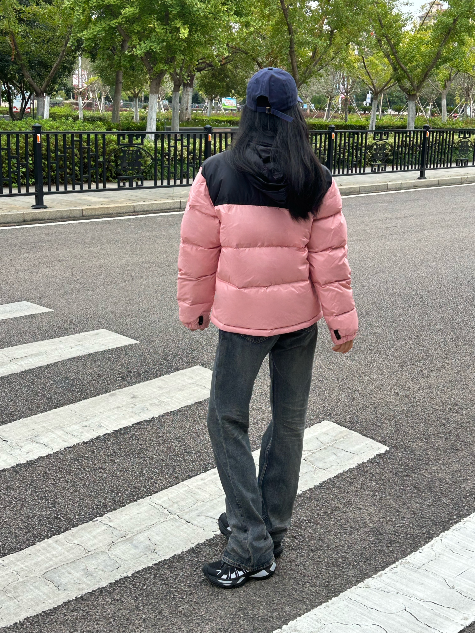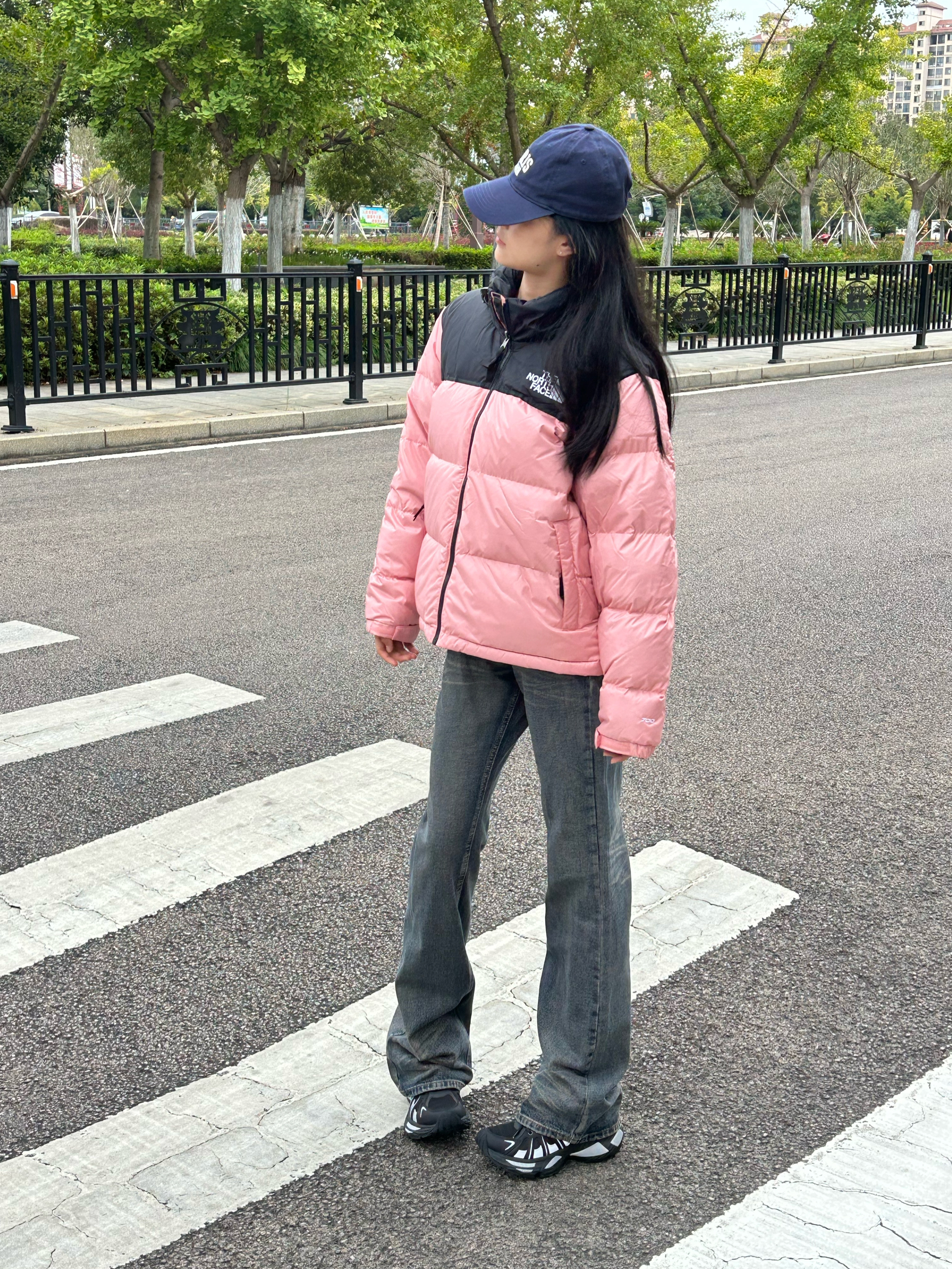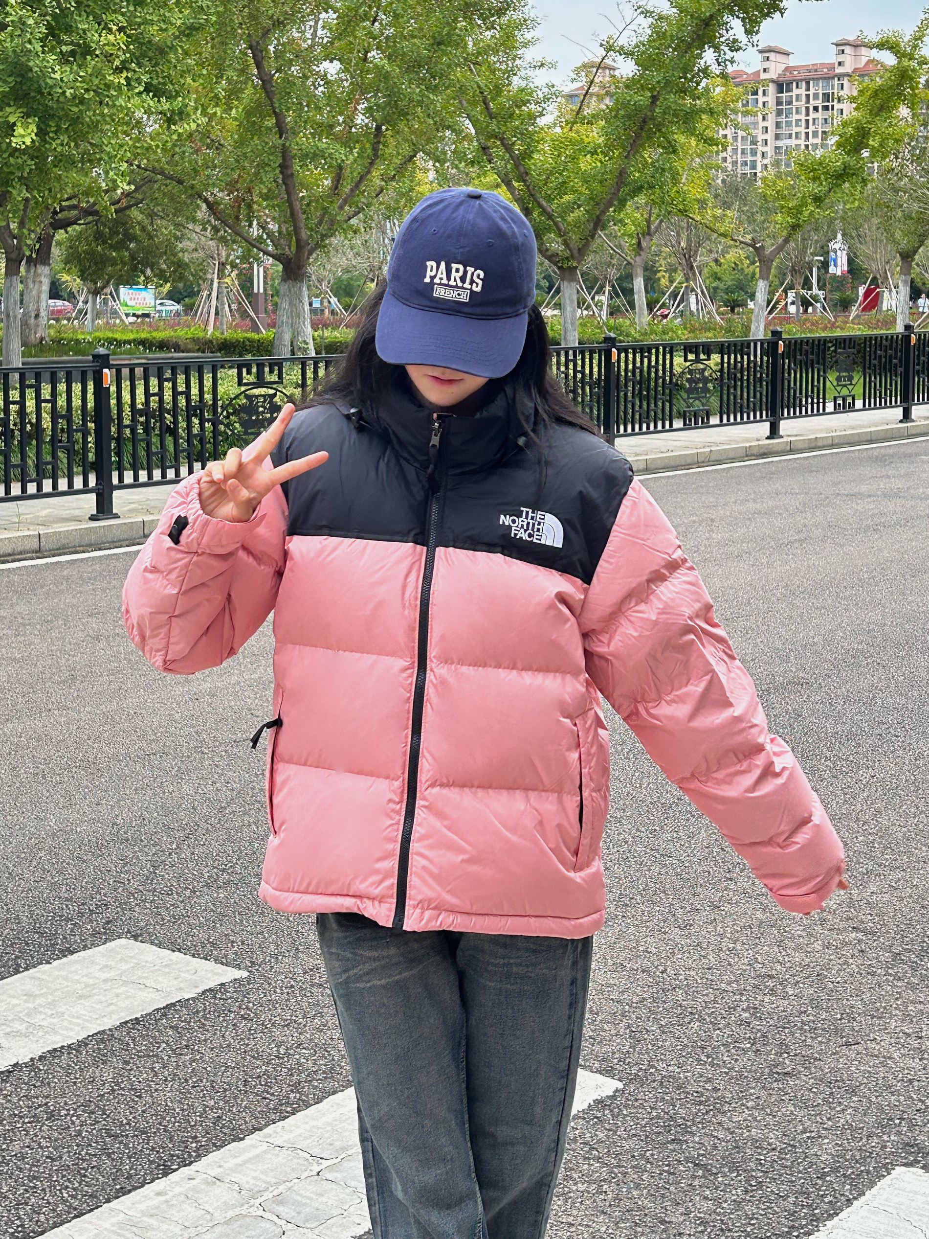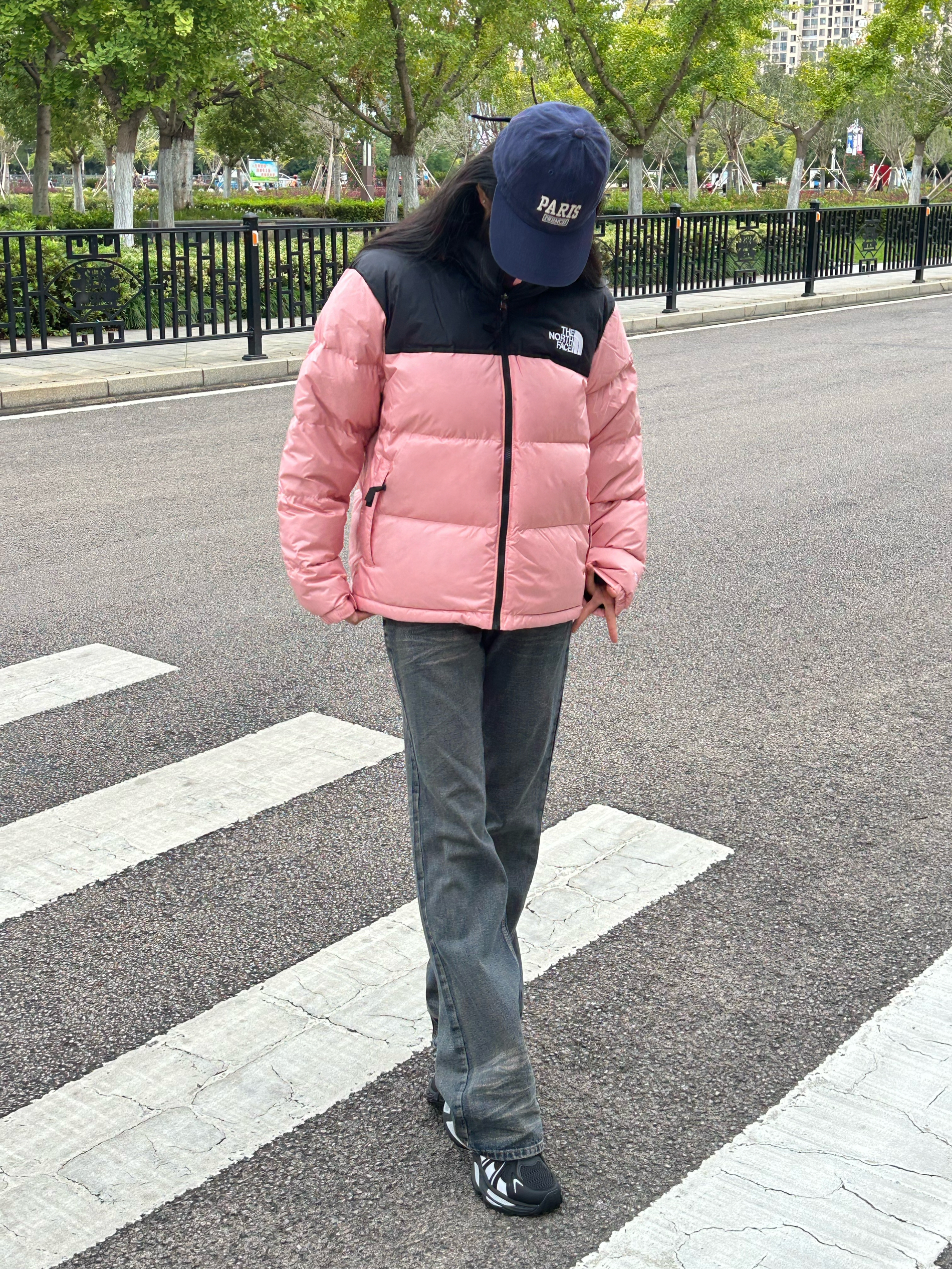 今天穿什么 今天穿 北面THE NORTH FACE 粉红色羽绒服外套 ➕ 深色牛仔裤 ➕ 藏蓝色棒球帽 今天是 休闲百搭风呀 这款外套属于是 立领拉链款式 粉红色➕黑色的配色 真的好看又百搭呀 粉色少女感满满