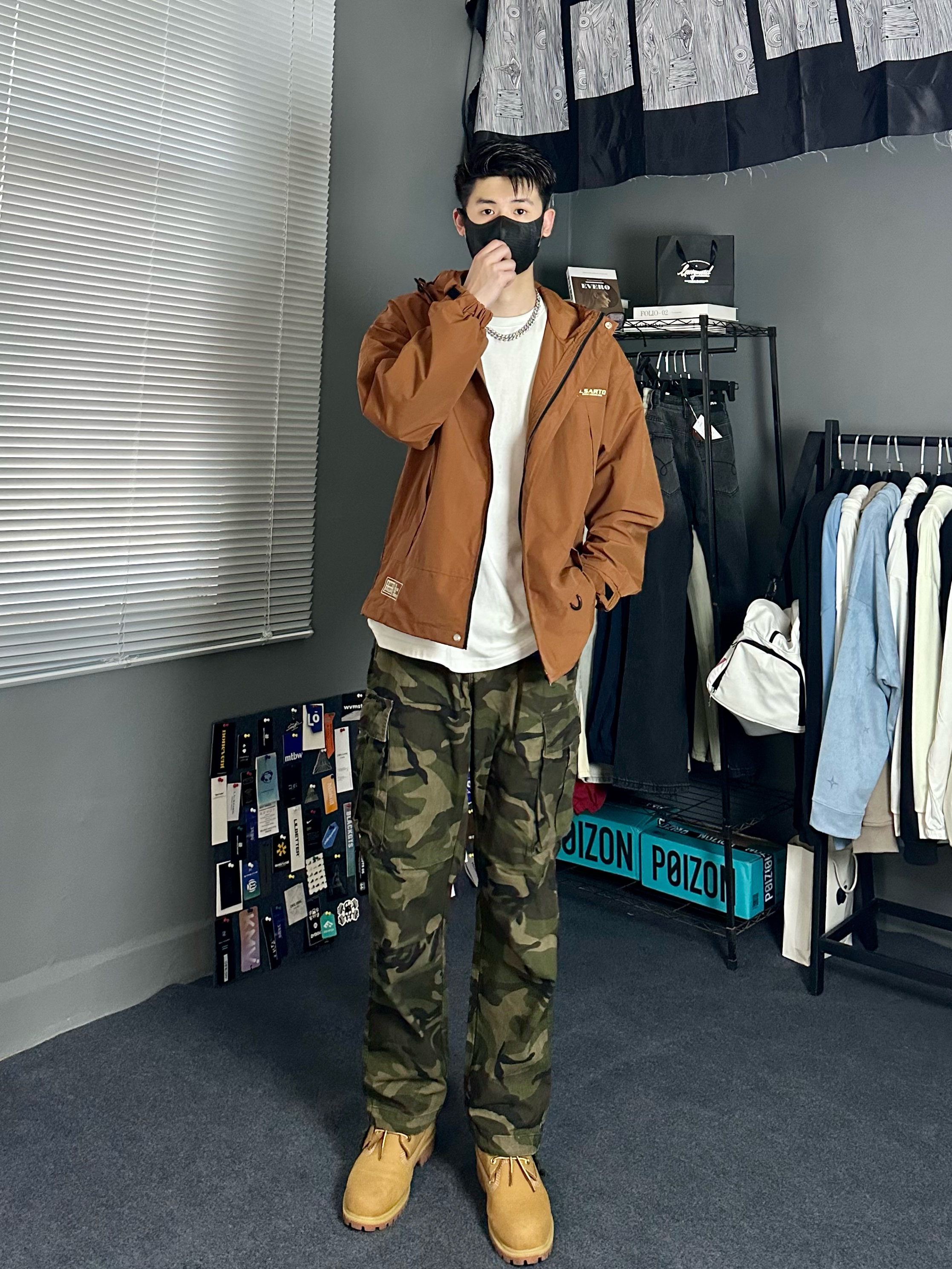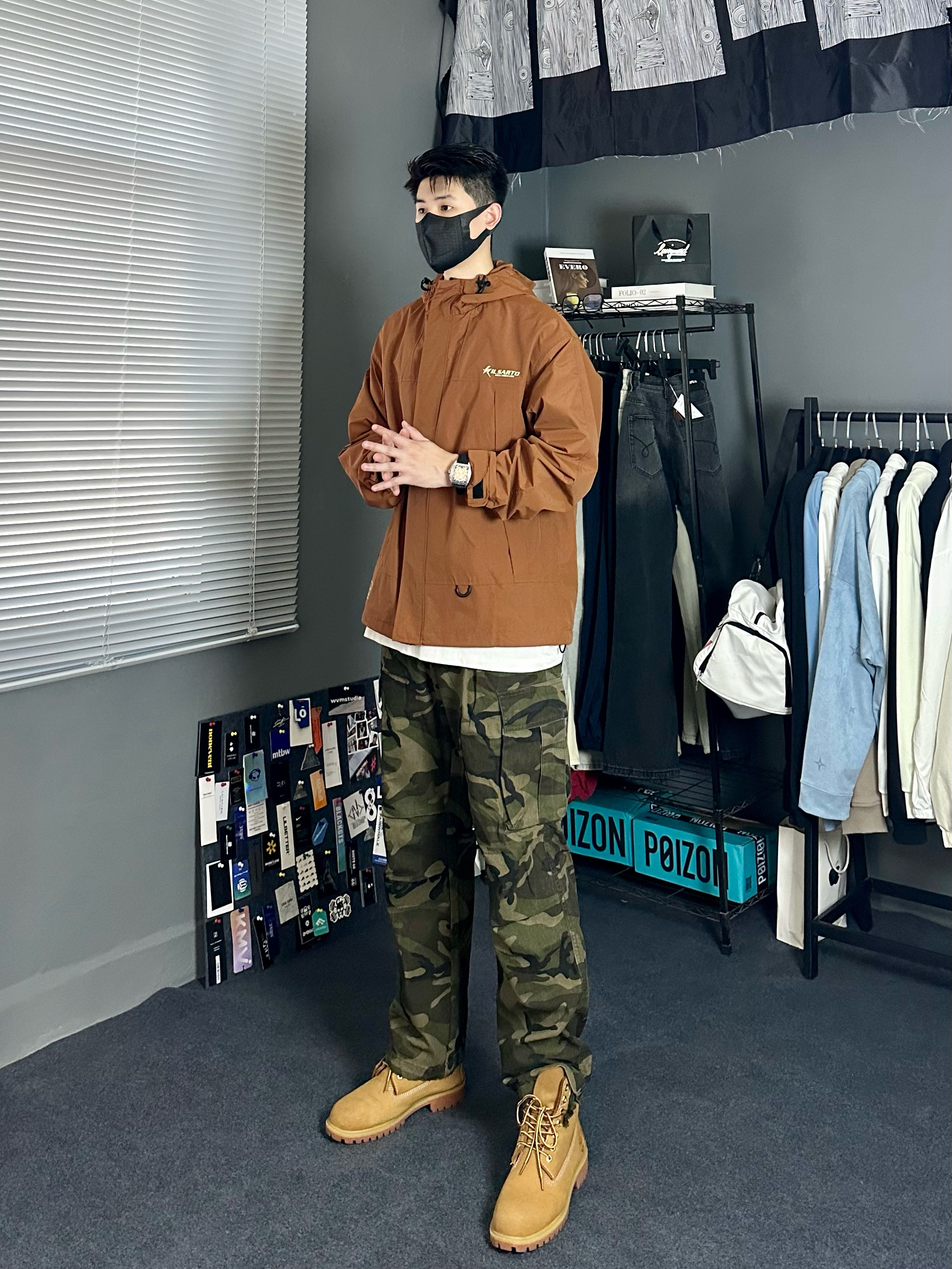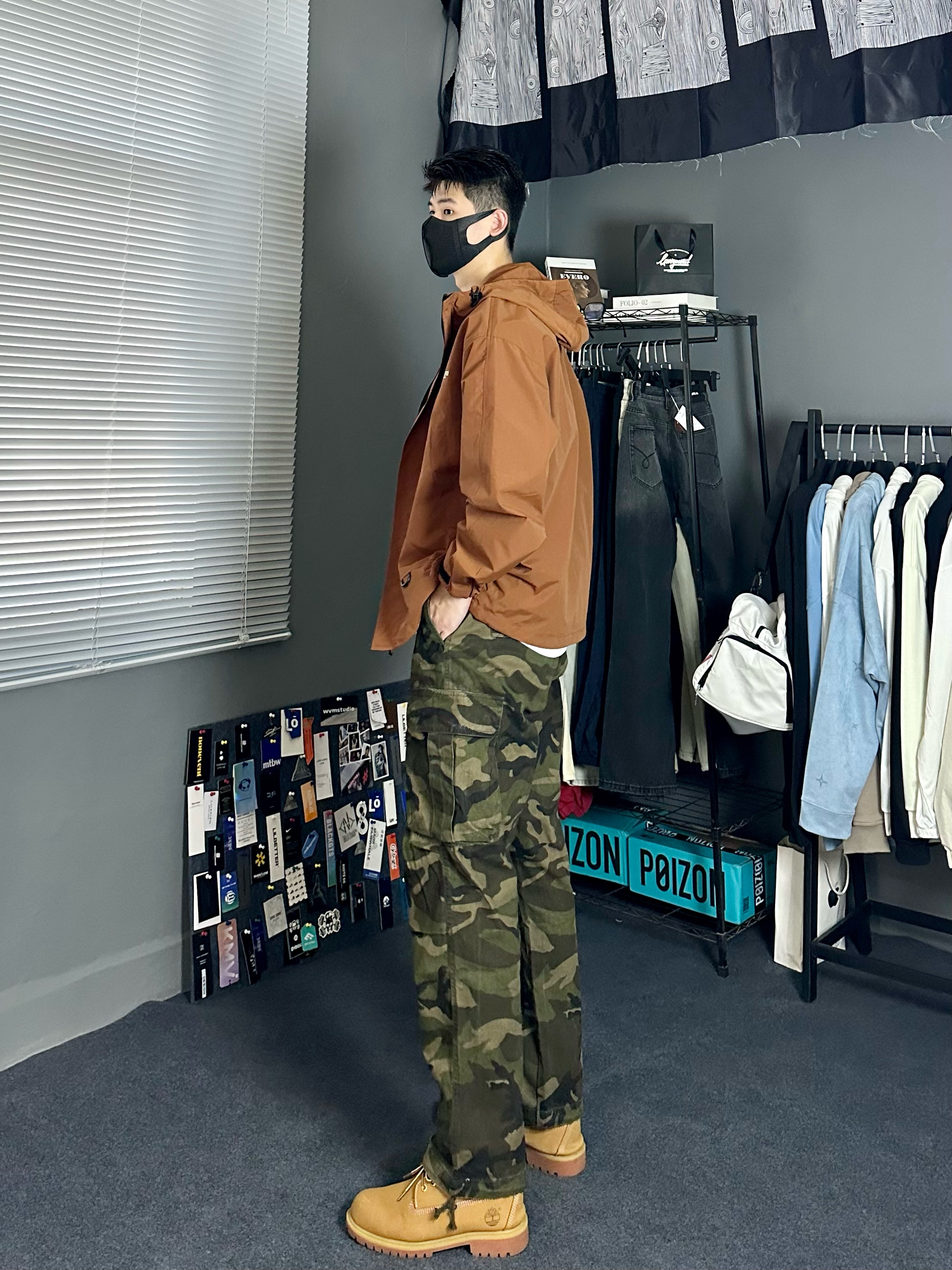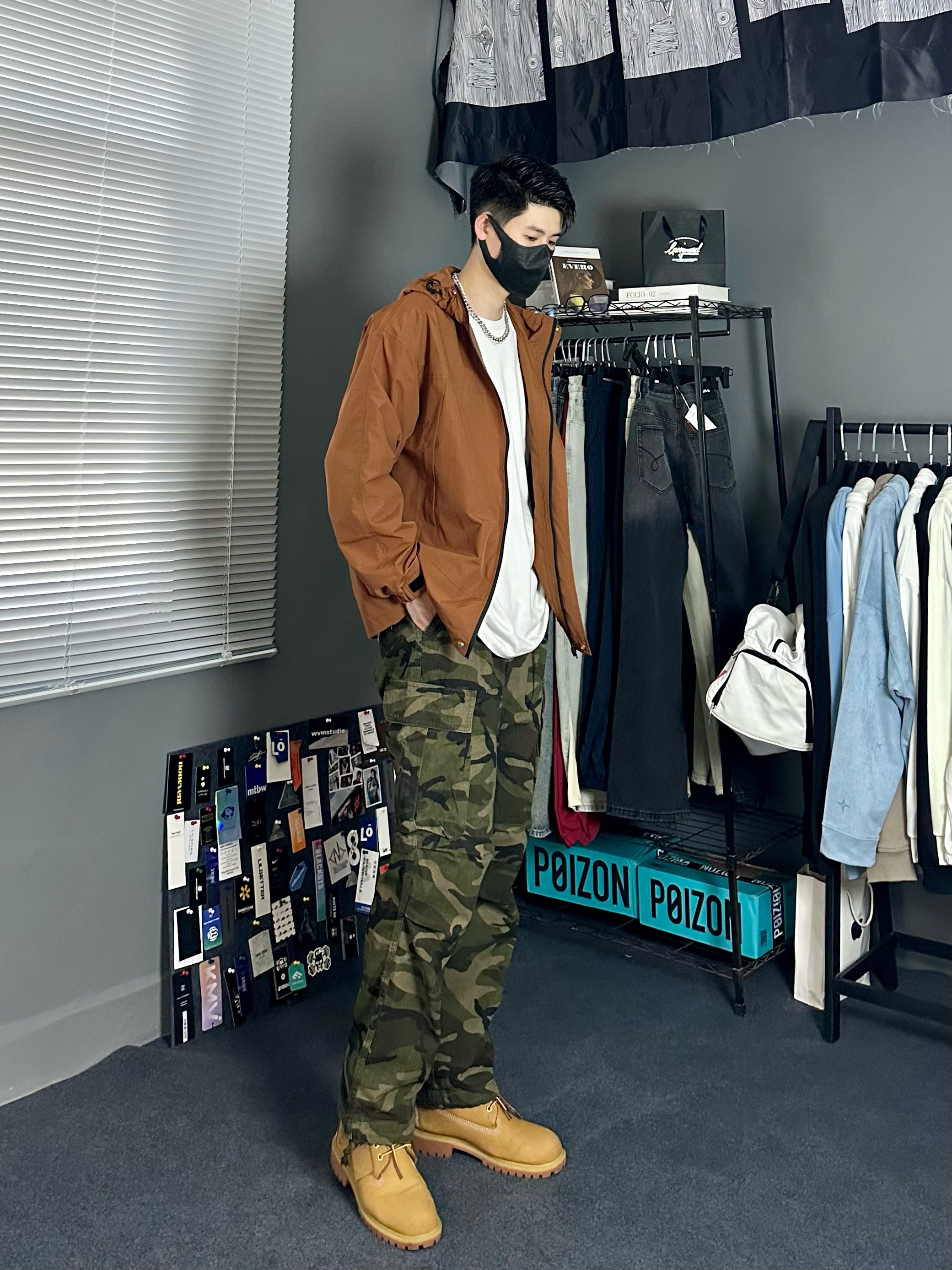 今日穿搭分享 👔 咖啡棕冲锋衣,面料轻薄有质感,舒适亲肤防风防水,做工细腻,版型宽松包容性强,不挑身材,适合大多数人,特别适合户外旅游。 👖 迷彩工装裤,经典复古潮流感十足,复古宽松大口袋设计运动又酷感,有一定的宽松度又不会太垮,下肢比例拉长,真的超cool 👟 大黄靴,百搭时尚,增加整套完整感