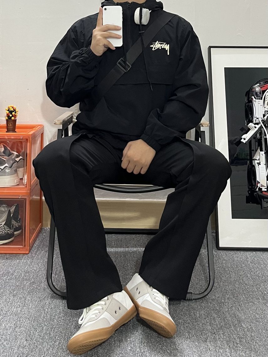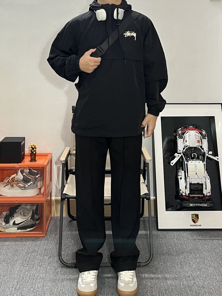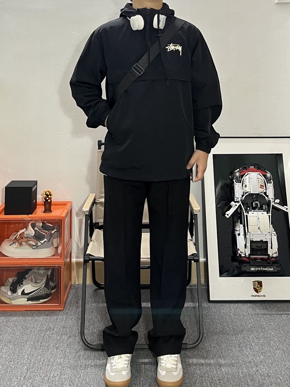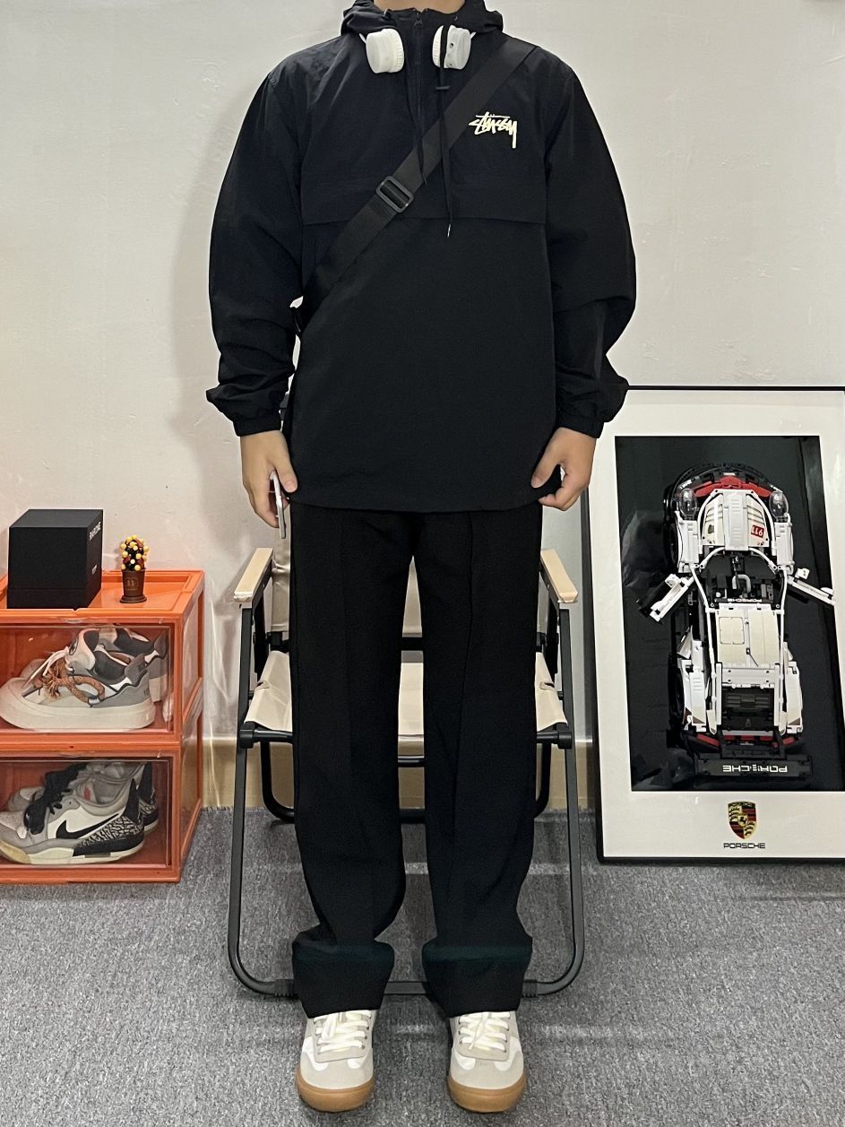 哈喽这里是pupu同鞋🏄🏻♂️ ——————————— · 👔:stussy夹克🍃 教练夹克的好处 轻薄又有型🙂 叠穿真的很有秋冬氛围感🎒 💐内搭白T恤简单干净还很酷 · 👖:休闲西裤 裤子依然是百搭的黑色休闲西裤搭配 · 👟:德训鞋⚫️⚪️ 秋冬就是衣服叠穿的季节啦 每一件单品可以尝试出不同风格! ———————————— 🙋🏻♂️:170/ 110