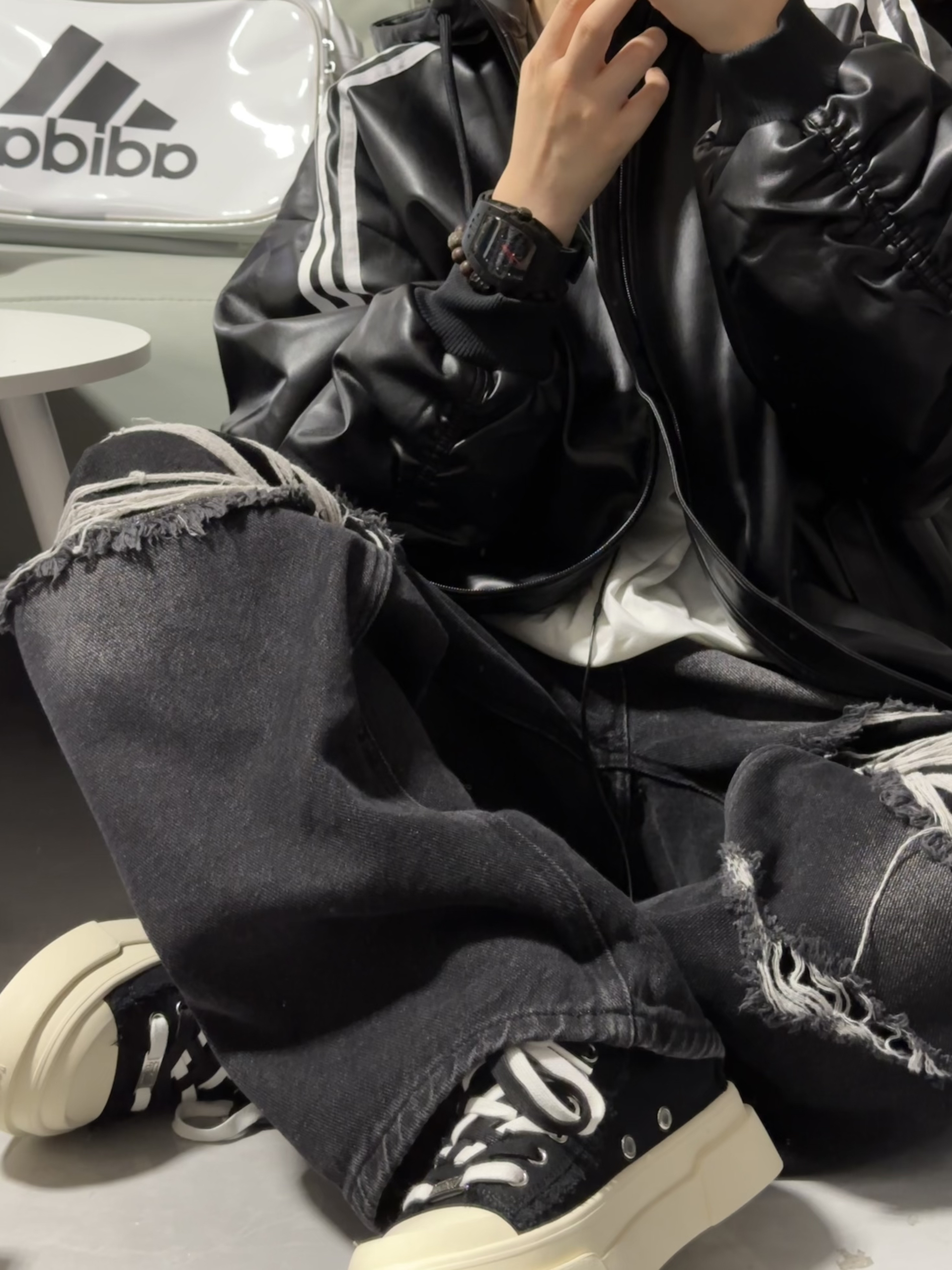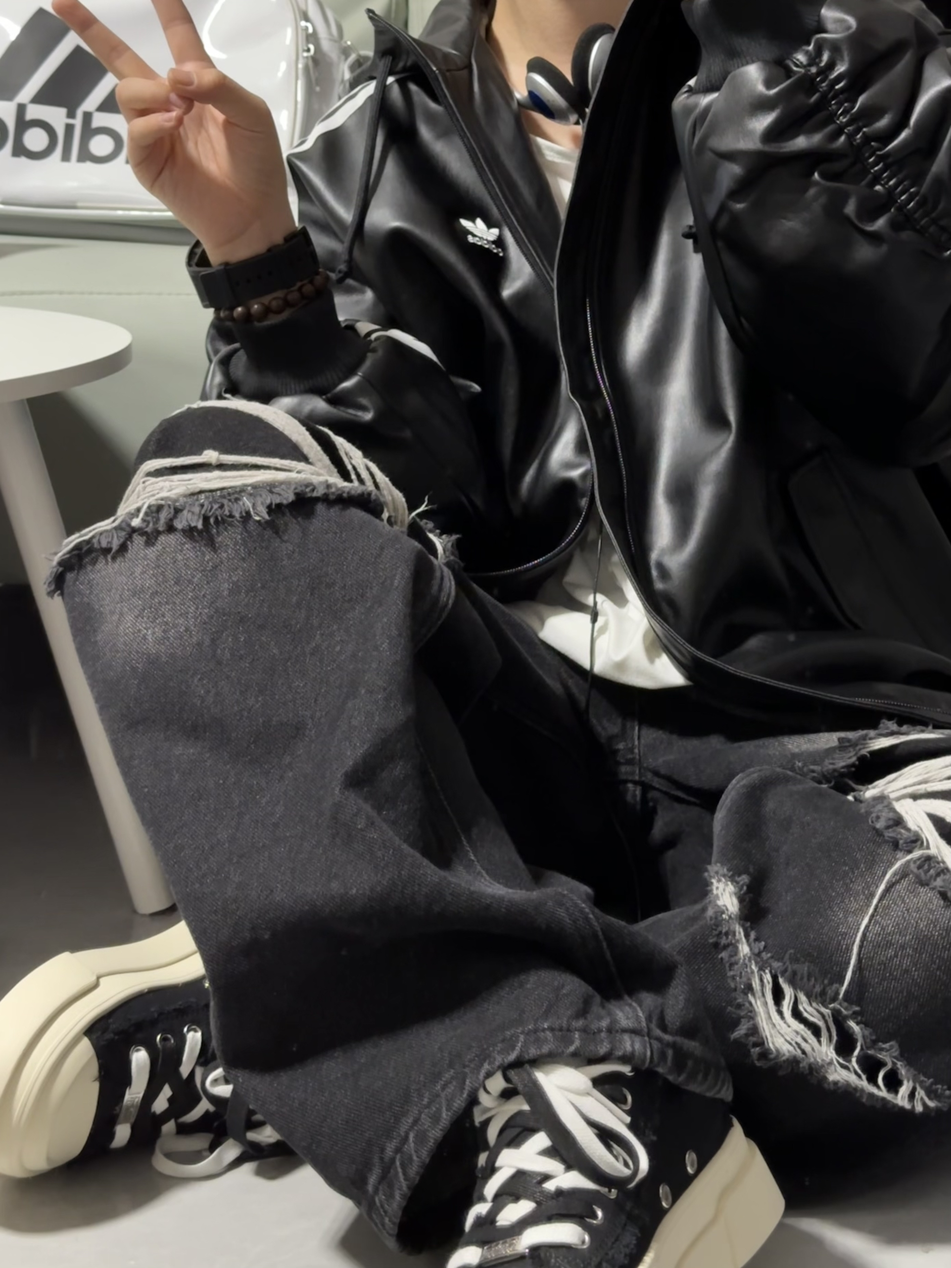 今天这件皮衣 我尊嘟好iiiiii 有点子泰苦辣~~ 嘿嘿!!秋冬就要这么穿咯