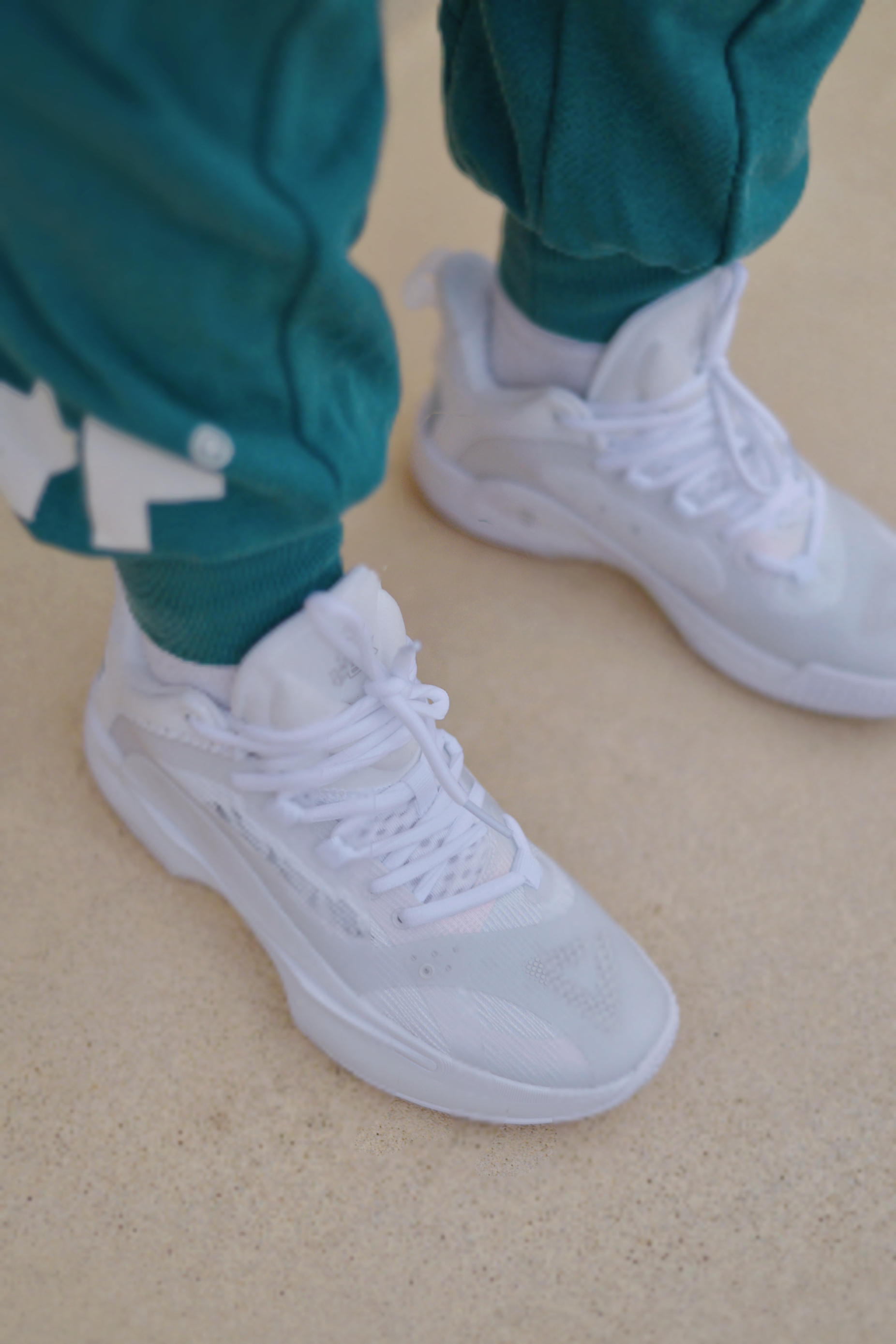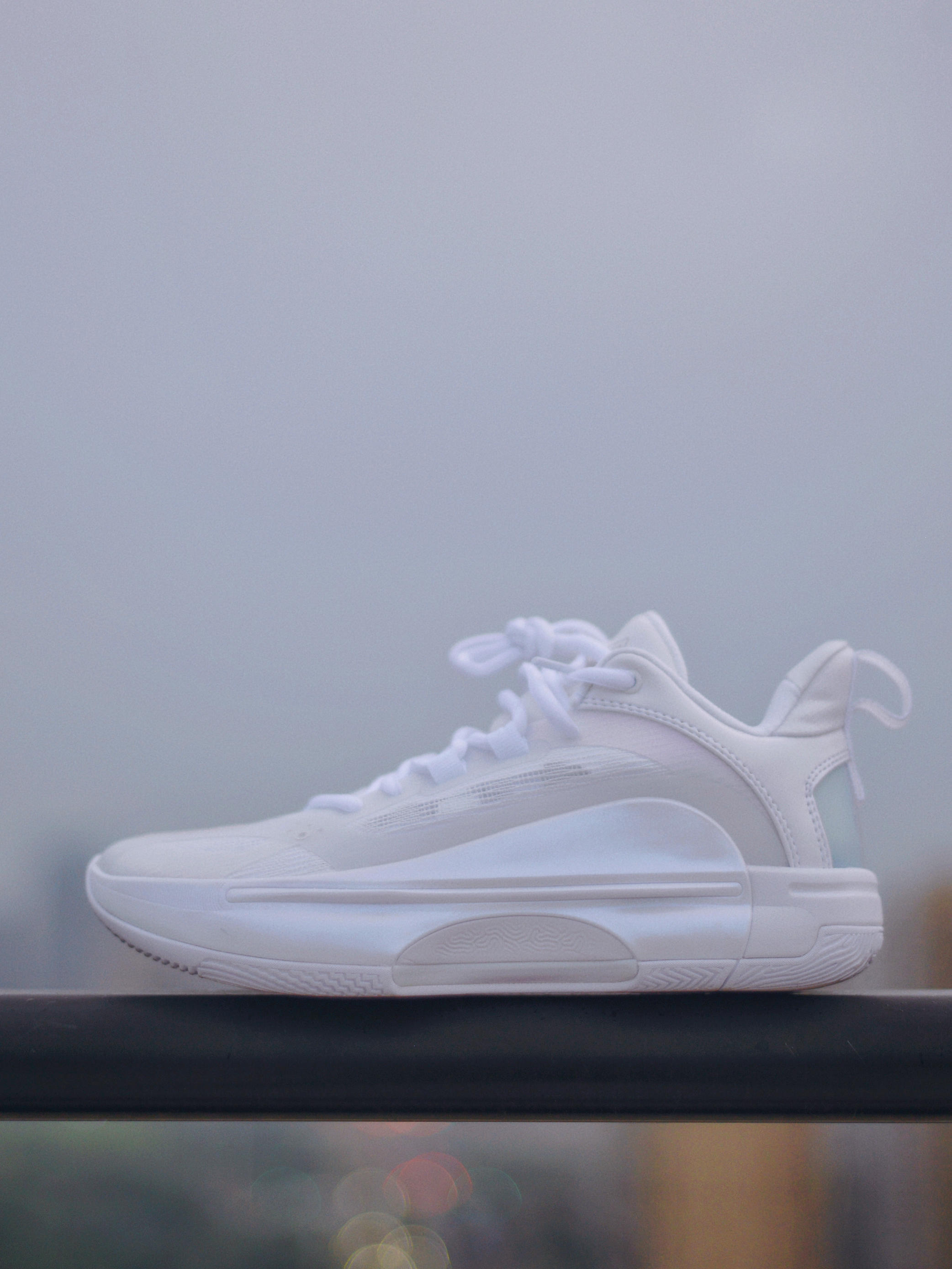拿起鞋子的第一感觉是比前几代轻了不少 鞋身更具速度感流线感更强了 鞋舌和鞋跟部位有填充 高强度编织鞋面➕大面积热熔补强 侧面的支撑感觉很强 适合轻量级后卫选手