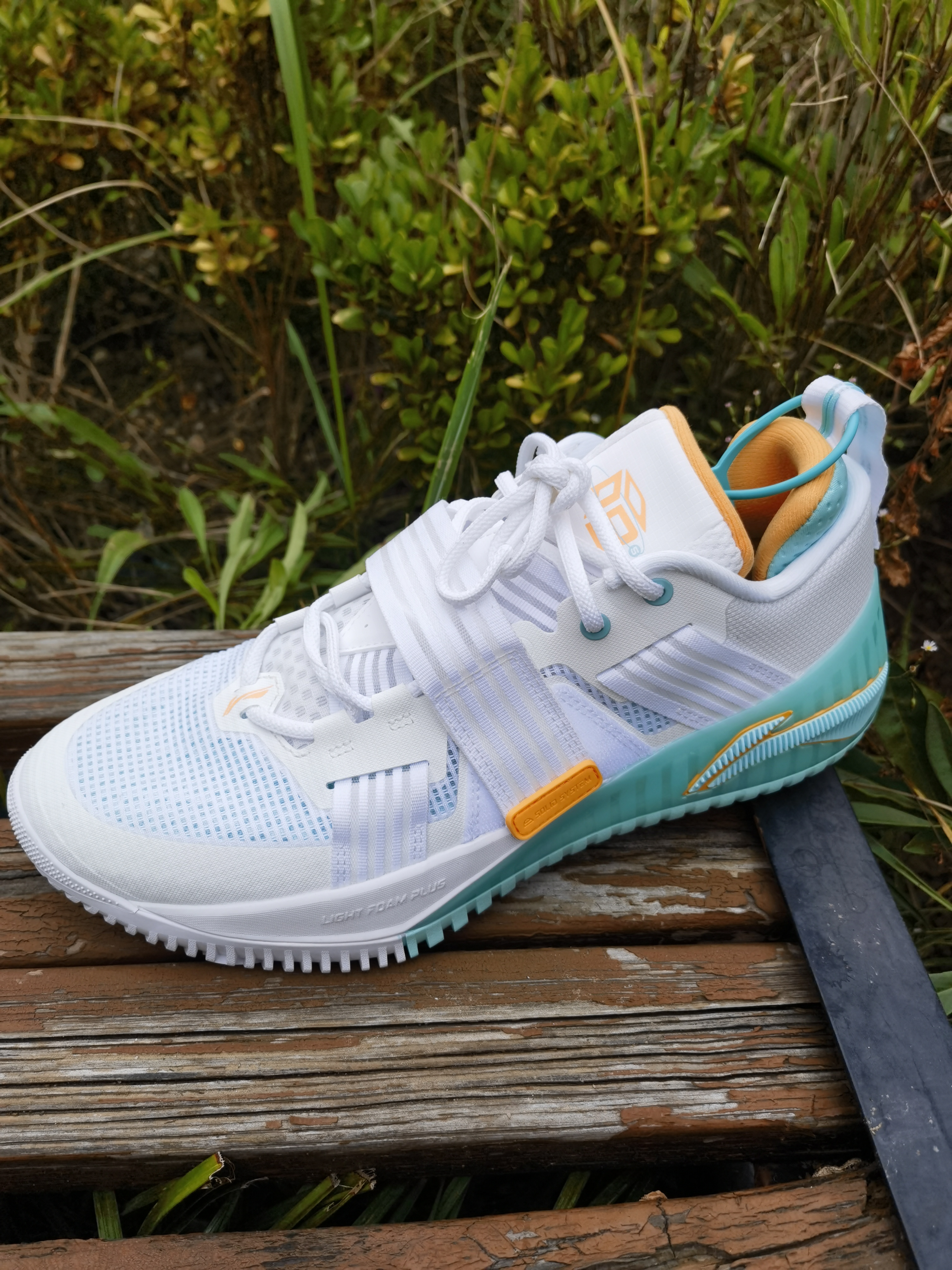 鞋面SOLID SYSTEM锁定设计+足弓部位PROBAR LOC稳定装置+后跟部位HEEL LOC稳定模块的三重稳定系统设计。 透气方面鞋面部分采用了大面积织面材质。在实战中,也能保持脚部的清爽舒适,避免因出汗而引起不适。但高脚背的人可能会觉得包裹感不够舒适。