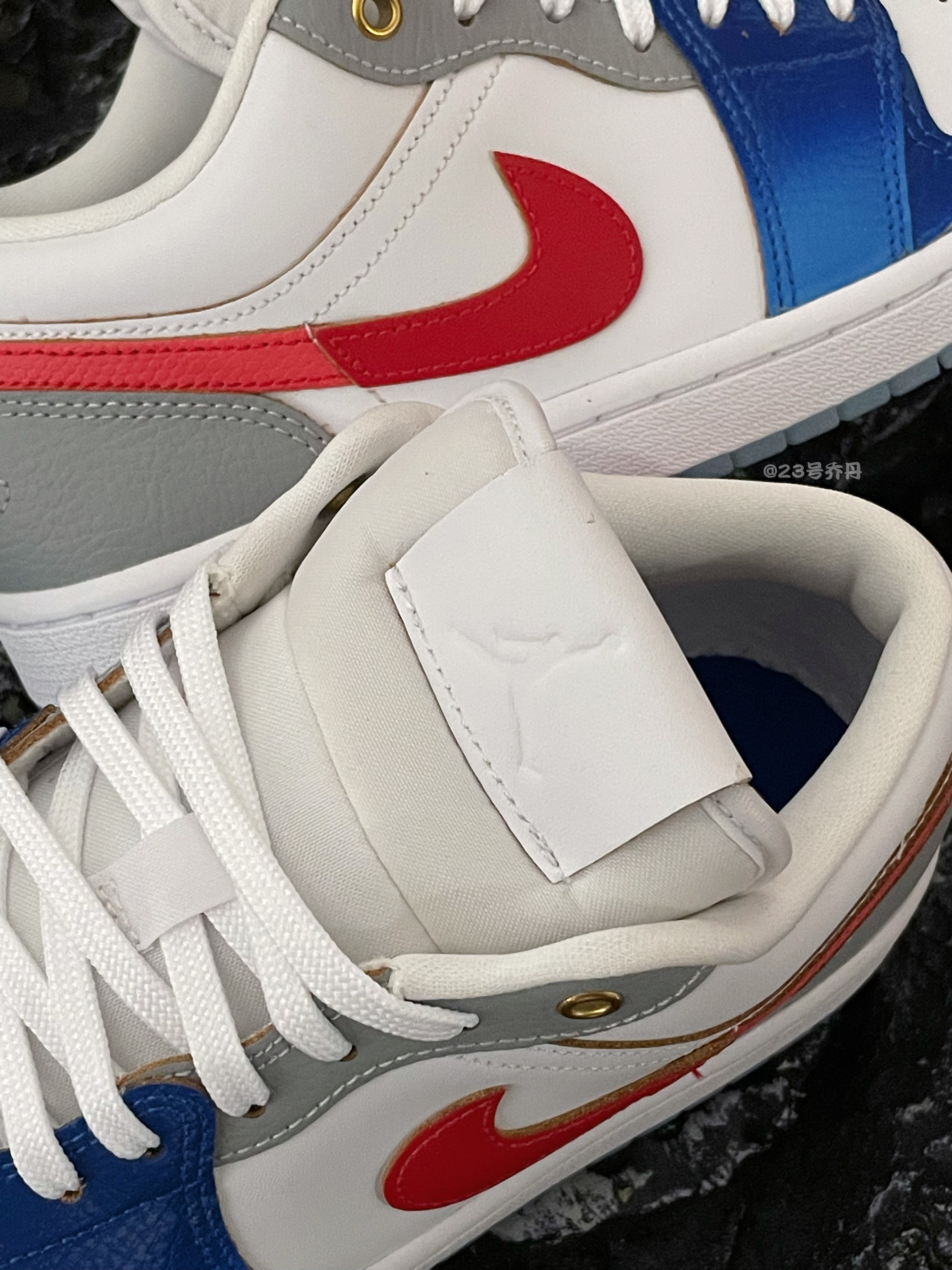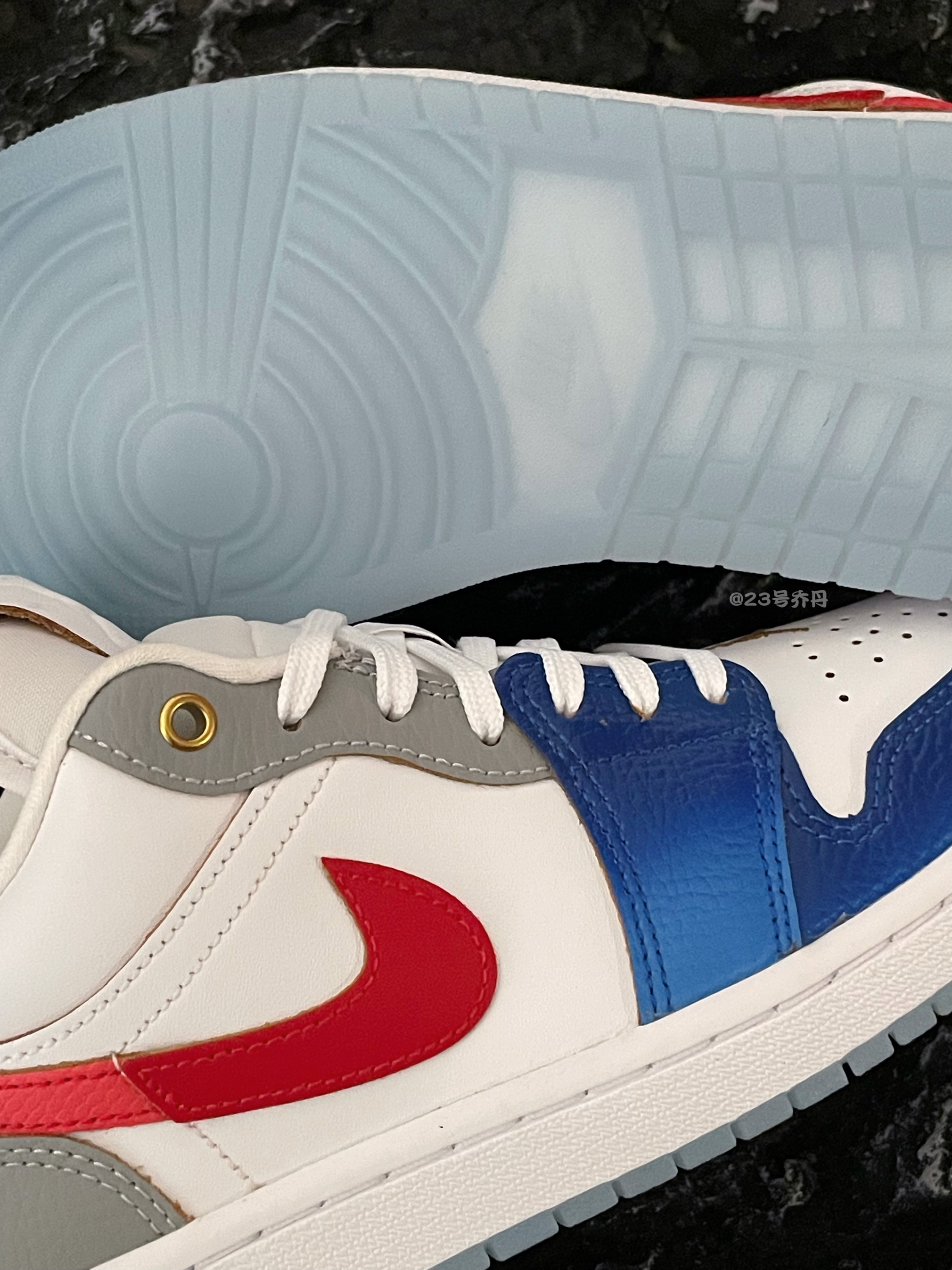 今天给大家分享这双近期热度和销量都不错的 Nike Air Jordan 1 Low『白蓝红』板鞋👟 鞋款由白色/蓝色渐变/灰色/红色等为主色调 鞋面选用了荔枝纹路皮革和光滑皮革的拼接 不仅质感十分到位 日常打理起来也比较方便 鞋身两侧设计有深红+浅红的拼接Swoosh 鞋尾金色的飞翼Logo图案极具辨识度 白色的中底和冰蓝色半透明水晶底收尾 整体来说这是一双兼具颜值质感和设计的板鞋👟 配色清爽又...