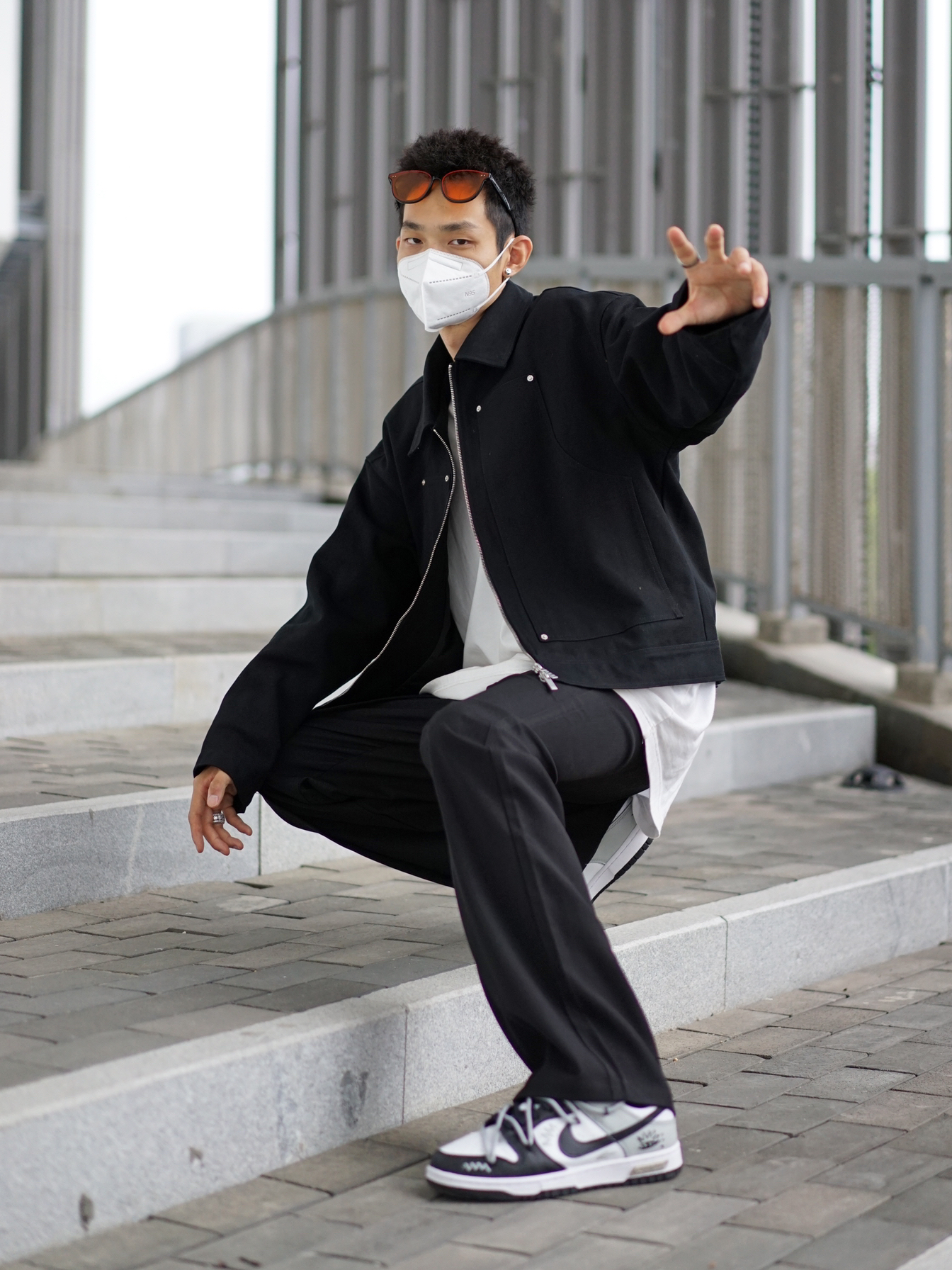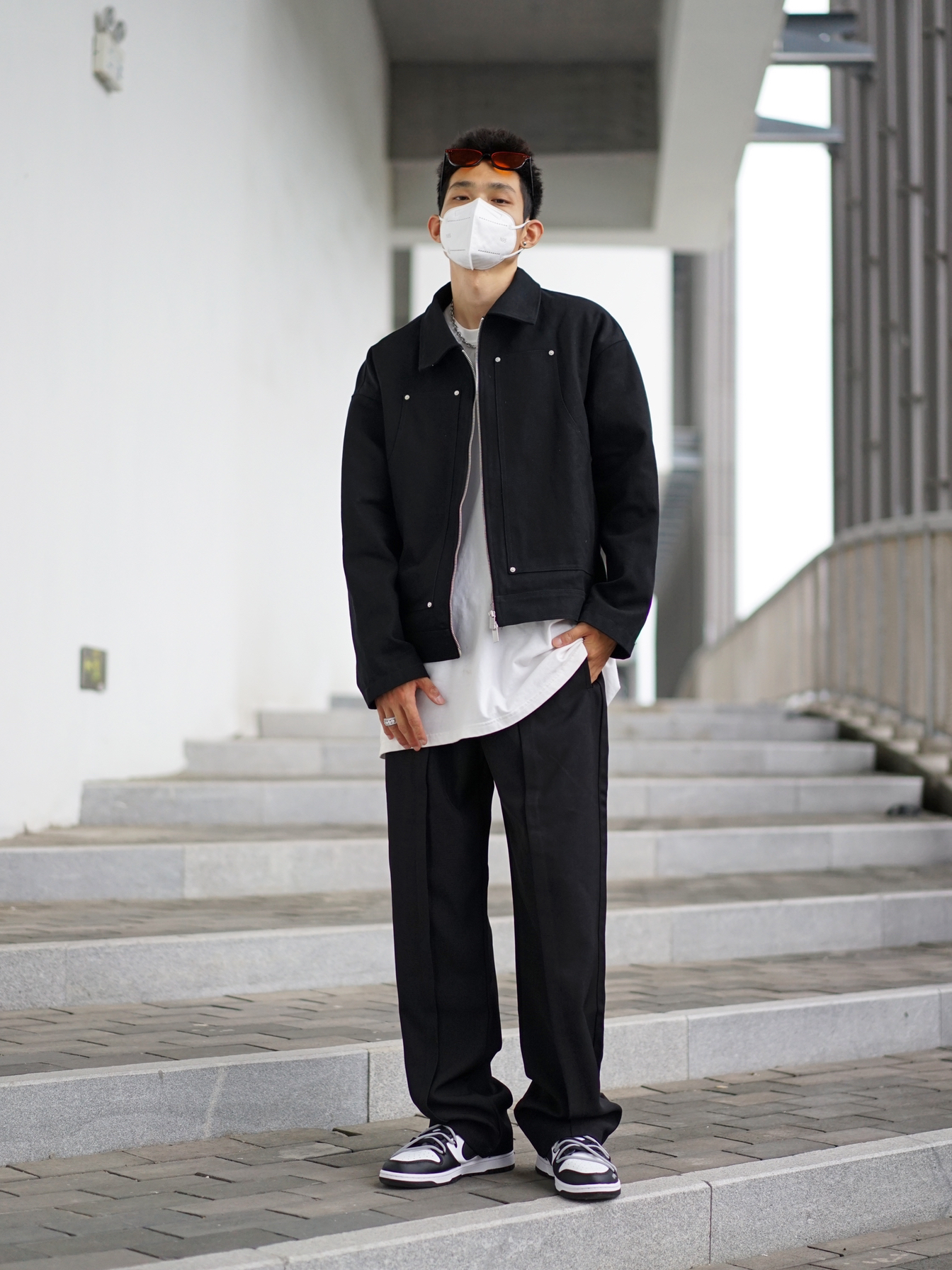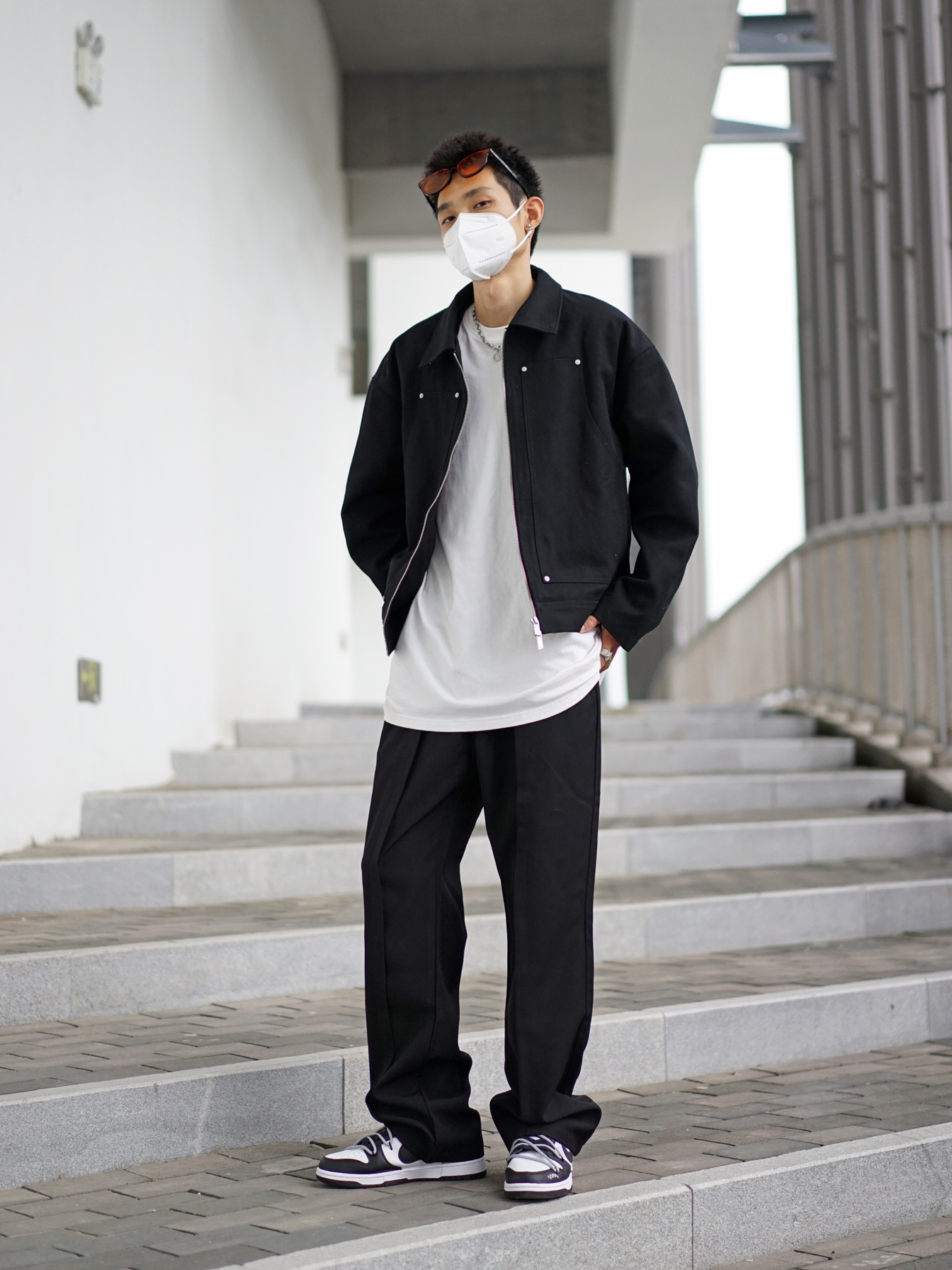 男生会穿搭是其次 重要的还是要有自信✨ 🍂秋天简简单单的穿搭就不错 一件简单的⚫️黑色伐木夹克 版型挺阔,上身还是挺有型的 下身搭配一条垂感直筒西裤 视觉上显瘦显腿长👀 鞋子选择一双🏁黑白配色的dunk就OK 💯不费力的耍酷穿搭你get了吗
