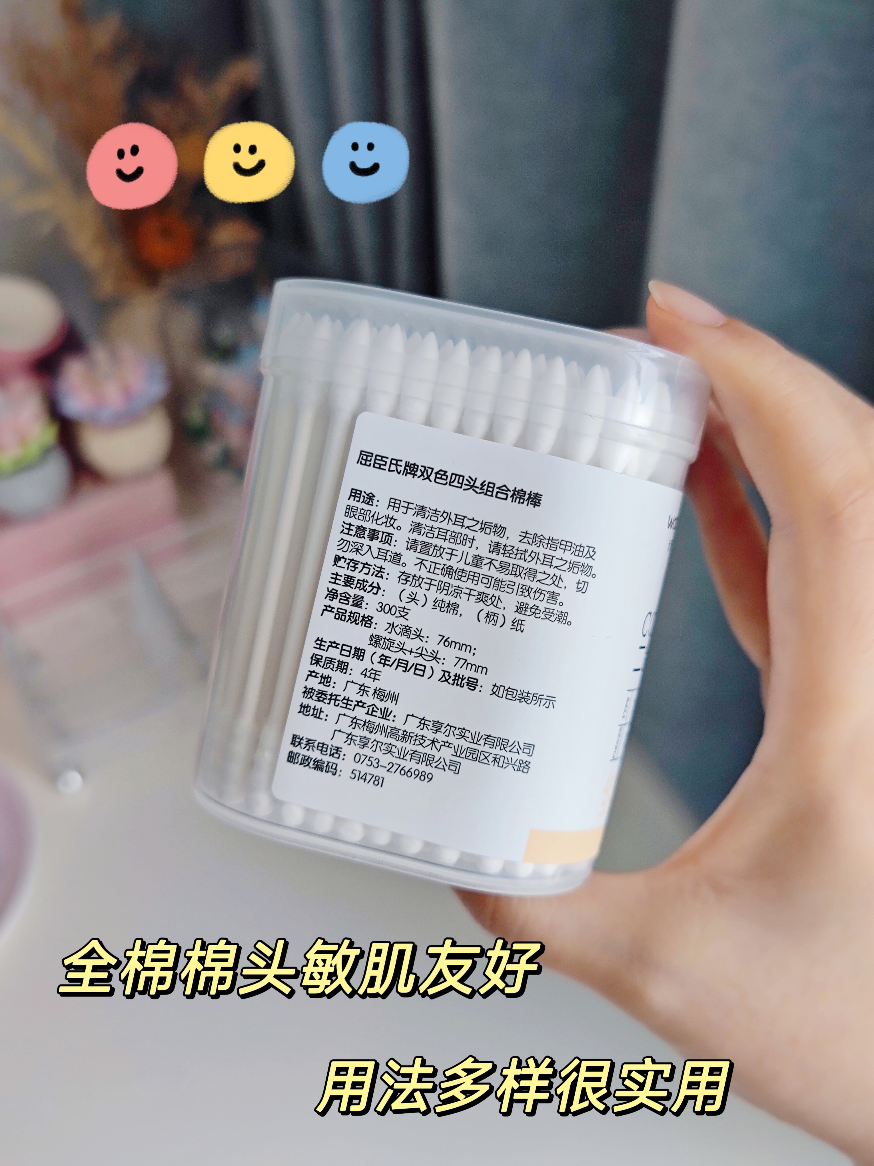 🌸哈喽宝子们,这里是小5的好物分享,今天share一款比较实用的化妆小工具——屈臣氏双色四头组合棉棒,它可以用来调整眼唇妆容,精致卸妆,一大盒有300支,十几块钱性价比也很不错~ 🌸这个一盒里面有两种棉棒,一种是白色双头设计,白色尖头可以用来修饰眼角、唇角小细节,精致妆容,白色螺旋头适用于睫毛膏卸妆,另一种是黑色圆头棉棒,用于上眼影、口红、遮瑕等细节,用法多样实用~ 🌸它是次抛型的,比较干净卫...