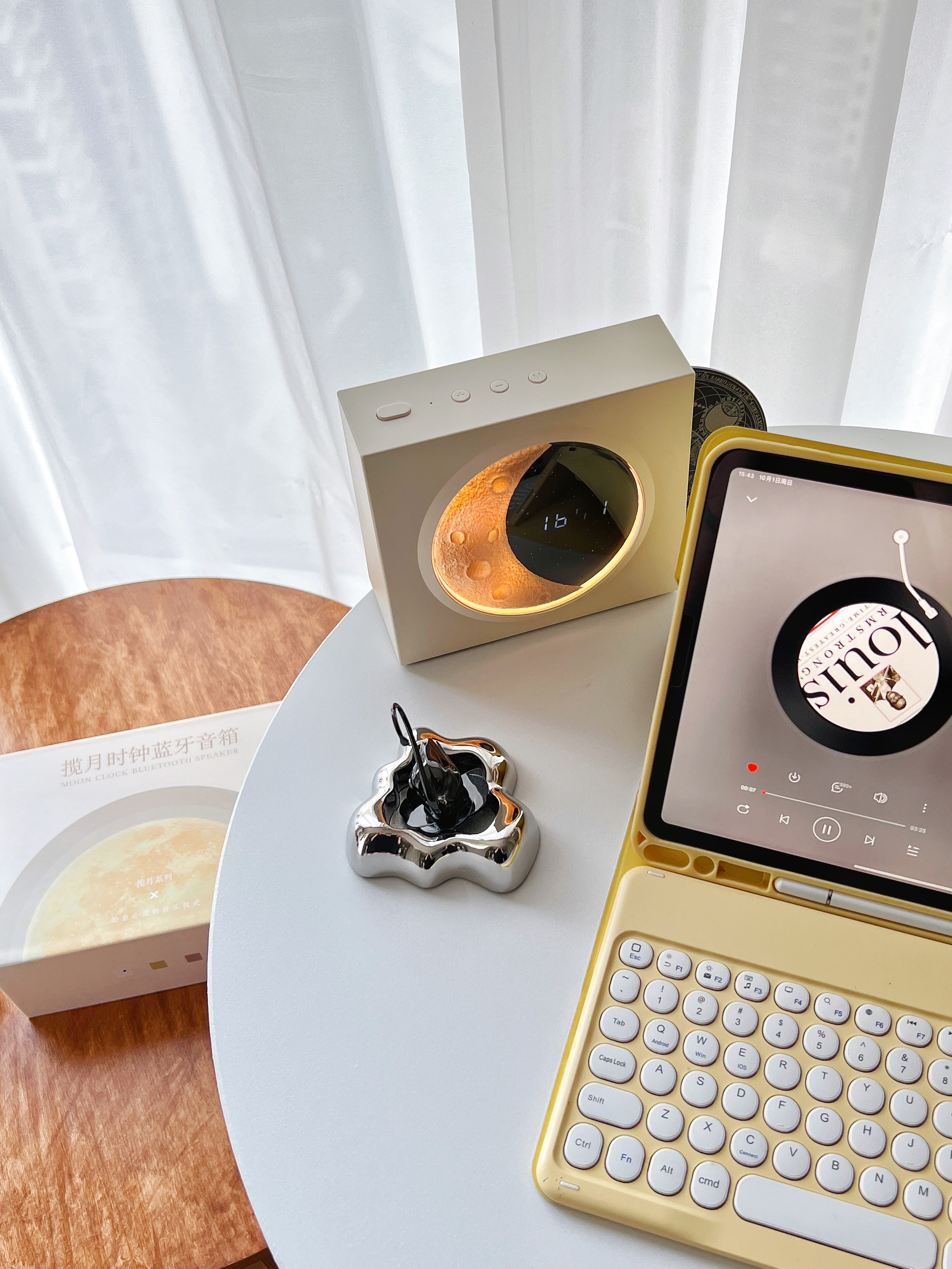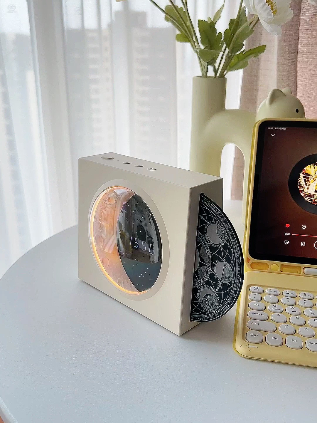 是限定星相版的蓝牙音箱呀🌕月亮主题好适合中秋气氛!! 没想到百元价位的音箱音质还很不戳~ 打开音乐🎵星相转盘随着音乐转动,再开启🌕月球氛围灯 尊嘟好浪漫🌹