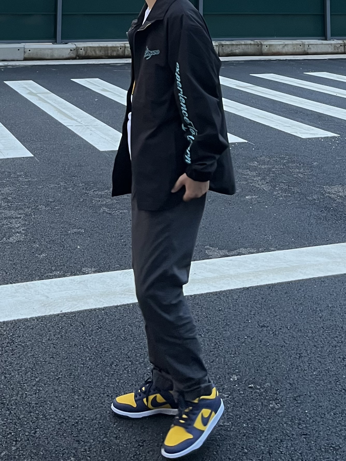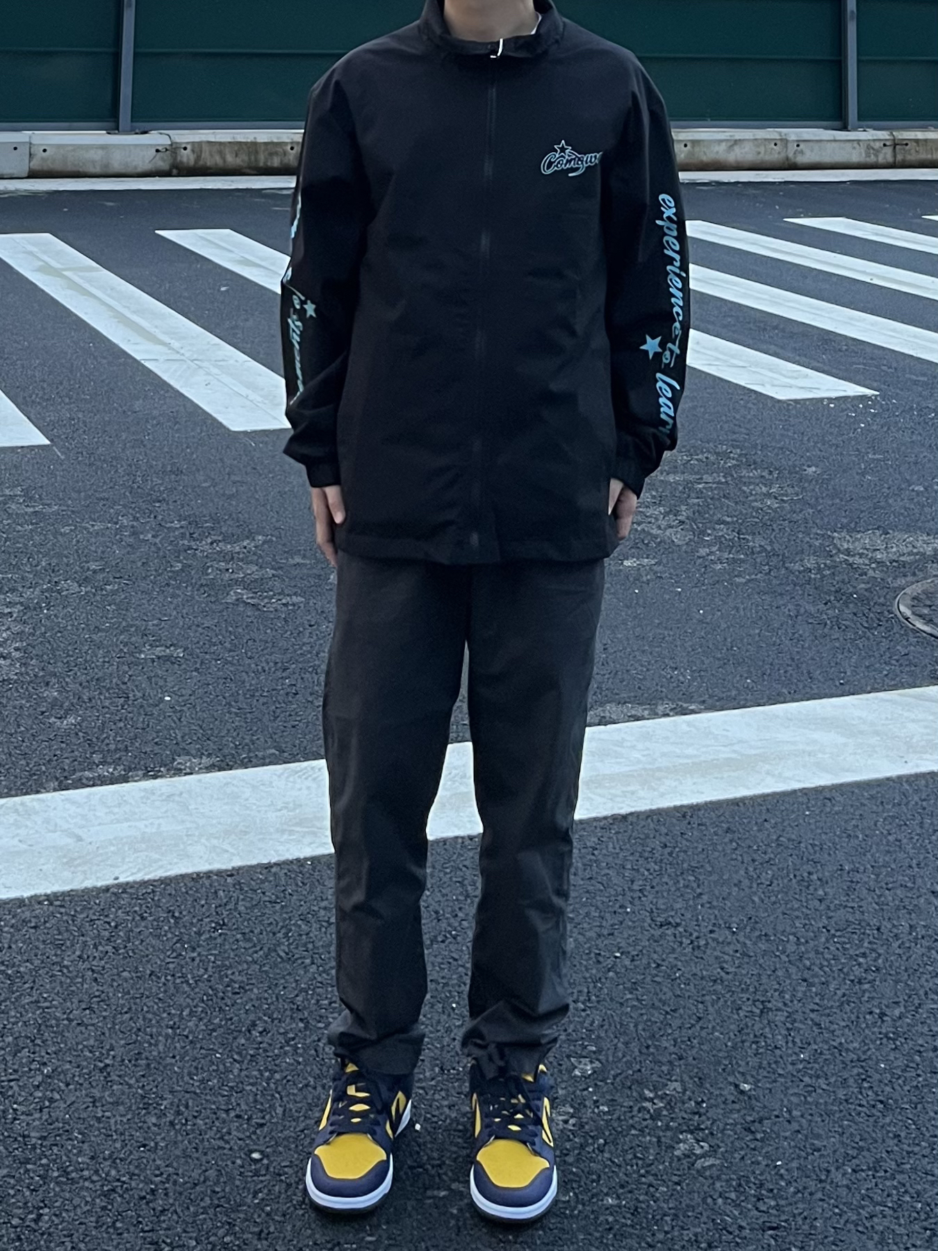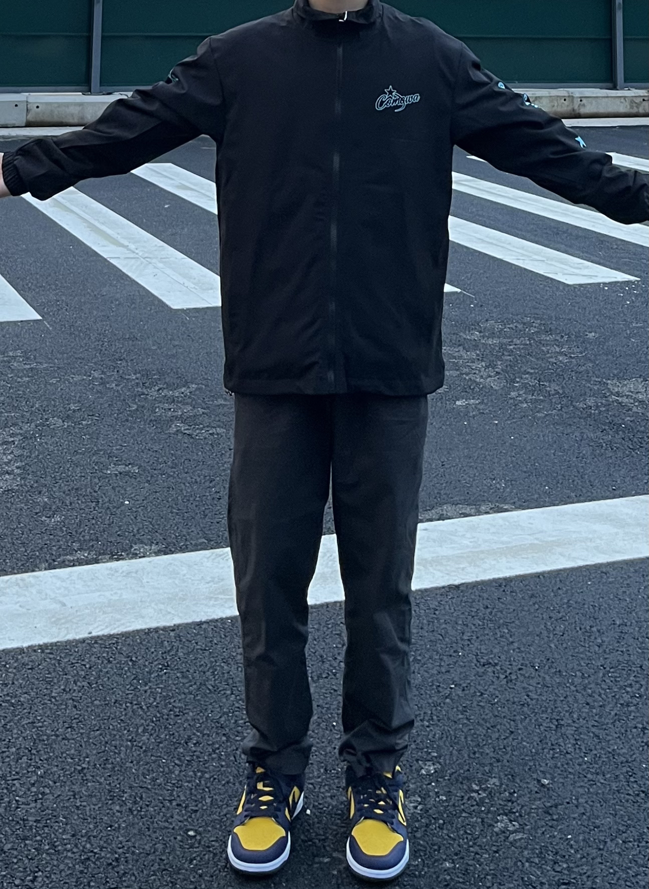 -今日穿搭分享🤓 ——————————— 🙋🏻♂️:170 / 110 · 👔:COMOWA💫教练夹克。版型真的很正,稍宽松超级显瘦,搭配U家裤子真的很old school的感觉。⚾️而且胸口还有袖子的印花特别帅,学生党校园必备! · 👖:优衣库🪨 · 👟:DUNK密歇根⚫️🟡 ———————————— -以上都是个人观点🥝欢迎讨论