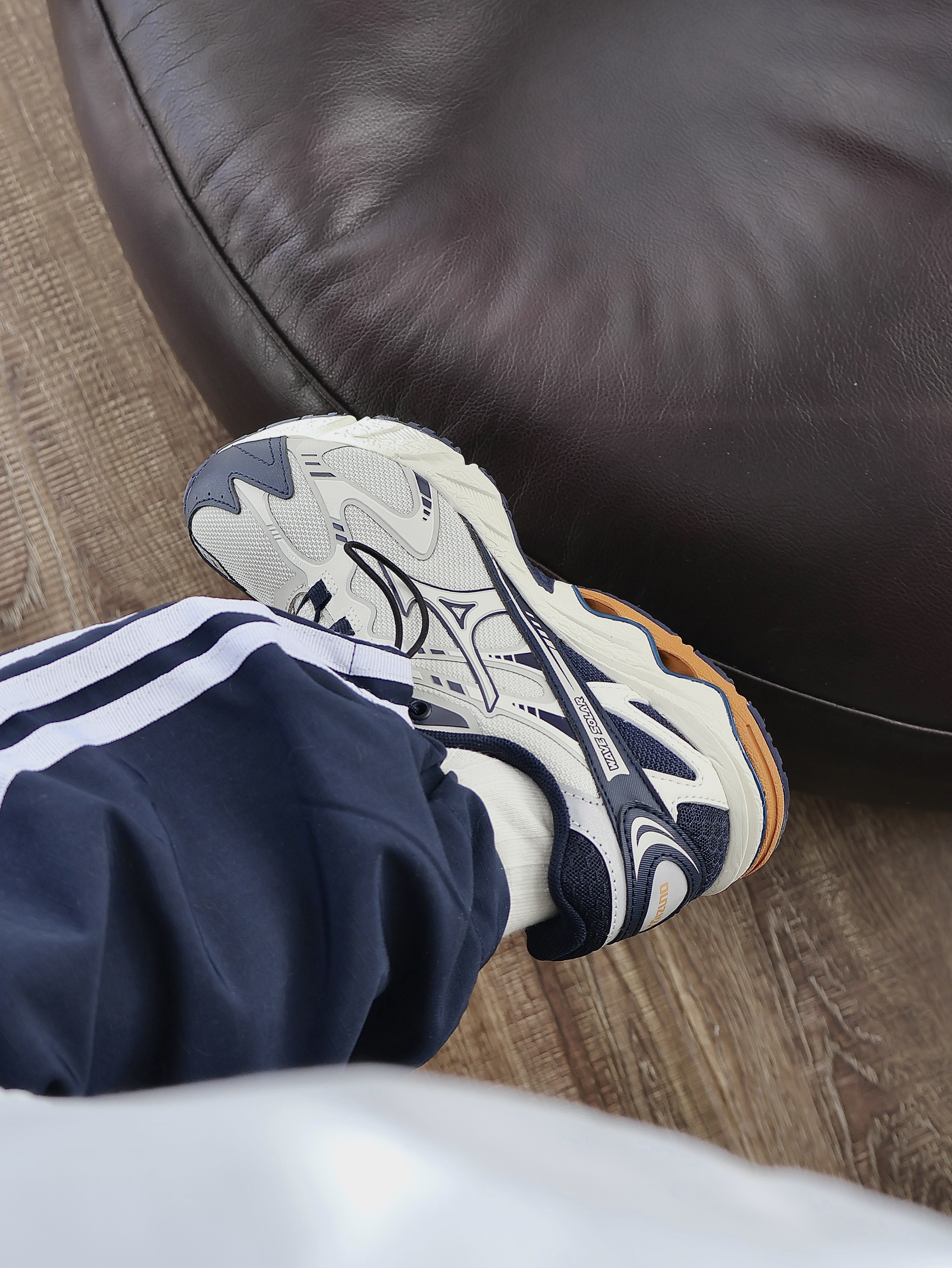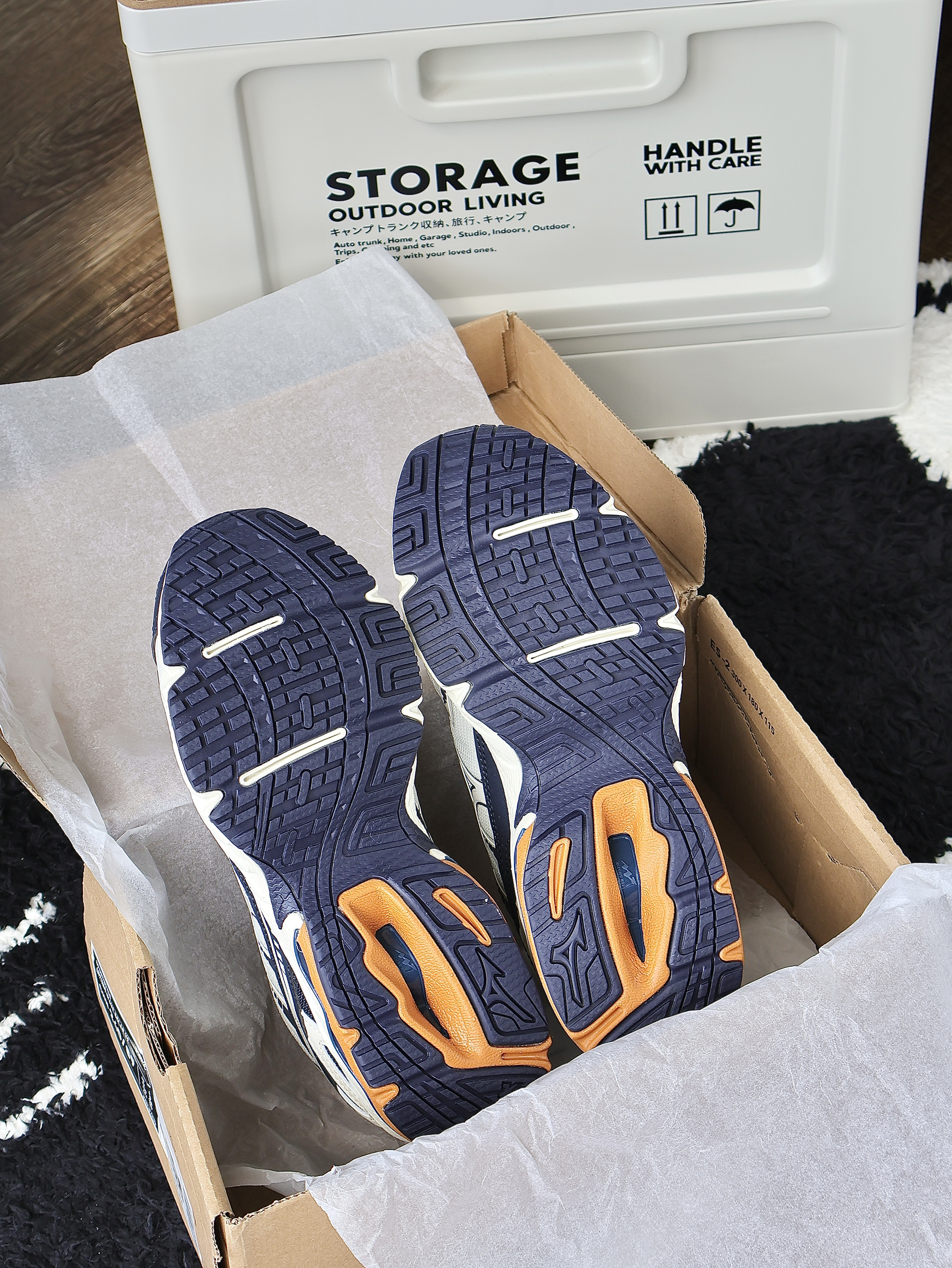 秋天的第一双美津浓跑鞋!迫不及待穿上了~ 经典复古鞋型!鞋面色彩材质搭配好有机能感 选了比较出挑的的蓝菊配色🍊 防滑橡胶大底 摩擦力蛮不错的 穿着也比较轻松 舒适度OK 也能驾驭多种穿搭风格!
