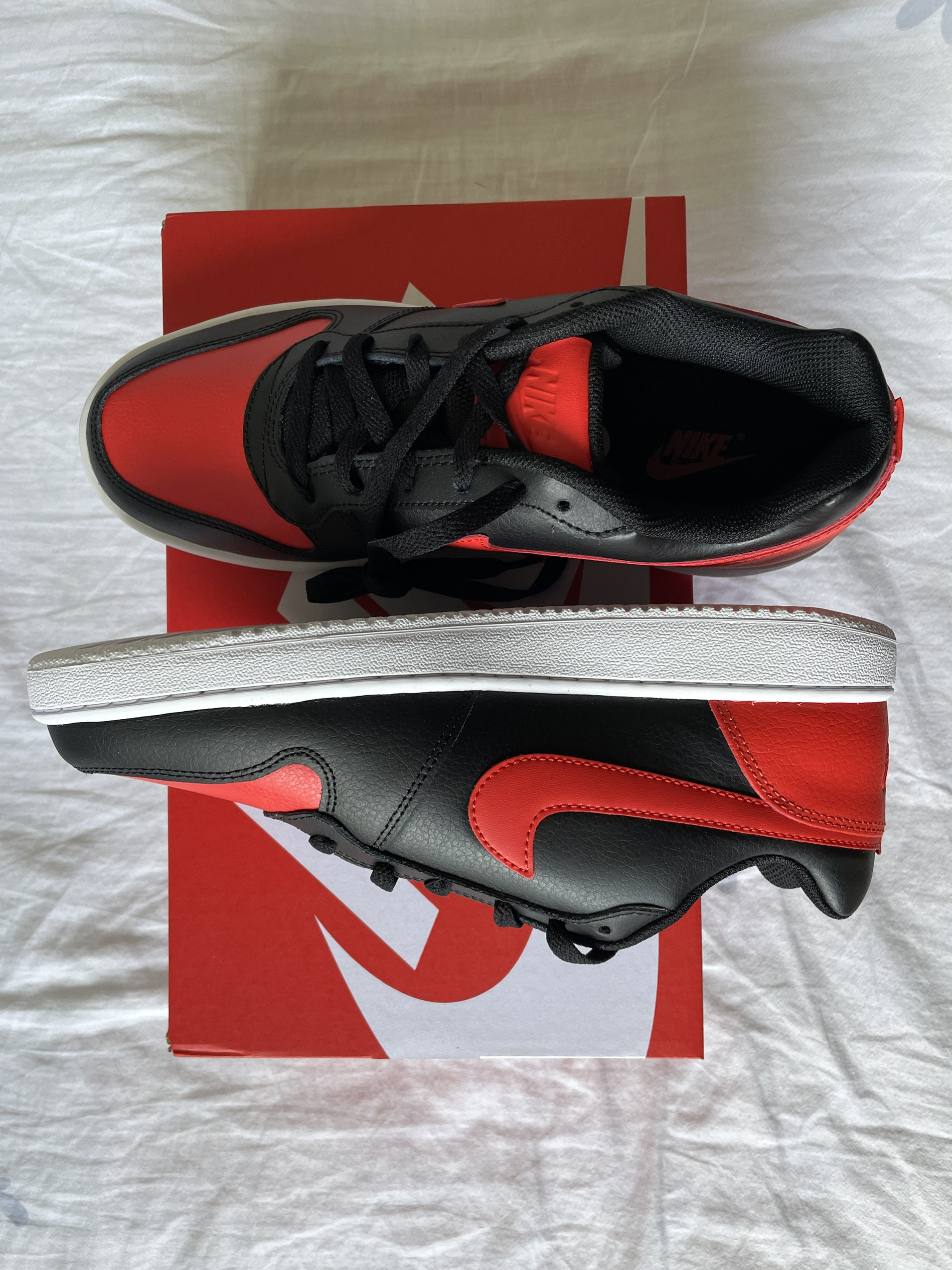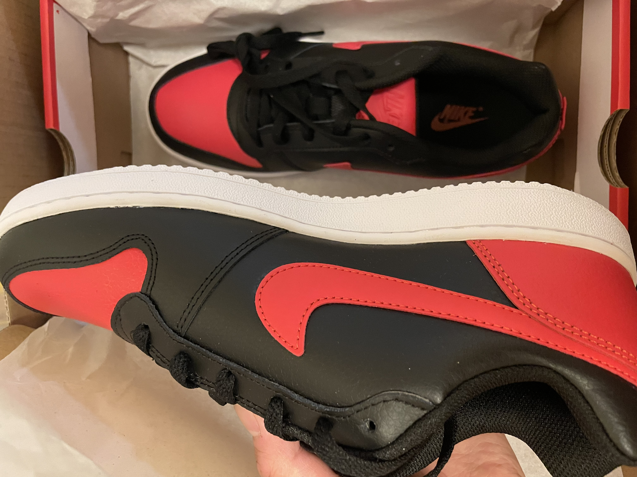 #黑红Nike #低帮舒适板鞋 #复古潮流板鞋 🌟🌟 这款耐克Ebernon复古低帮板鞋,本人入手的是黑红系列,颜值在线,脚感还算舒适,整体正码合脚,做工也很精致大方👏这款鞋子复刻80年代经典,致敬复古篮球风范🫡对于板鞋爱好者,十分不容错过的一款👟🫰🫰#谁能不爱复古板鞋 #复古篮球板鞋
