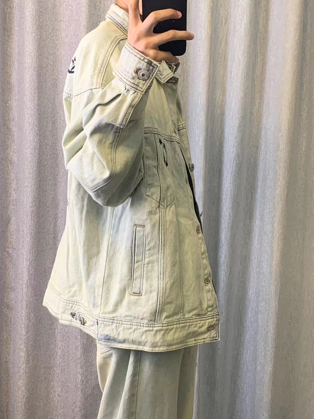 这外套帅气十足,外套搭配牛仔真的心动了 衣服版型也是相当不错心,买大一点或者买 合适的身上效果都是杠杠的 秋天有了这个牛仔外套又能防冷又能耍帅。 也是一块百搭牛仔裤,版型也很好,显 腿细,质量,扯的时候也有弹力,建议买裤子 选择合适自己的