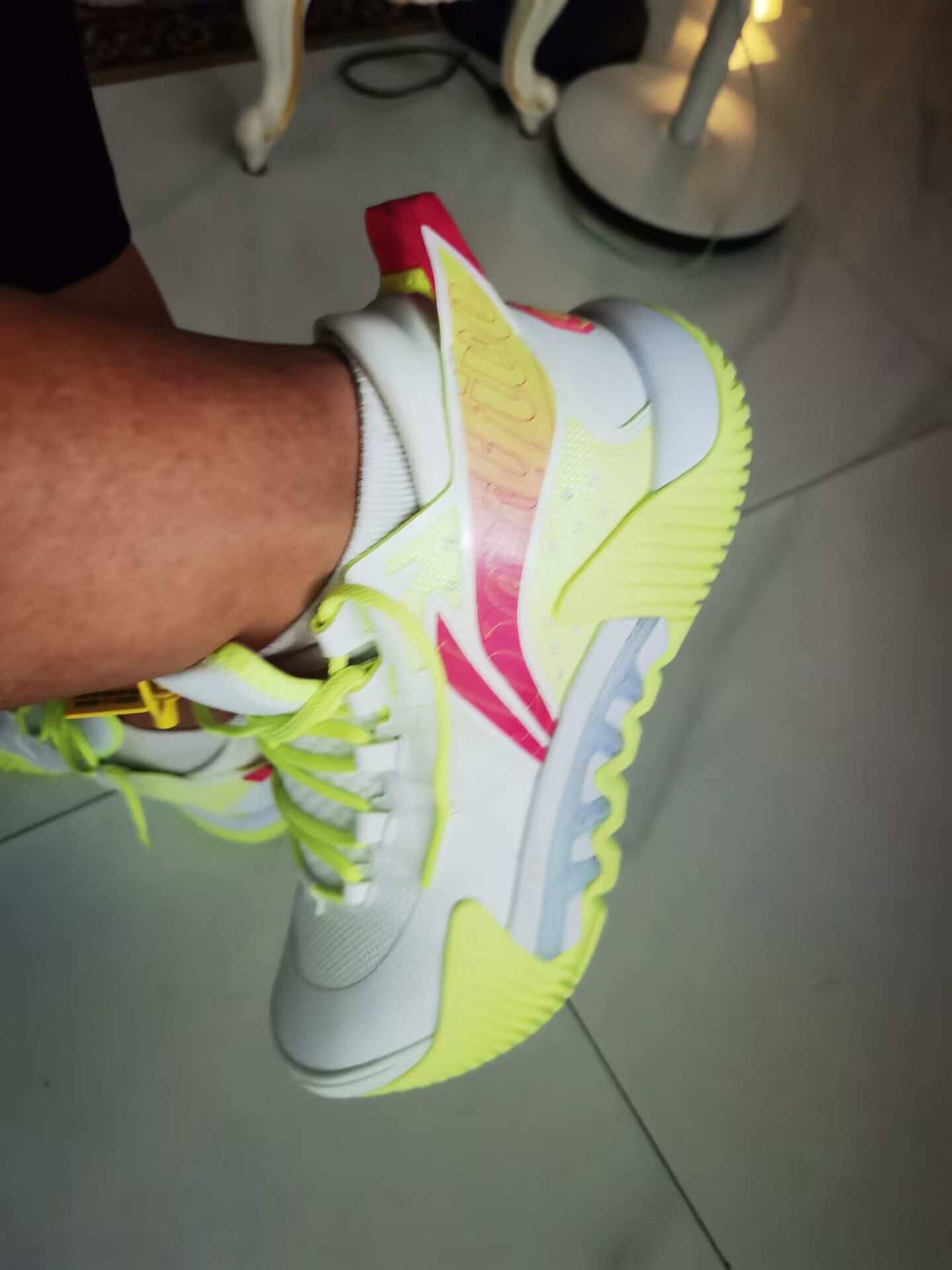 反5,2代被全网吹的神乎其神。 低帮价格这么便宜,买了一双 确实,上脚有惊喜。脚感比较舒适。 但是不像气垫鞋。缓震极限大 。可能比较适合灵活的大体重。大体重后卫。 我个人感觉如果是低帮的话讲究灵活,鞋底前掌过厚,高帮太贵了,没有试过,但他这个鞋底高度应该适合高帮