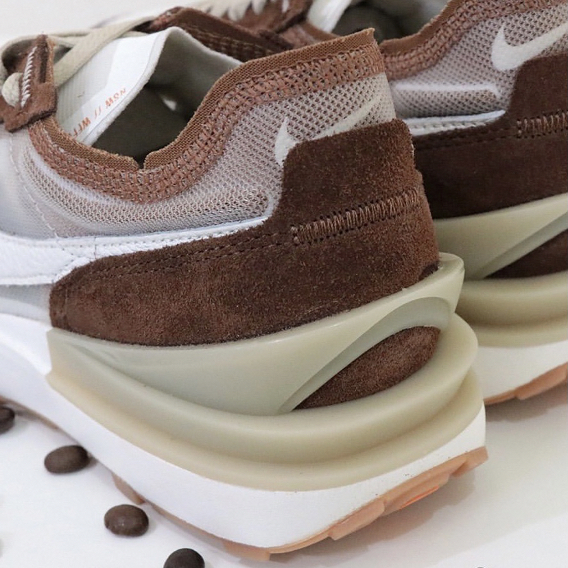鞋名:Waffle One 胡桃黄 外观及细节: 这是一双比较适合夏天的风复古华夫鞋,造型上保留了经典的设计样式,但在细节上加入了现代街头时尚设计,例如后跟位置上使用了与sacai相类似的多层后跟造型的TPU包裹,鞋面则是采用了透气更好的复合网纱布材料制作,但是又加入了质感很不错的棕色麂皮进行叠加缝制,增强了整体的强度,鞋舌是薄鞋舌的设计,有利于与脚部贴合,中底是传统的缓震泡棉,大底是生胶材...