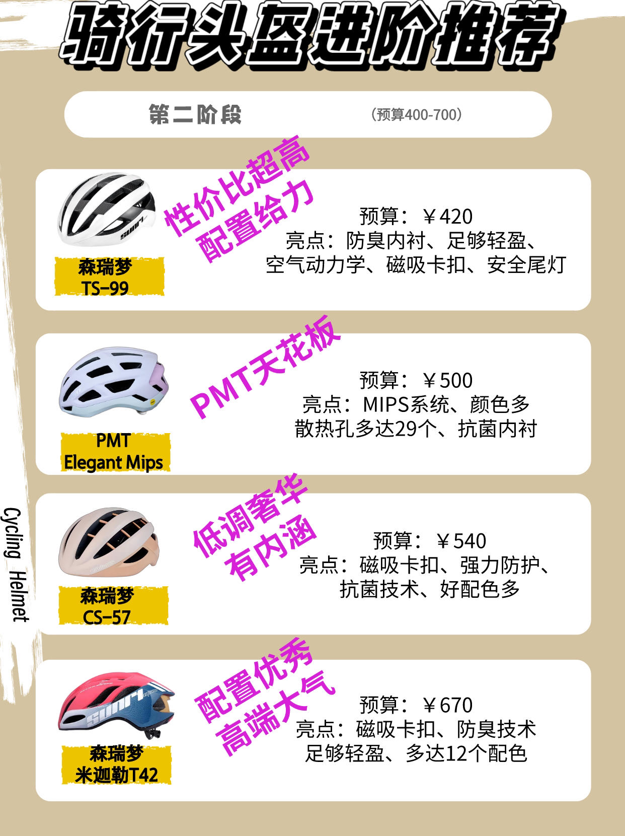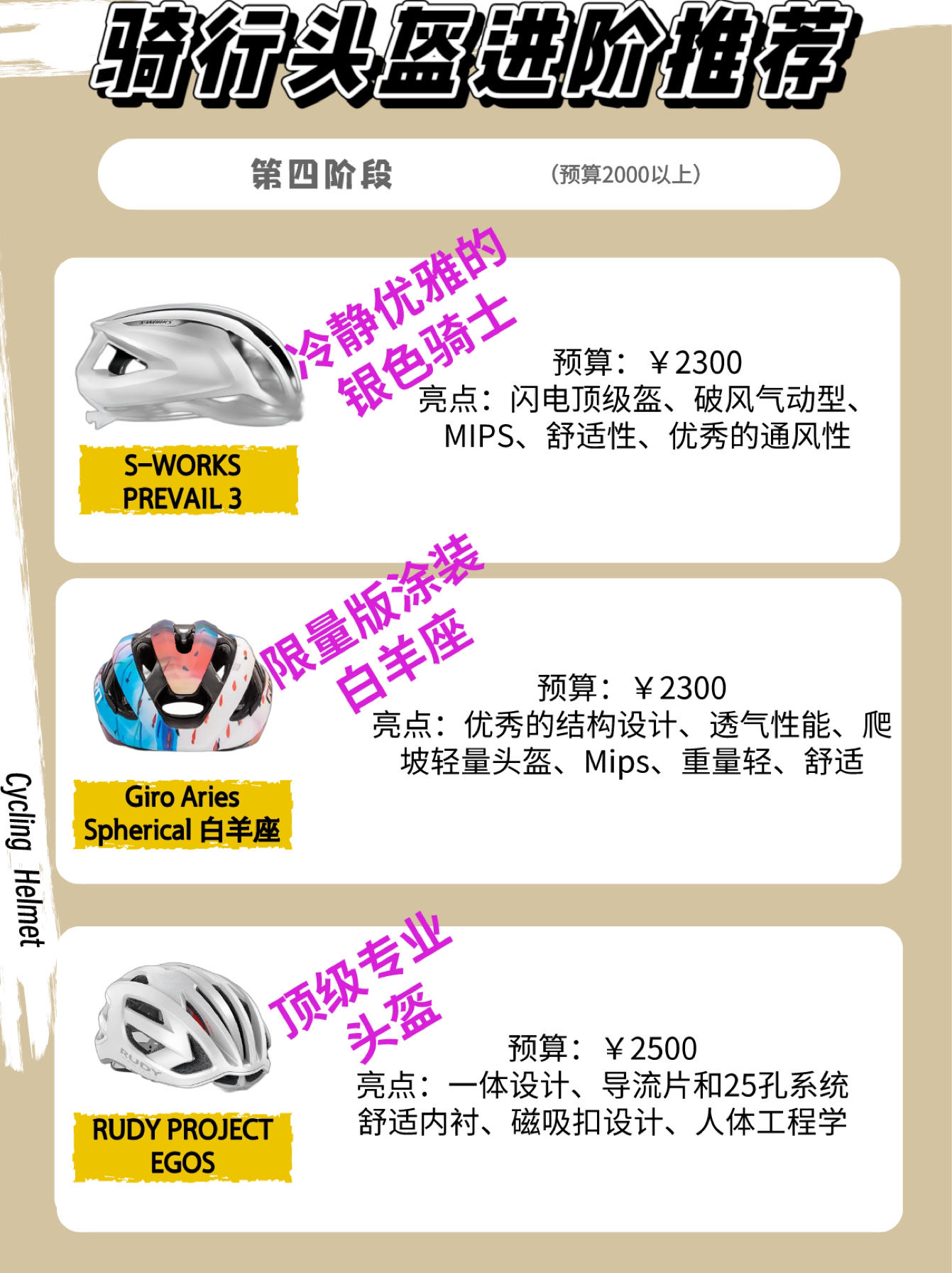 🚵♂️头盔,我相信大家在从骑行小白到入坑再到进阶时一定会被一句话记到心里:骑行记得戴头盔! ✅没错!头盔是我们骑行中最保命的配件了!大家可以不买码表和骑行服但是一定要穿戴好头盔!我亲眼见到逆行车把骑友撞倒头磕在台阶上,头盔发出“砰”的一声!从那天我就告诫自己!带好头盔🫡 📜那么选购头盔我认为需要看1️⃣头盔类型2️⃣成型结构3️⃣安全认证4️⃣适合头型5️⃣头围尺寸6️⃣重量7️⃣通风孔...