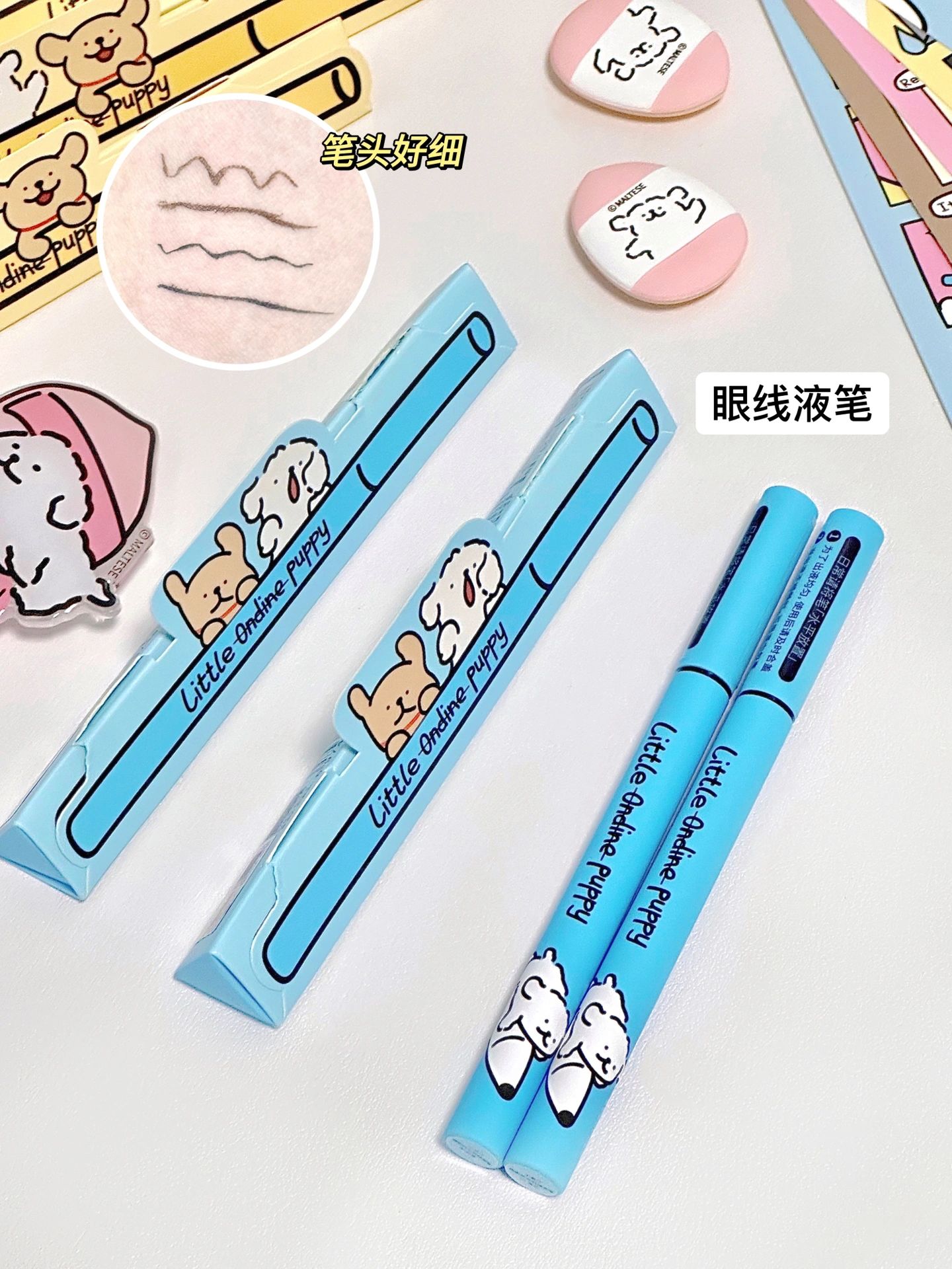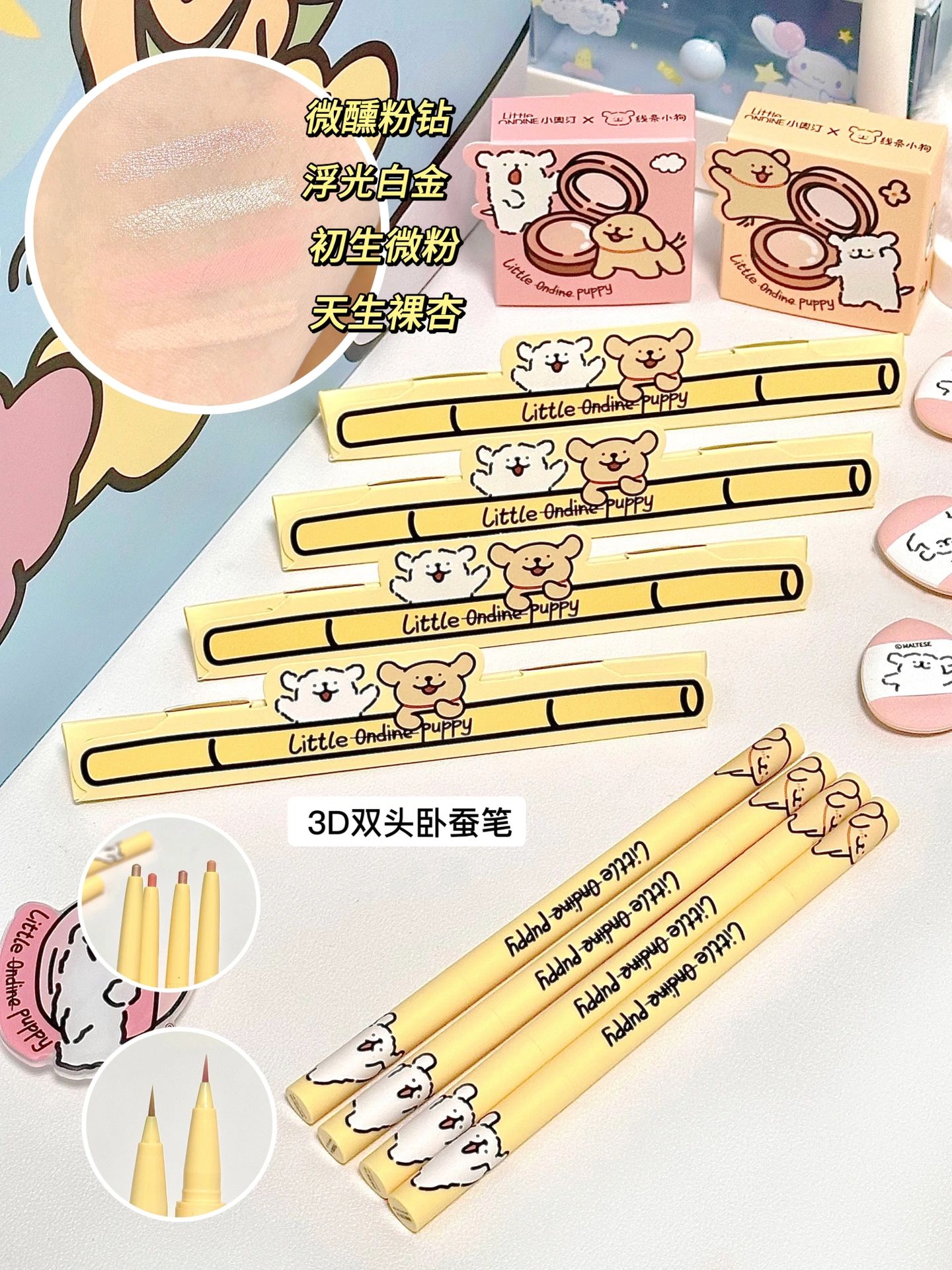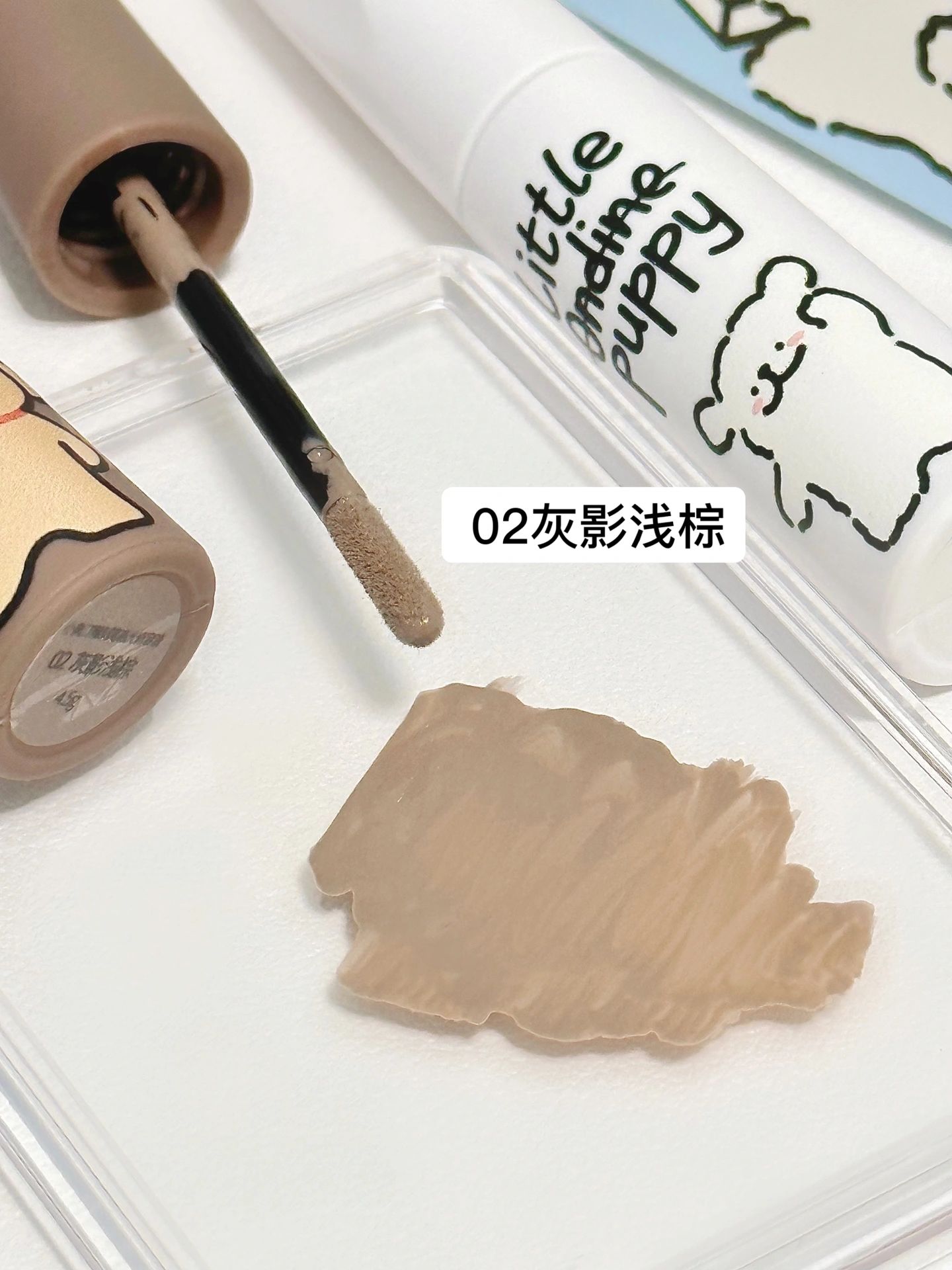 收到这个礼盒的快乐谁懂🎉 满满的线条小狗~太可爱了! 包装盒还能变身狗窝~也太实用啦 还送了小狗周边! - 不得不夸夸这个液体修容cp 高光➕阴影 轻松打造立体感 01雾光杏白 是提亮色 奶杏色更贴合肤色 不会假白! 比拇指还小的刷头 点涂更精准 可以提亮泪沟、法令纹 02灰影浅棕 是阴影色 低饱和度的冷灰棕色 可以涂好几遍再晕开 一点都不会显脏! 像光影投射下来的阴影一样自然! - 液体质地 一...