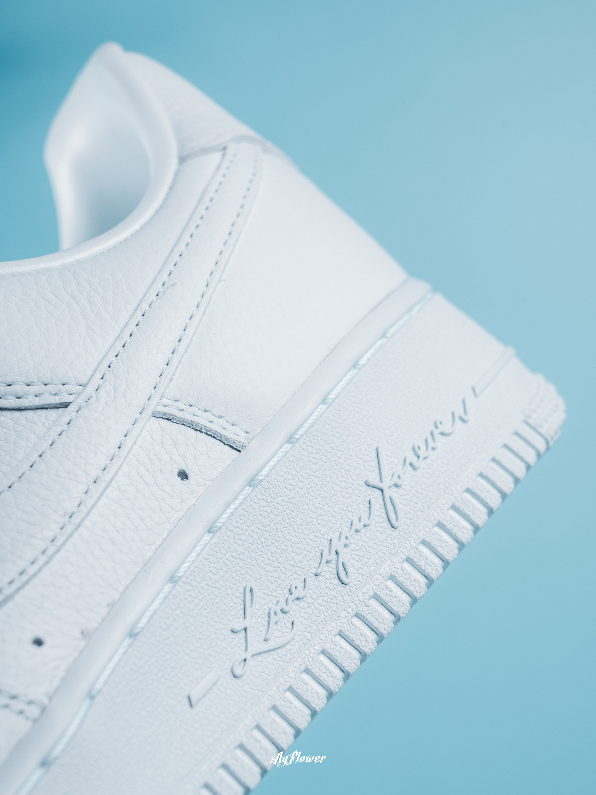 🔘以纯白af1为蓝本打造的Nocta x Air force 1从曝光的时候就吸引了我的眼球,好久没有看到这种规格的af1了! 🔘鞋面的荔枝皮加上内衬的皮质,细腻的手感欲罢不能,而重新开发的中底模具,星星的纹路全部换成爱心的形状,air字样也换成了Love you forever的字样,而蓝色的串珠也为其增添了更多的可玩性