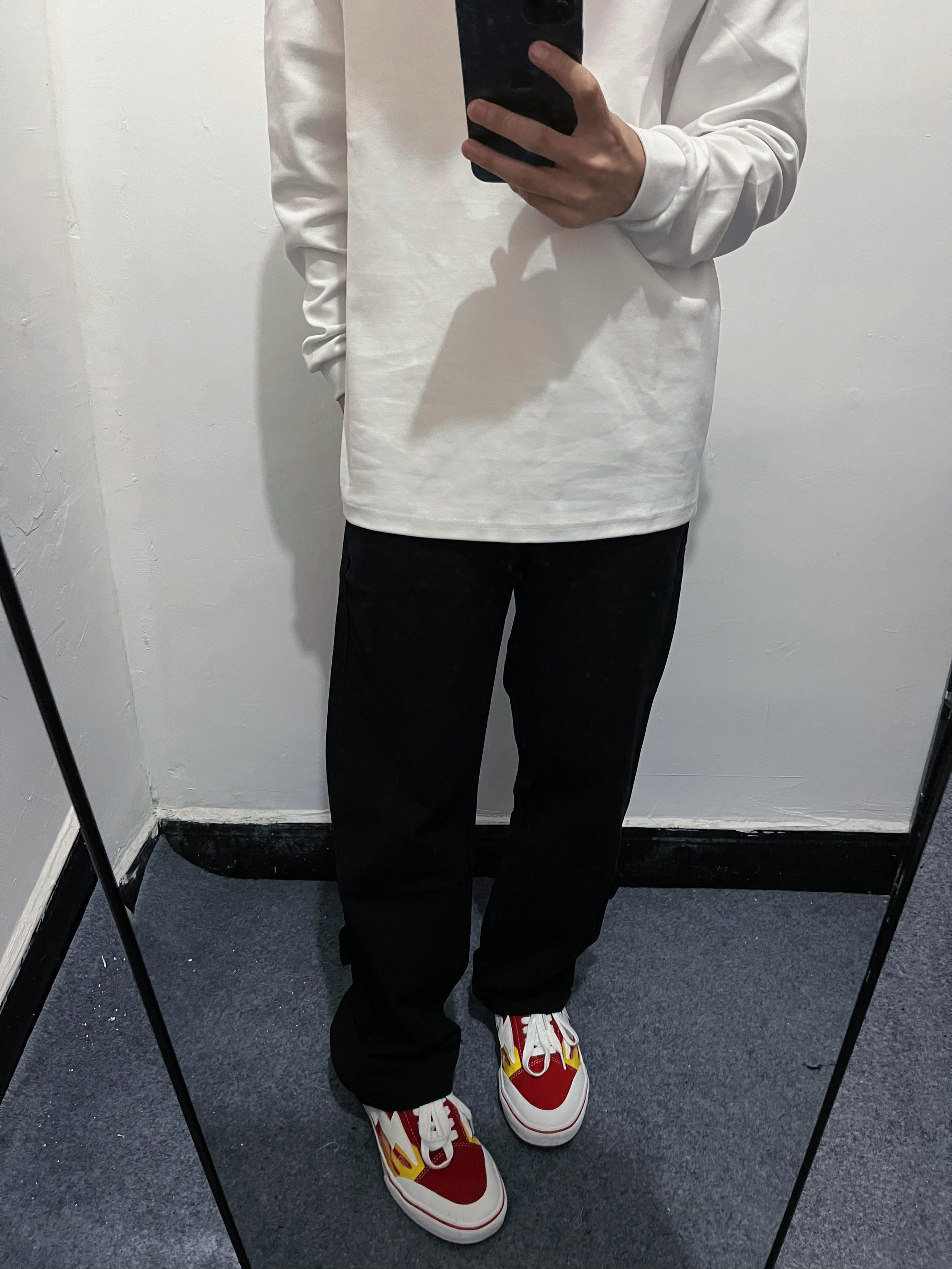 今天上身的是一件很抗皱长袖 可打底也可以外穿! 尊的很不错 身高|体重:174/106 🧍♂️ 穿搭风格:中性风cleanfit 👔 上衣:SINONOME 👖 下装:KGK 👟 鞋子:复仇风暴