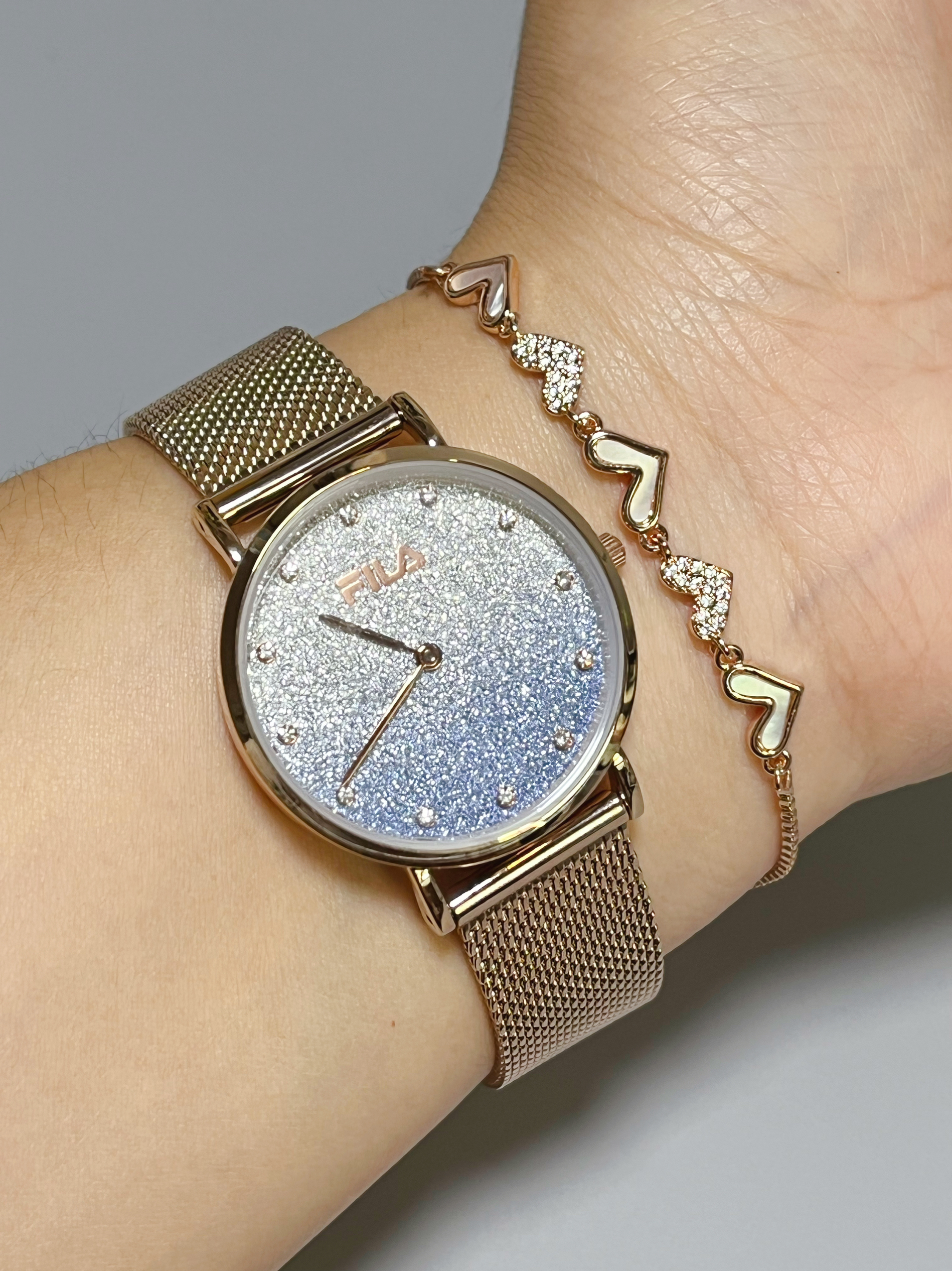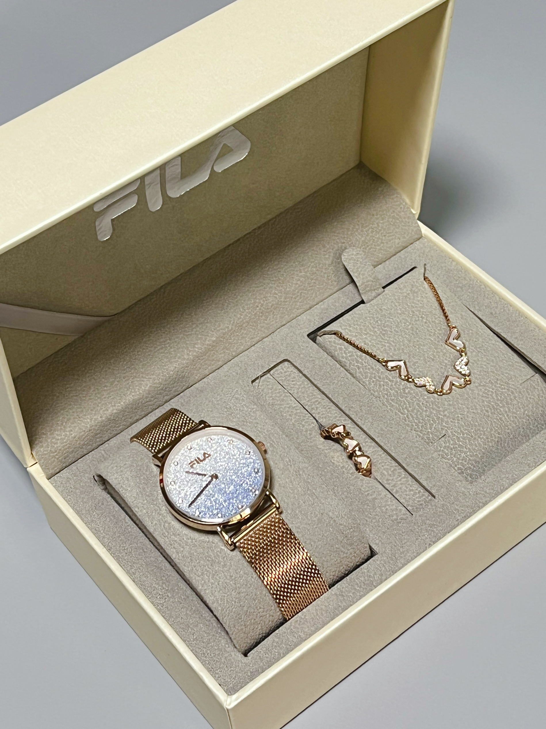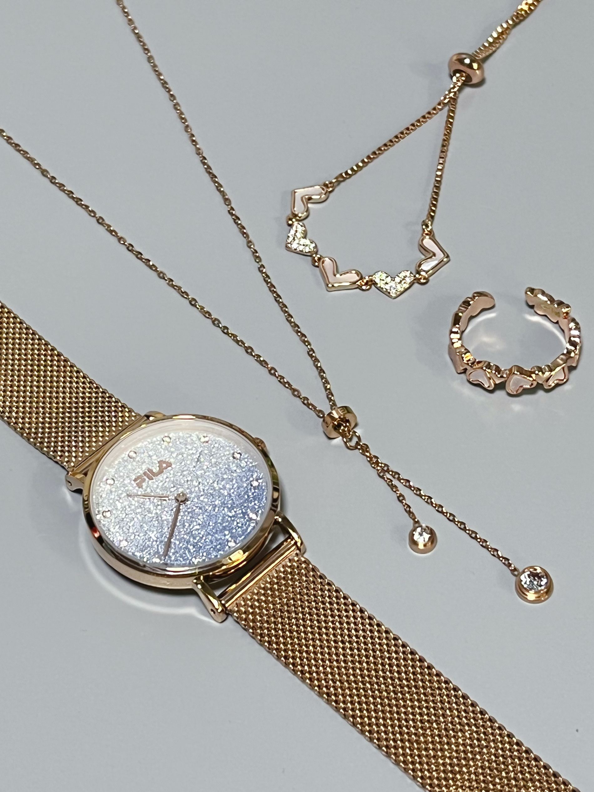 好喜欢男朋友送我的FILA手表礼盒 满满一盒收礼的仪式感满满 手表搭配手链、戒指、项链hin漂亮 富贵清冷感十足,渐变蓝的表盘也太好看啦 超级浪漫,收到这样的礼物可太开心啦