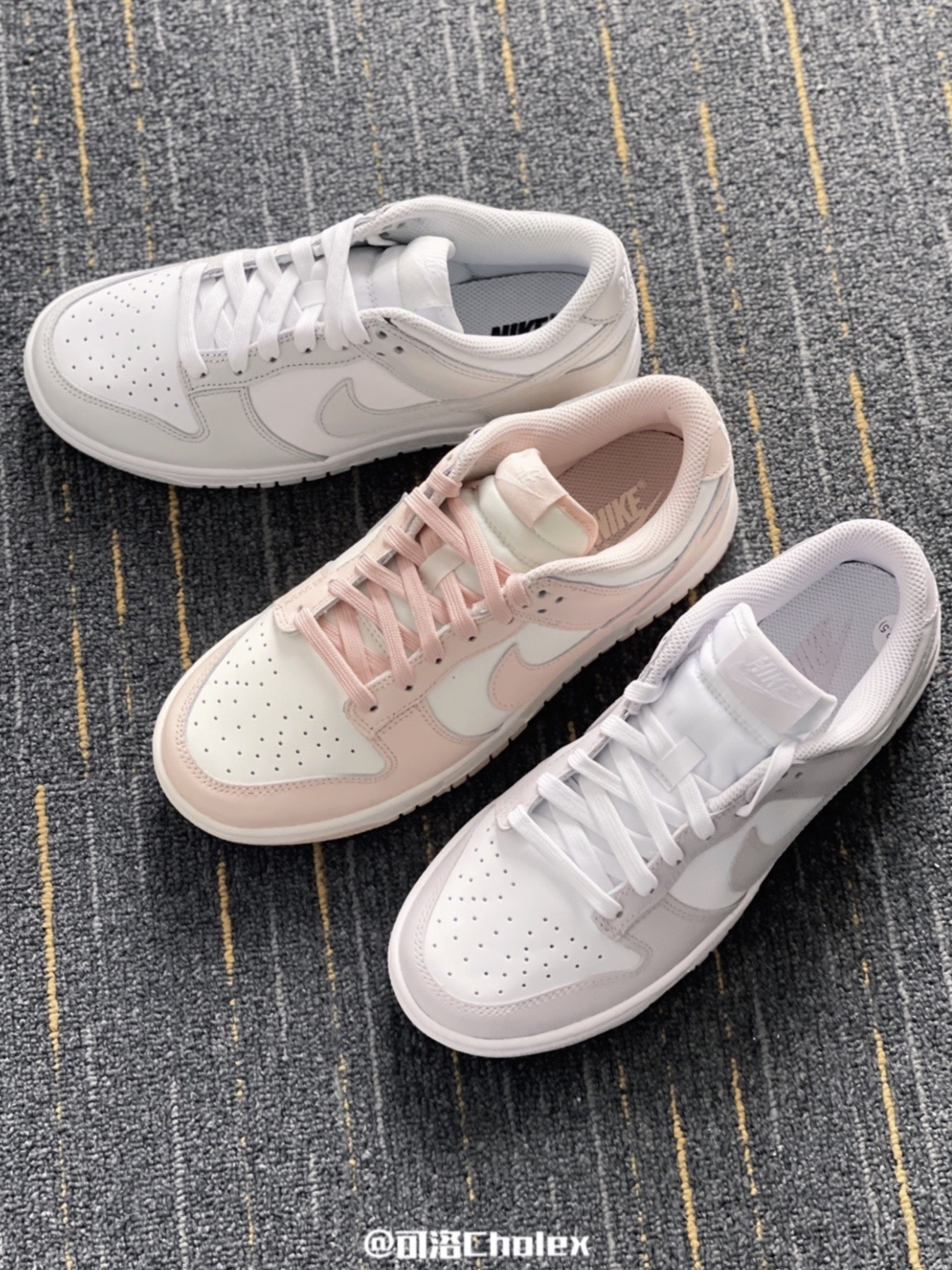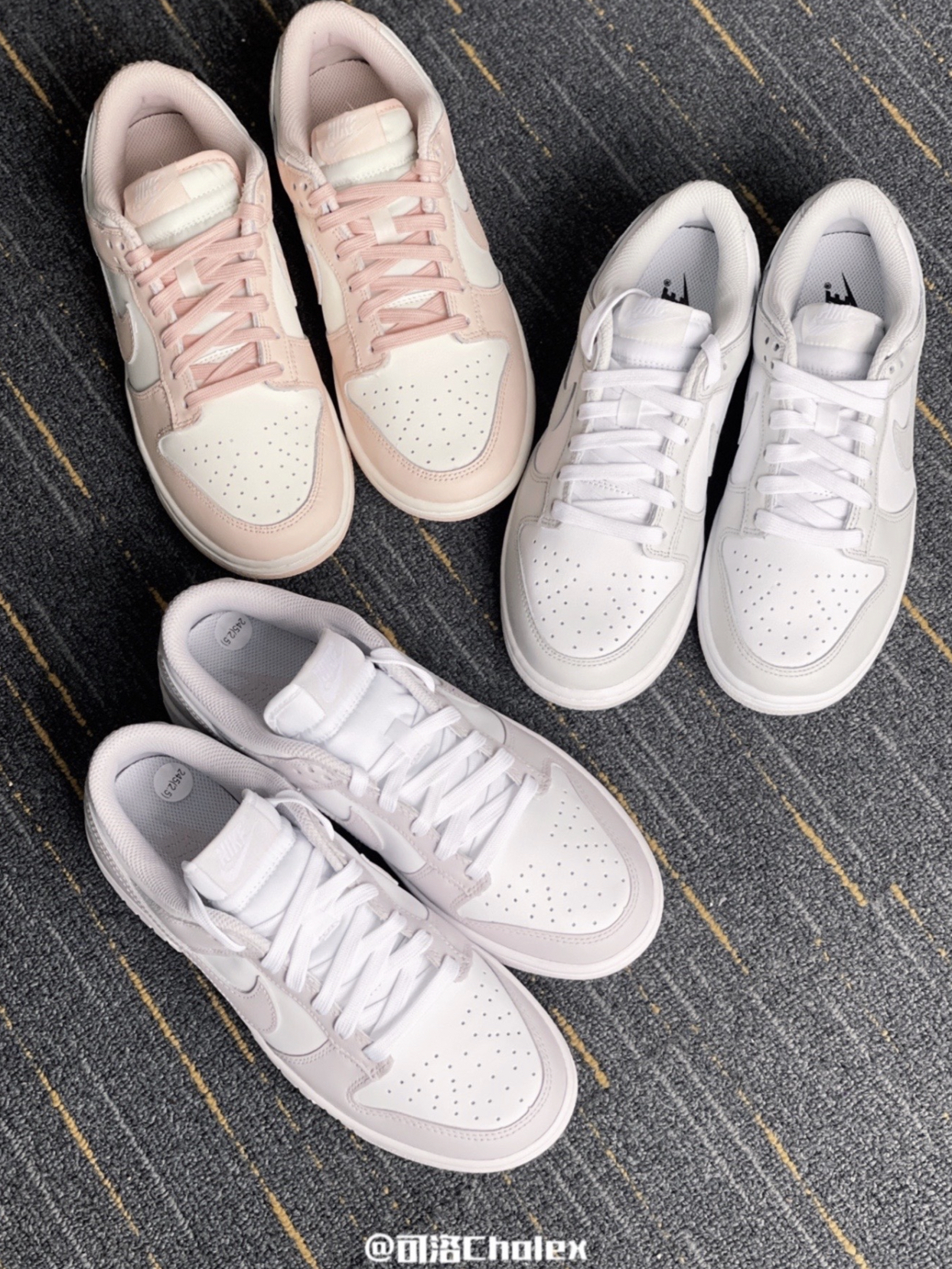 看了哪对能不心动一下,都是百搭耐看型的球鞋Dunk!今天一起来看看这三对颜值担当Dunk吧! 「Dunk 白灰」:男女都可以冲,适合做情侣鞋哈哈,而且配色是高级灰,日常穿搭或者上班通勤都可以穿! 「Dunk 白粉」:女生的鞋柜里永远有一对粉色的鞋,浅浅的樱花粉很适合春天! 「Dunk 浅紫」:找了很久的紫色,不夸张又耐看,穿上脚很显温柔哦! 这三对Dunk正常码购入即可,欢迎在评论区留言,...