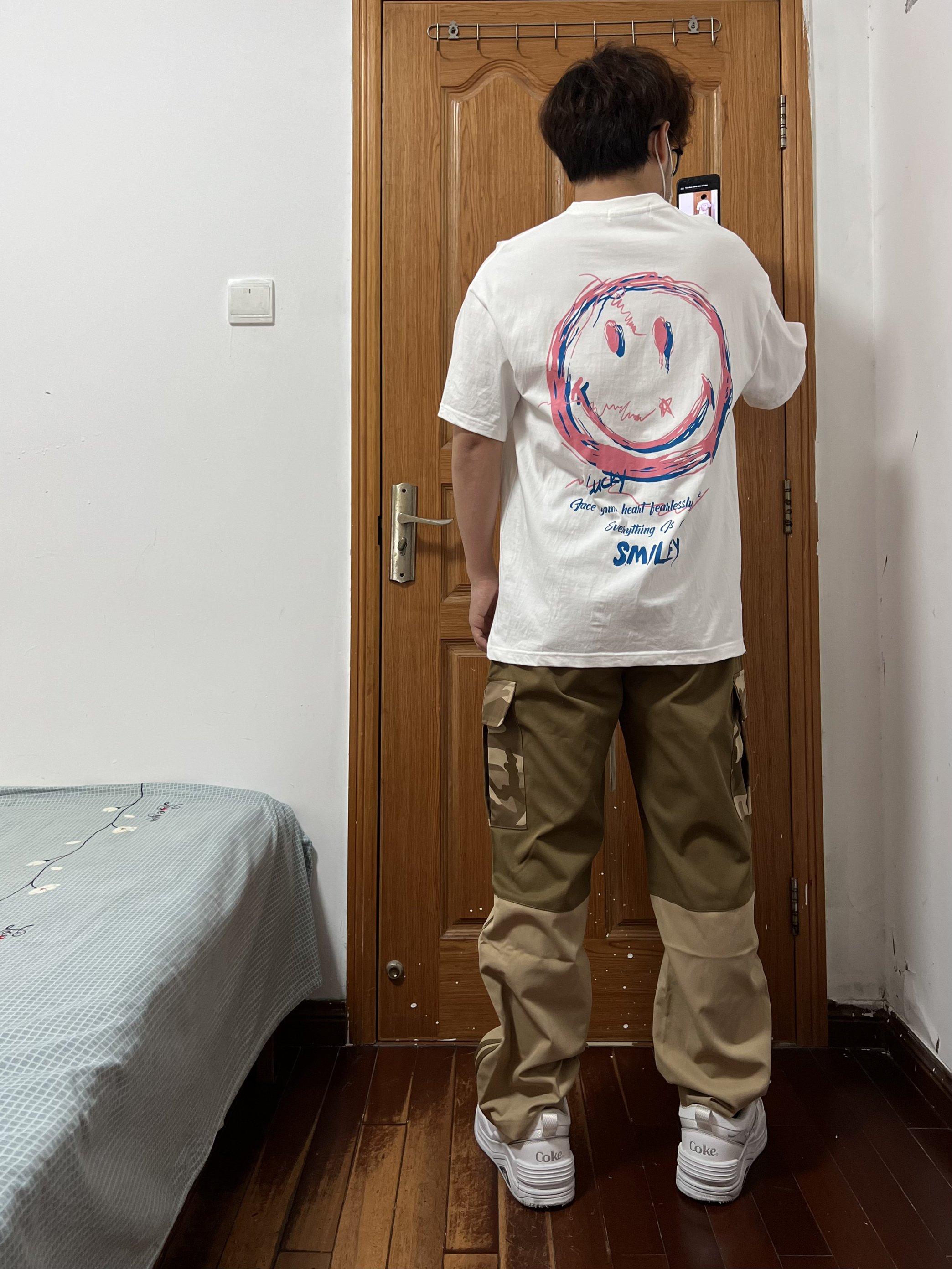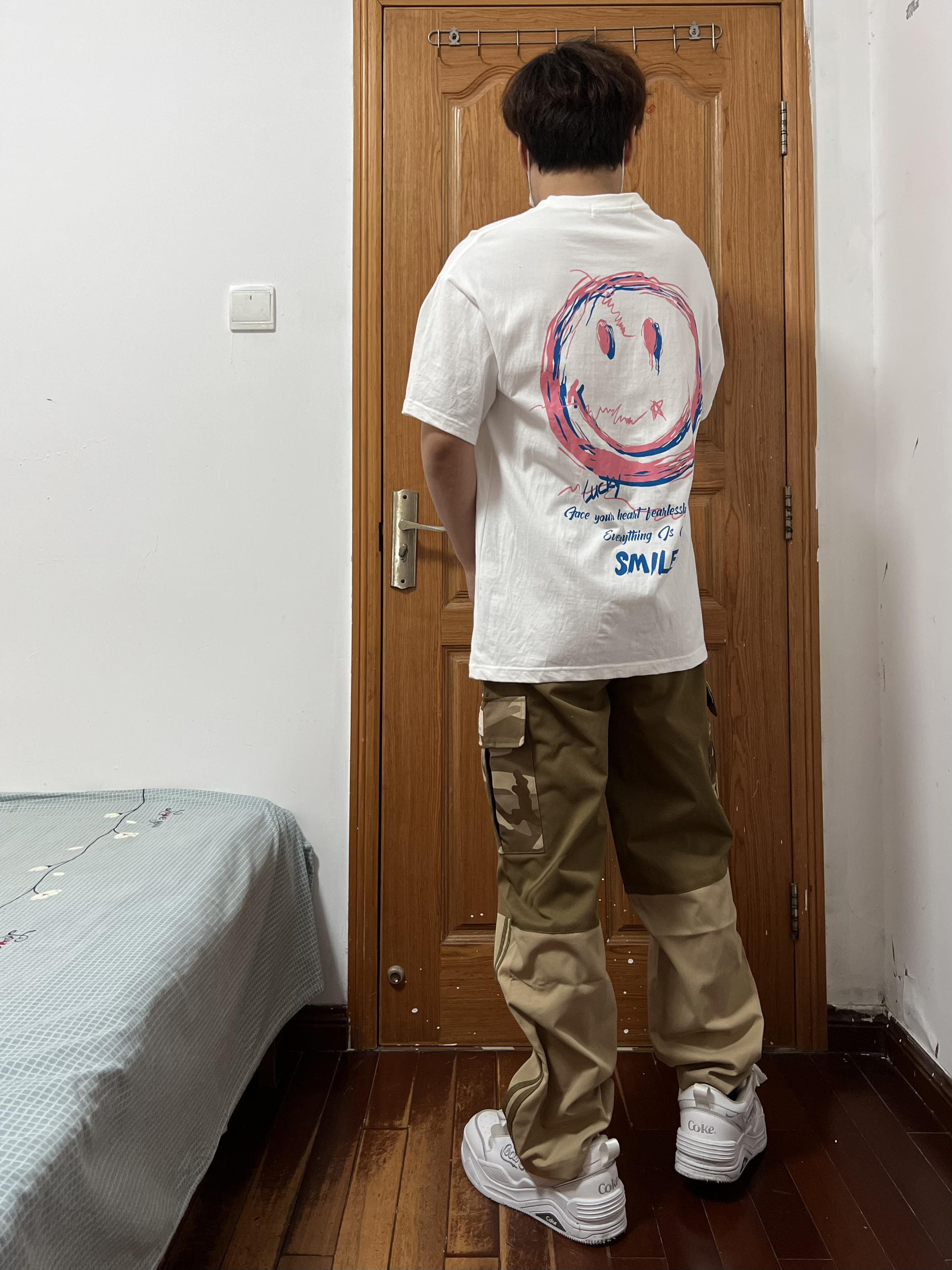 今日份穿搭分享🎉 上衣是一件简简单单的微笑😊白T 就是怎么简单怎么来呗不出错 要想穿搭帅第一步就是白T身上穿 裤子是dnnnnx 迷彩口袋拼接直筒工装裤 这是我找了好久才发现的拼接直筒裤 条纹➕拼接➕工装口袋很帅气的好不好 面料and版型都是我要的诶超帅❗️ 再上脚一双小白鞋最近的心头爱 👔 白色短袖 👖 dnnnnx工装裤XL 👟 Coca-Cola 🙋♂️ 170/120斤 持续带来最...