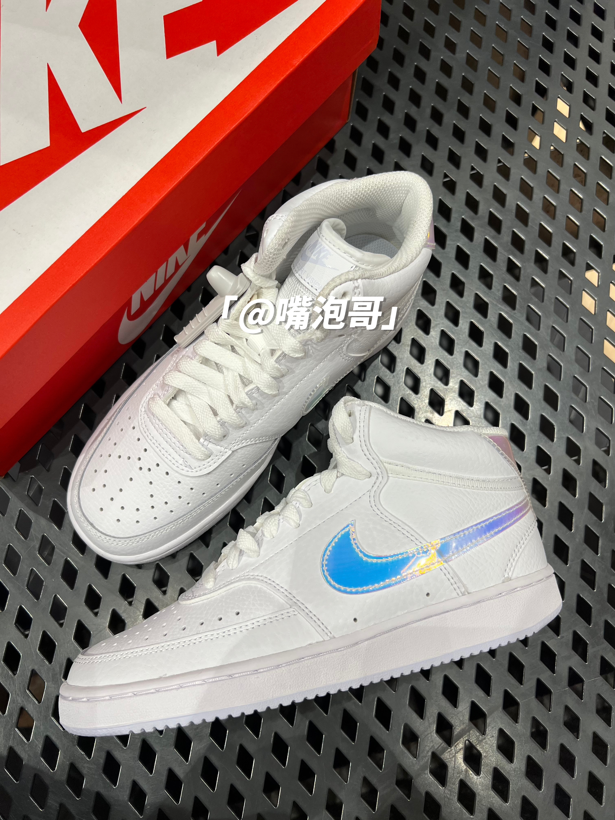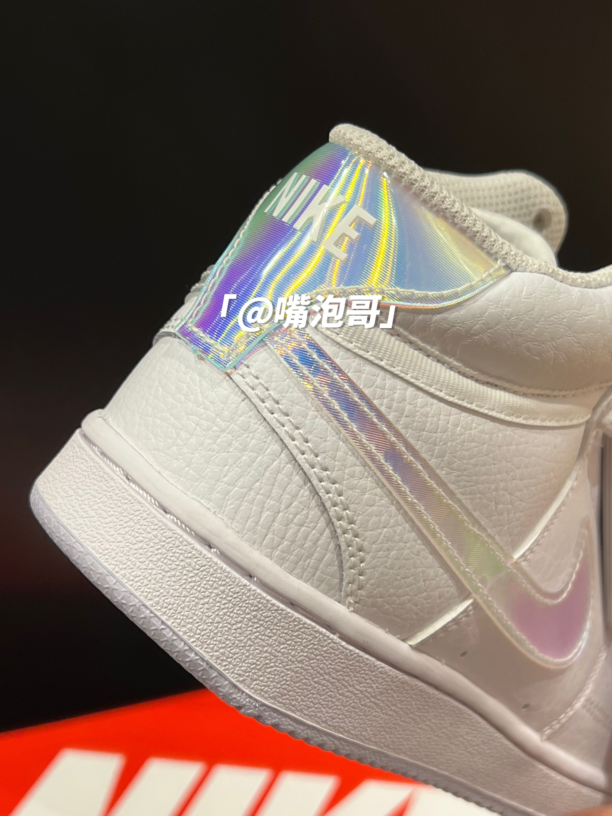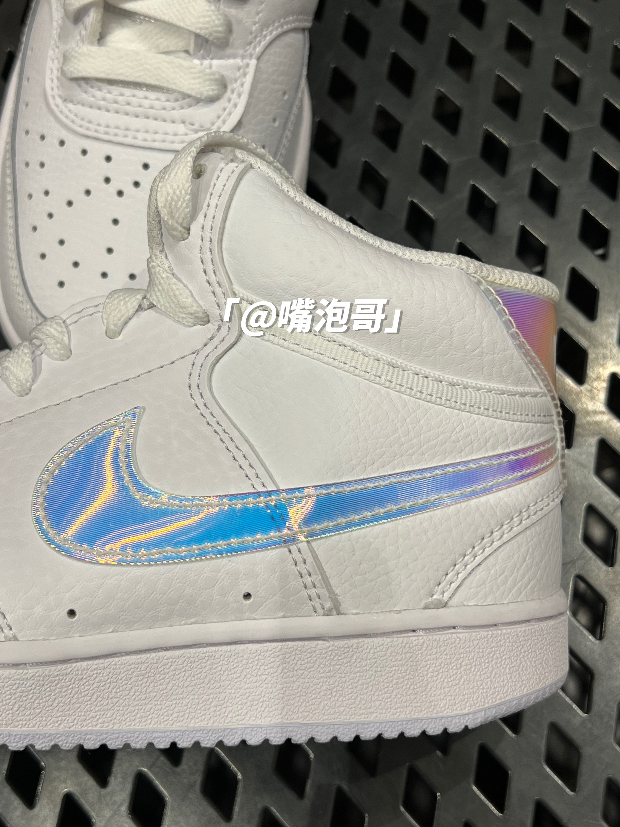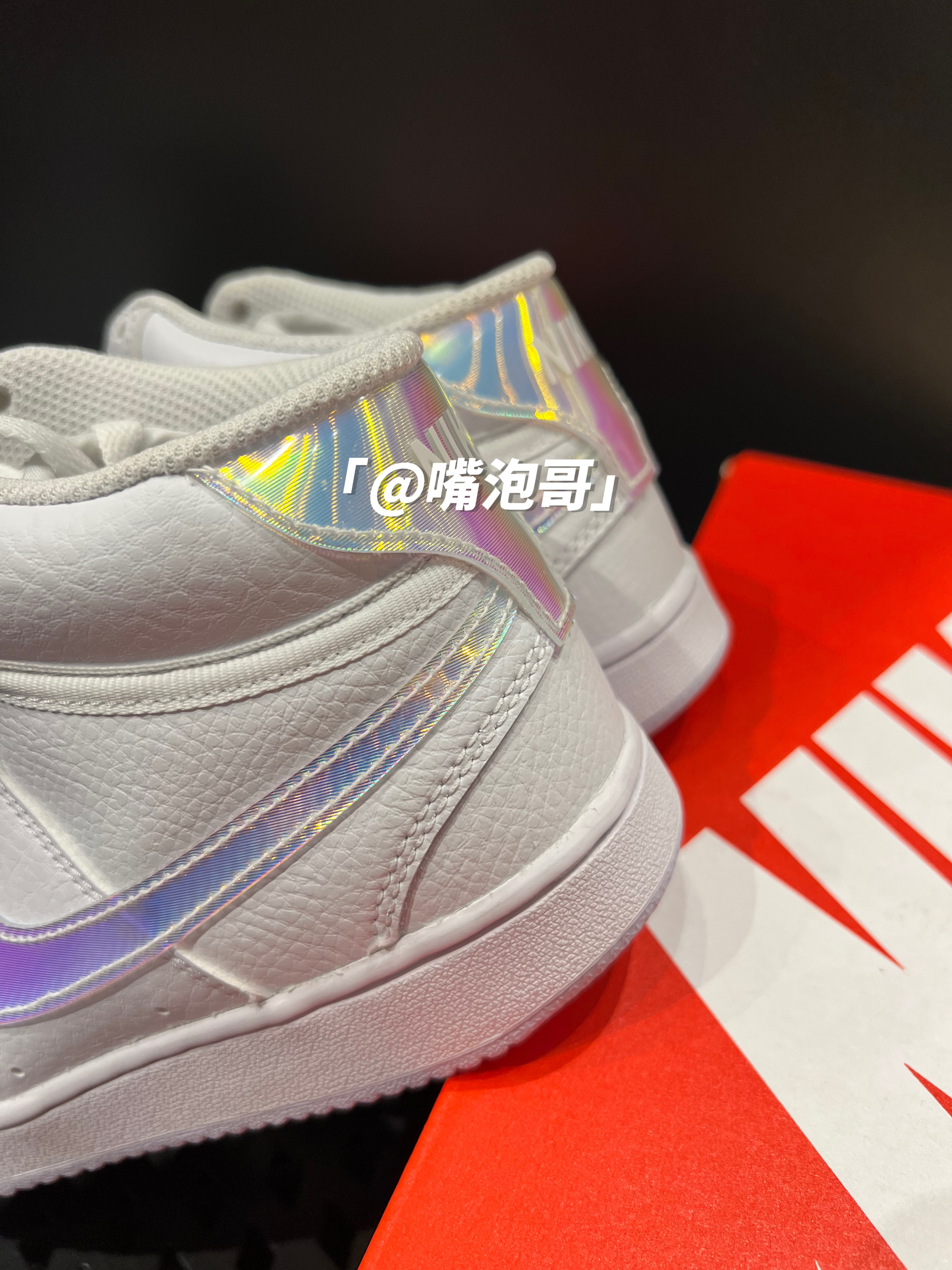 👟:Court Vision Mid 白色 简介: 鞋款是经典的Court Vision 中帮鞋型的外观设计,整双鞋子选用了最为基础百搭的白色来呈现,并且又使用了彩色渐变闪卡材料制作两侧swoosh及后跟装饰,使鞋子更具辨识度。 细节: 鞋面通体使用了柔软的白色皮革制作而成,鞋舌选用了复合织物材料打造,保证了鞋子的透气性,两侧的swoosh以及后跟的装饰片都是选用了彩虹渐变的闪卡材料制...