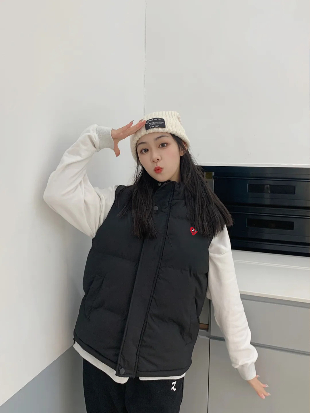 上身暖乎乎的,显白减龄无敌了!马甲拿着很轻薄,款式显瘦版型好,黑色很百搭,搭配毛衣卫衣打底衫都是不错的选择!