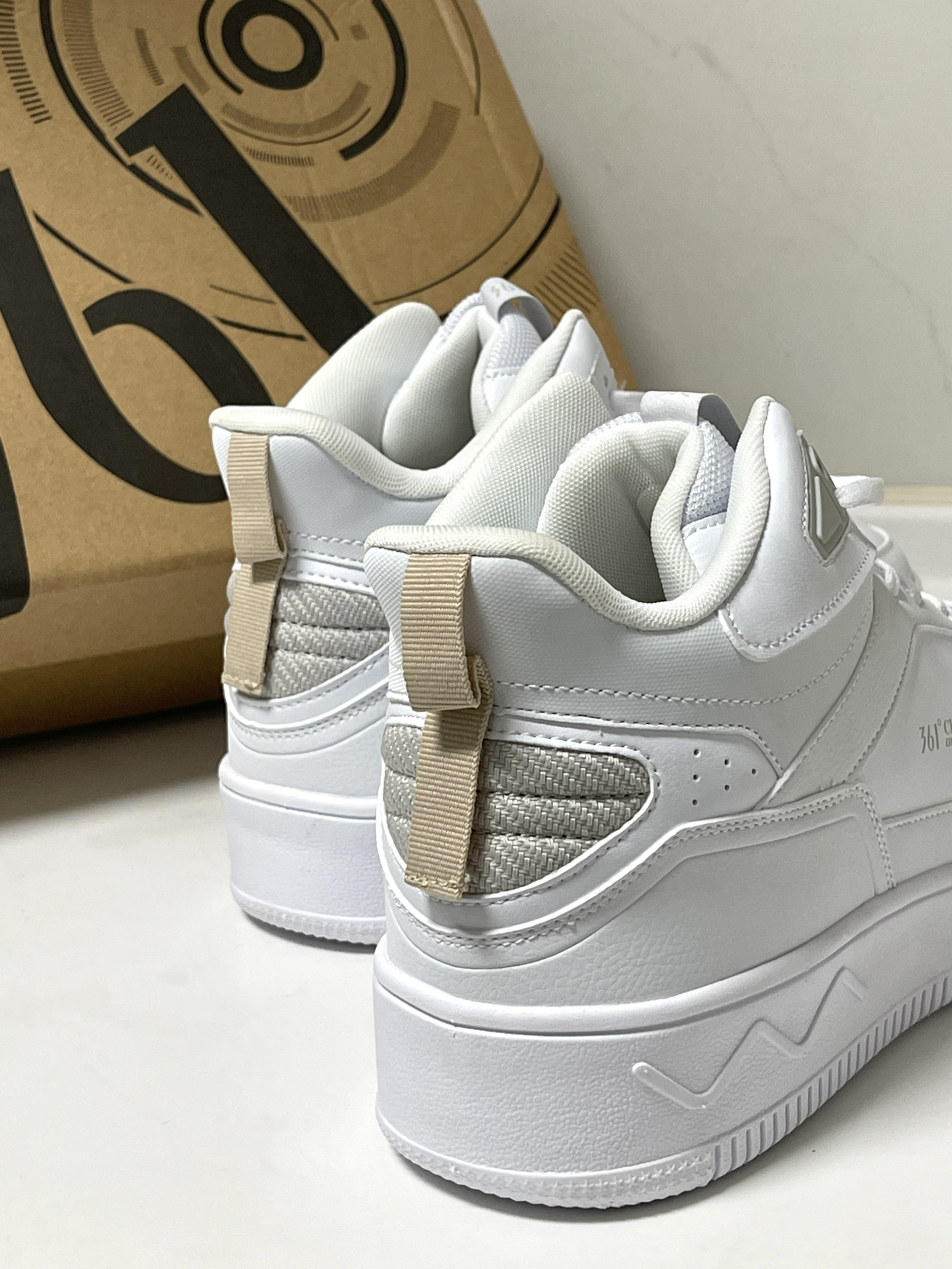 秋冬季节越来越近啦,你的秋冬保暖单品准备好了吗‼️ 361° |加绒保暖 “邦弹”高帮板鞋 白灰☑️,经典百搭的纯白高帮鞋型,鞋面采用柔软皮革打造,穿脱起来柔软舒适。加绒填充,保暖十足!外侧看不出臃肿,整体很轻便。“邦弹”的中底搭配耐磨大底,上脚软弹还有不错的增高效果!