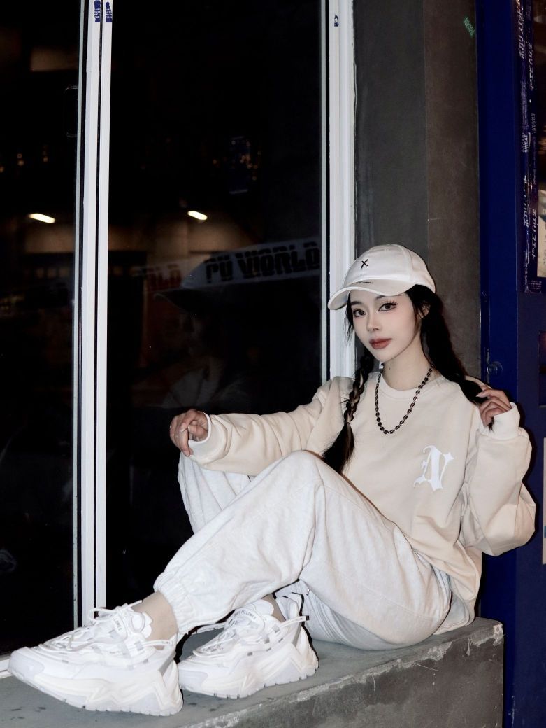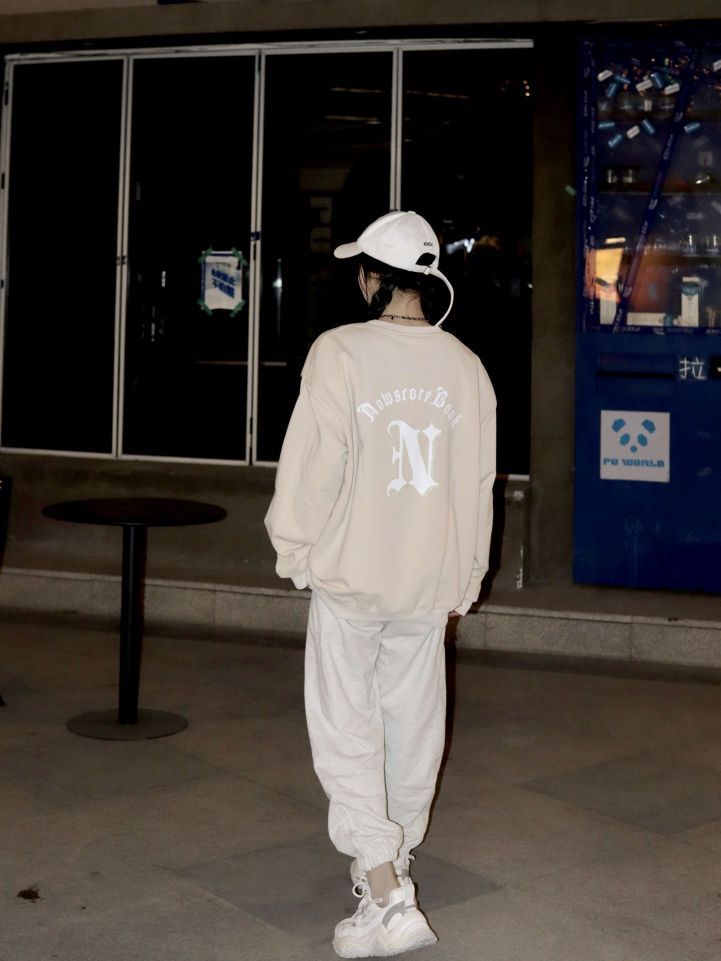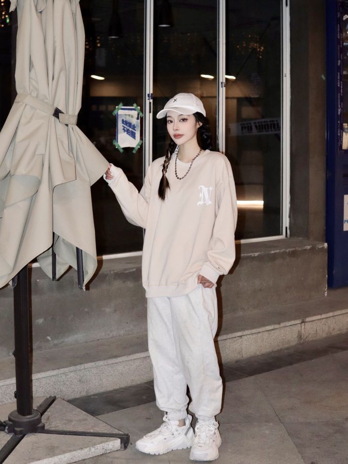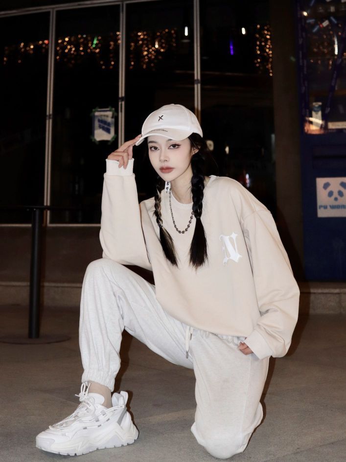卫衣颜色很很爱住 很显白 杏色卫衣搭白色阔腿直筒裤 颜色真的太配了 很温柔的感觉
