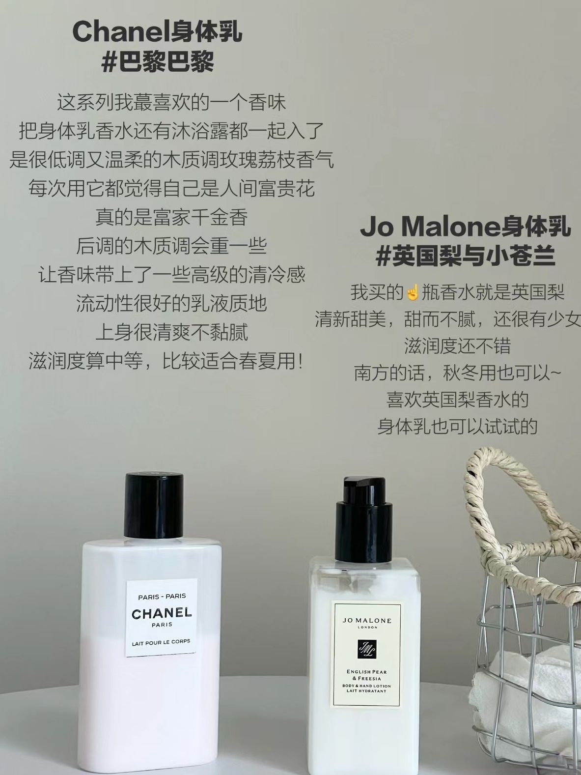 本篇笔记关联了祖玛珑 保湿香氛润肤乳液 滋润身体送女生礼物 英国梨与小苍兰、Chanel/香奈儿 邂逅柔情柔肤润体霜身体乳 邂逅香氛润体霜、Chanel/香奈儿 香奈儿之水润体乳 200ml 持久留香 巴黎-威尼斯等商品,为用户提供真实的使用体验和购买参考。