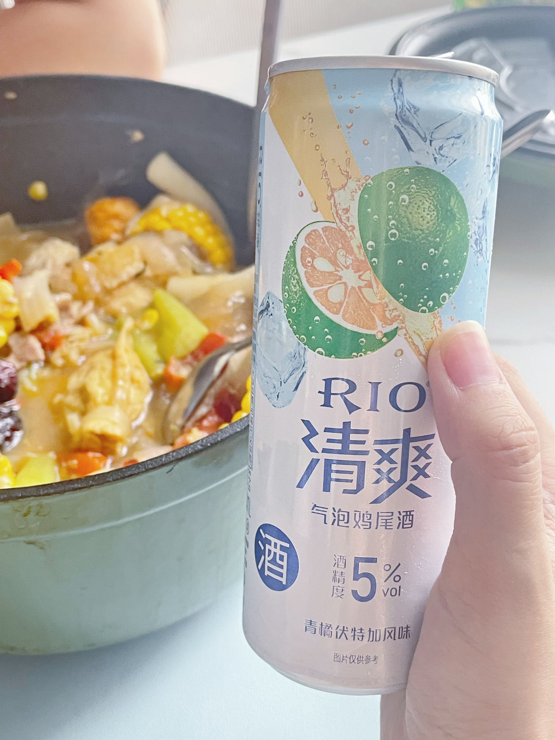 做为一个内蒙人不能喝酒这个事说起来可太难了 过节都只能跟狗一桌,是的小孩都比我能喝 还好家里有准备RIO清爽气泡鸡尾酒 浓浓的气泡,对于我这种喝酒小白来说太友好了 5度的酒精度,也不会头痛 终于能和朋友一起开怀畅饮了~