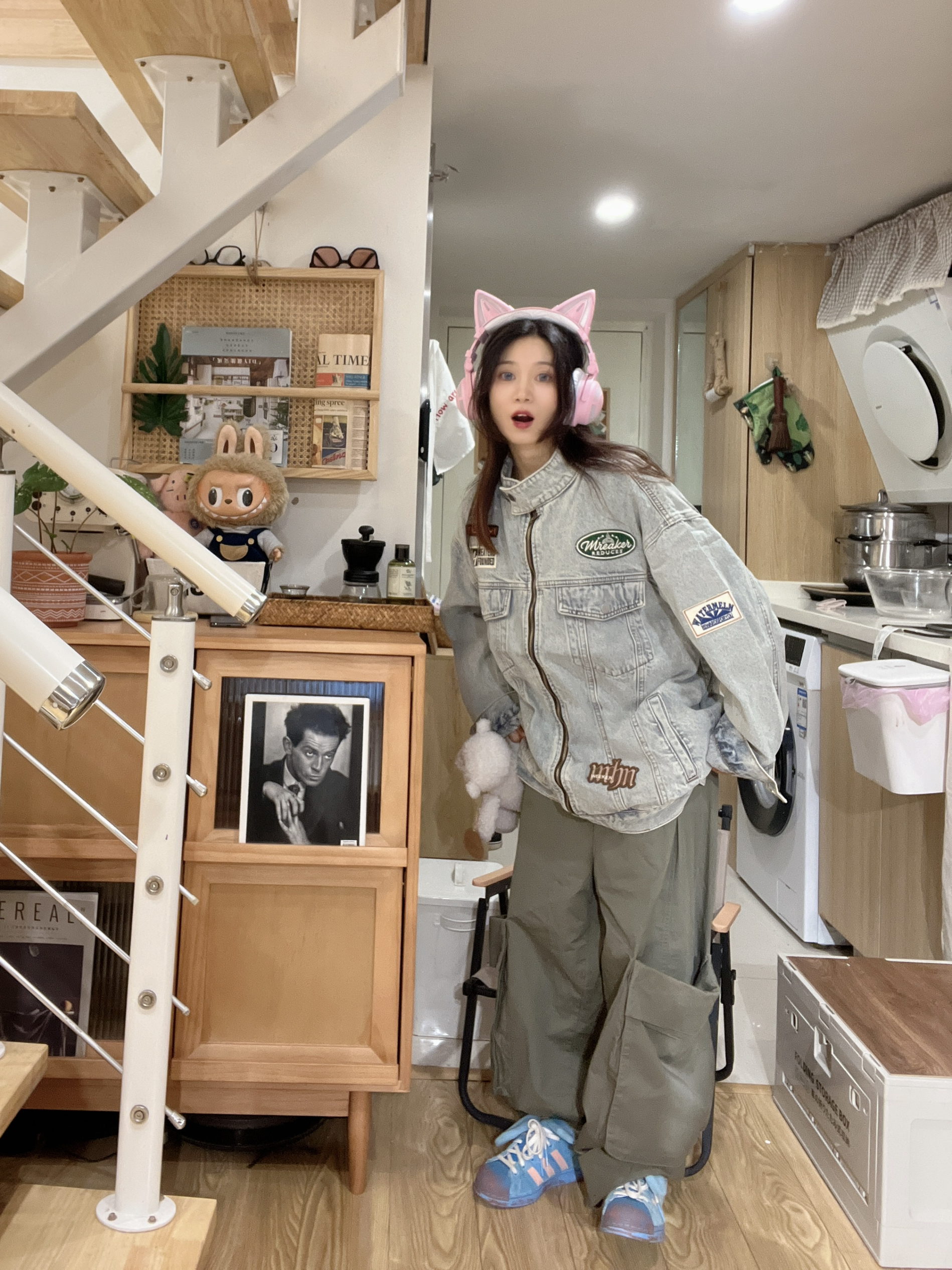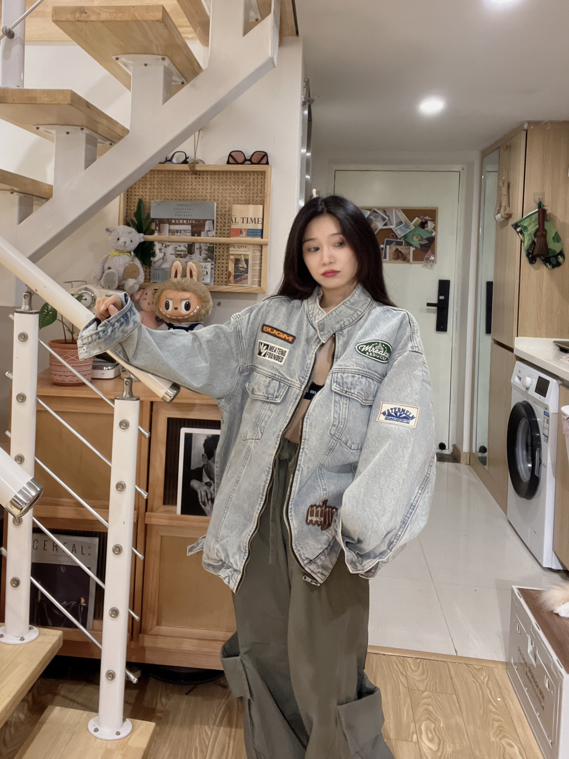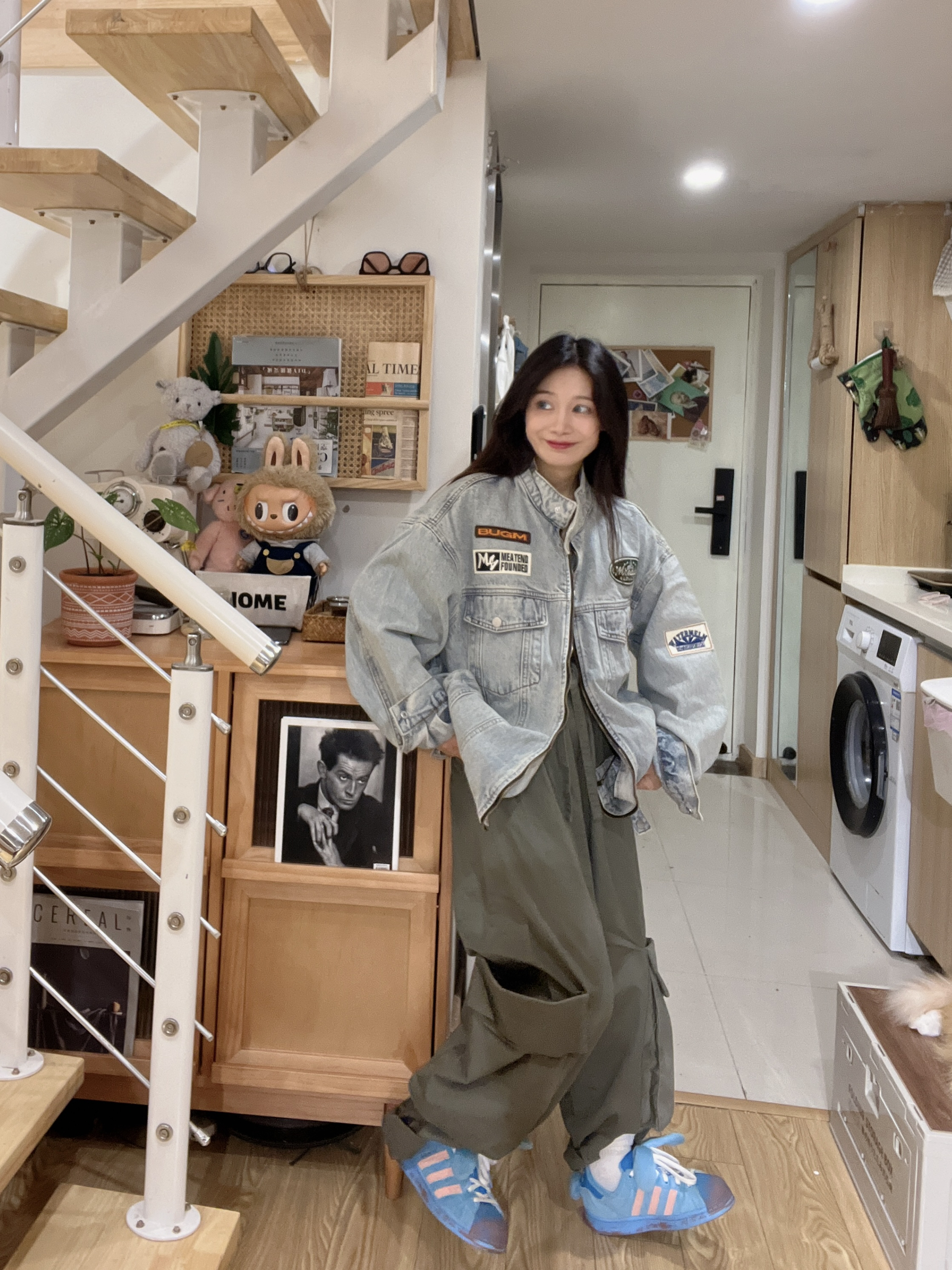 身高|体重: 🧍♂️ 穿搭风格:潮酷街头风美式街头 👔 上衣:DARKCIRCLE牛仔外套 👟 鞋子:阿迪达斯三叶草蓝兔子🐰 秋天的牛仔外套实穿又百搭,男女同款外套🧥, 很喜欢刺绣徽章,而且很厚实的料子。