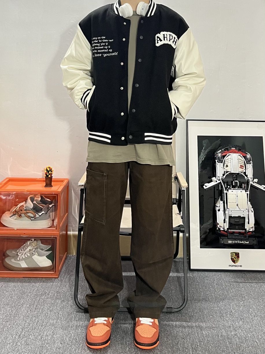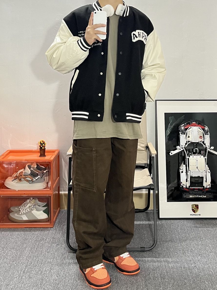 哈喽这里是pupu同鞋🏄🏻♂️ ——————————— · 👔:ahph短款棒球服⚾ 短款版型叠穿非常显高显身材! 贴布印花都非常帅气好看🌵 · 👖:kgk工装直筒长裤✔️ 红棕色很有质感 大口袋设计实用性很高 直筒偏阔腿版型超级百搭 裤长很合适 最近火的美拉德风格也轻松驾驭🧳 · 👟:dunk橙龙虾🦞 ——————————— 💁🏻♂️:170/115 以上都是个人观点🍟欢迎讨论