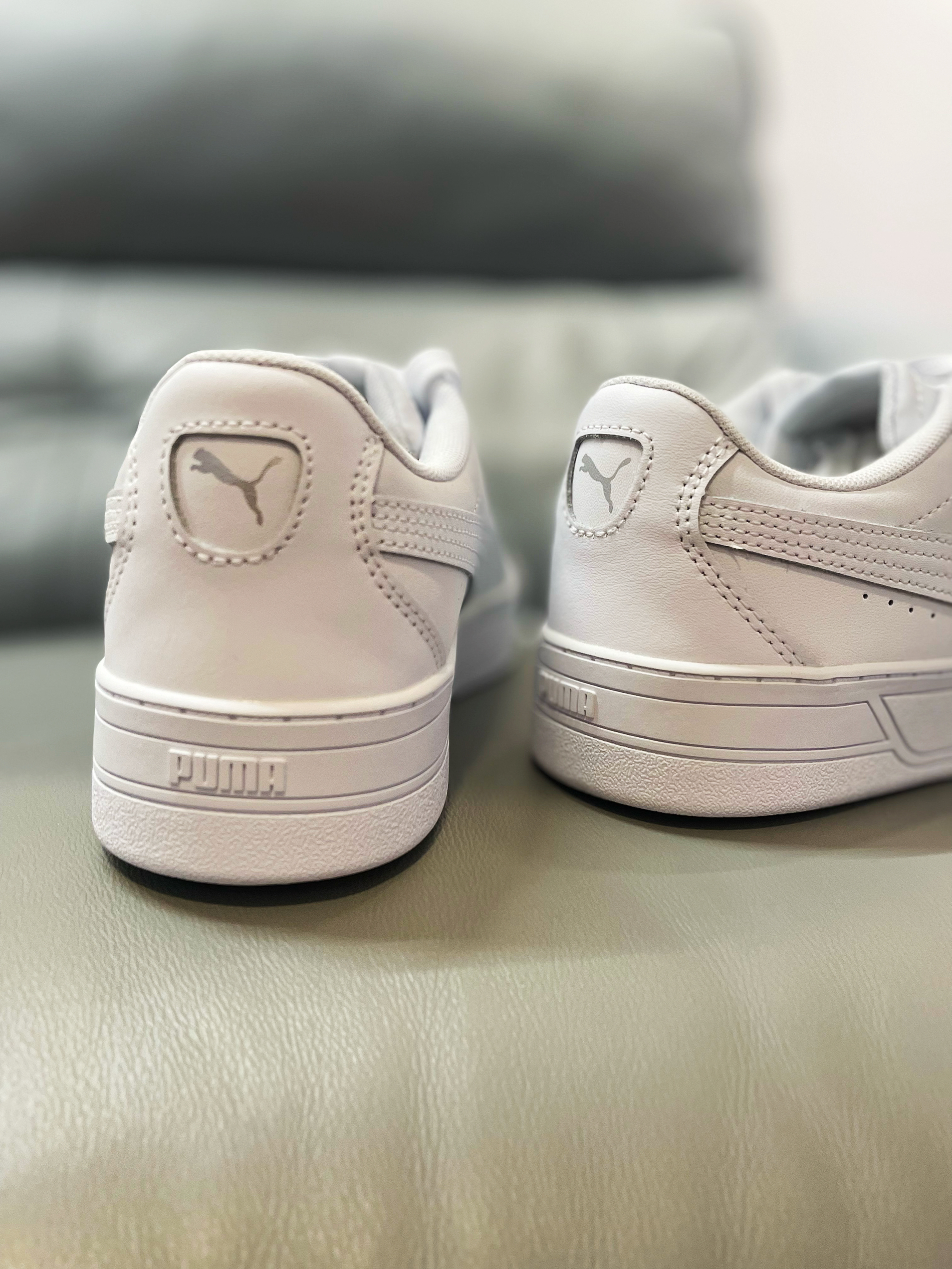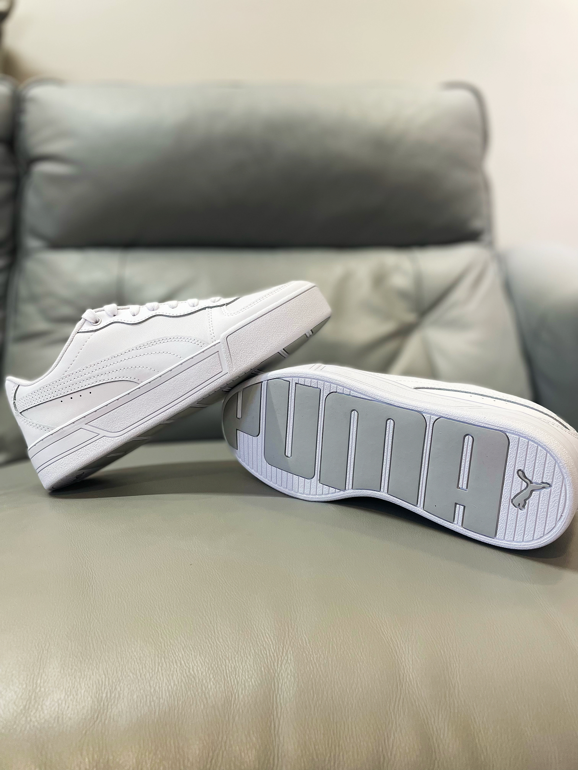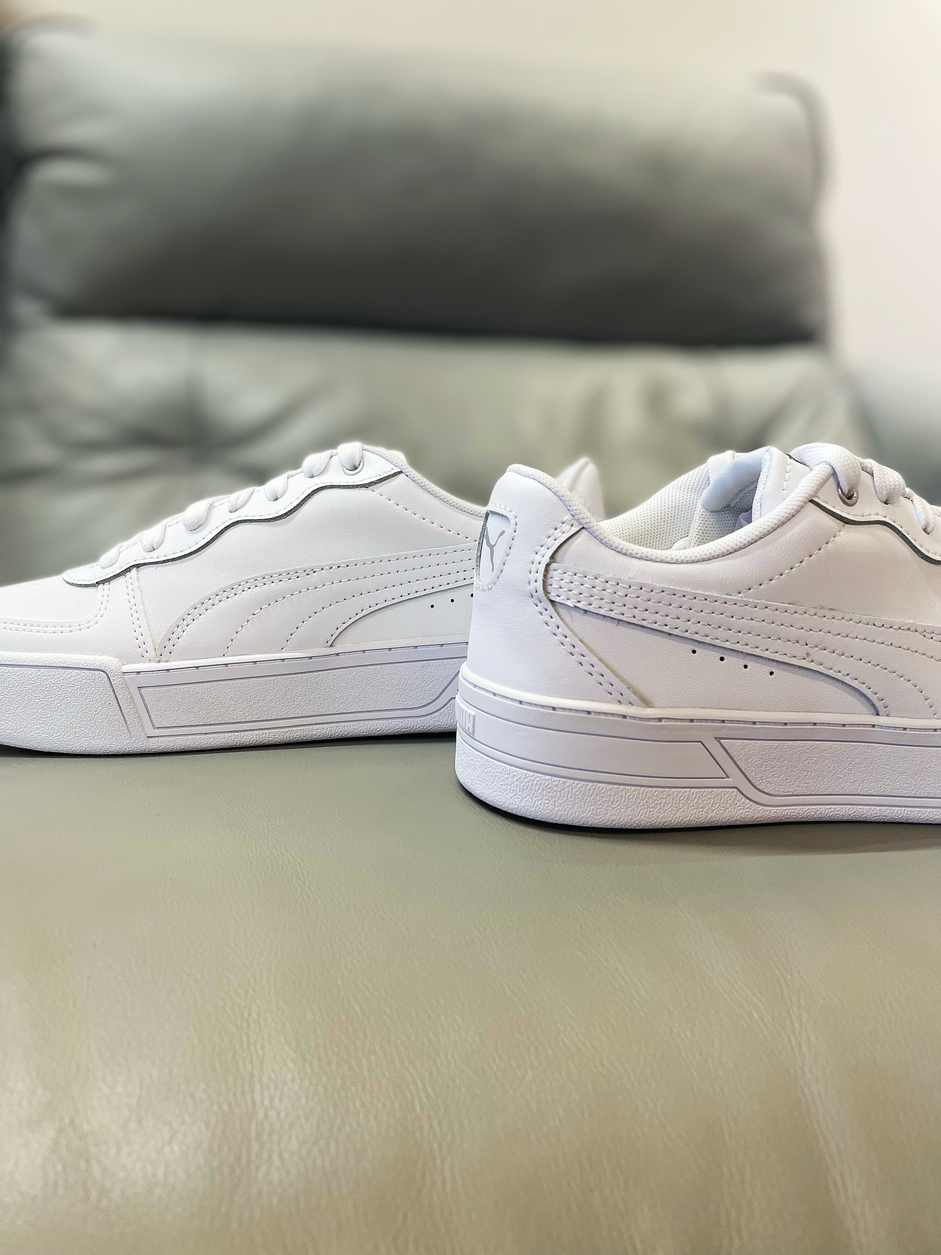 小白鞋是让人非常喜爱的鞋,纯净美丽!不论春秋,冬日,都是可以穿搭的。这款鞋,尤其秋天这个季节,是最舒服好看的。 💖鞋面材质选用了合成革,拼接纹路明显。透气网孔设计,有一定透气性。系带的闭合方式。橡胶底,多纹路,鞋底处有彪马标识。纯白色,没有其他配色。 💞脚感还算不错吧,有些宽胖的样式,适合大多数人。不错的颜值,百搭的款式,较低的价位,还是不错的选择。性价比,还是很高的。