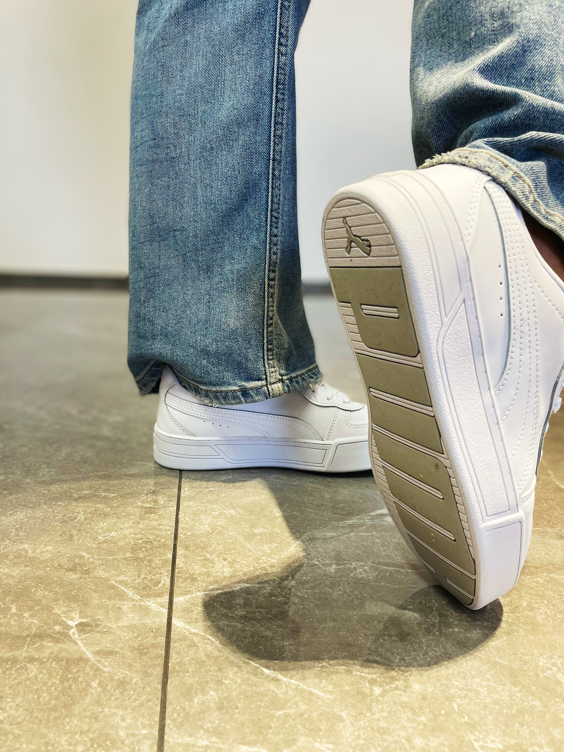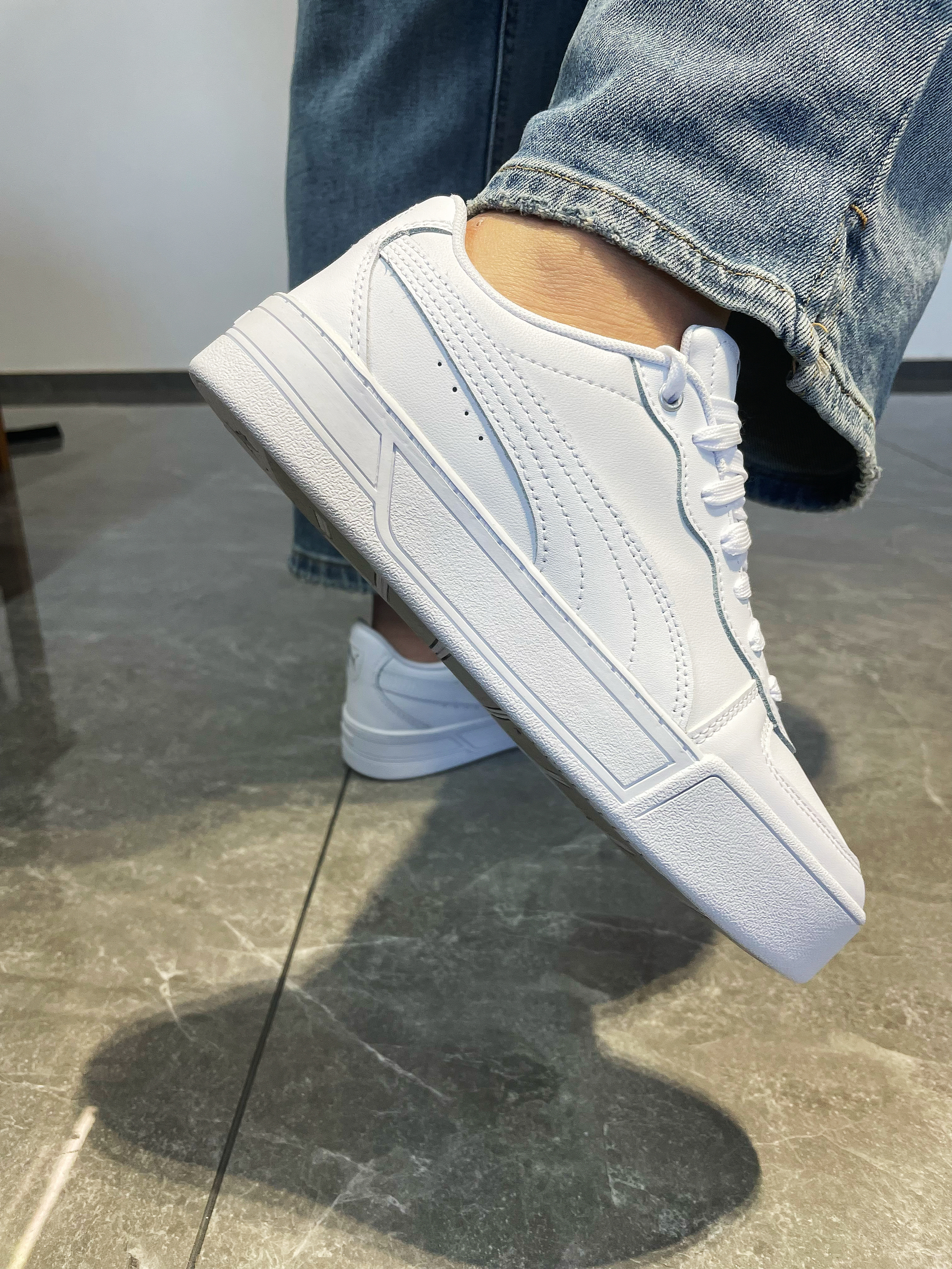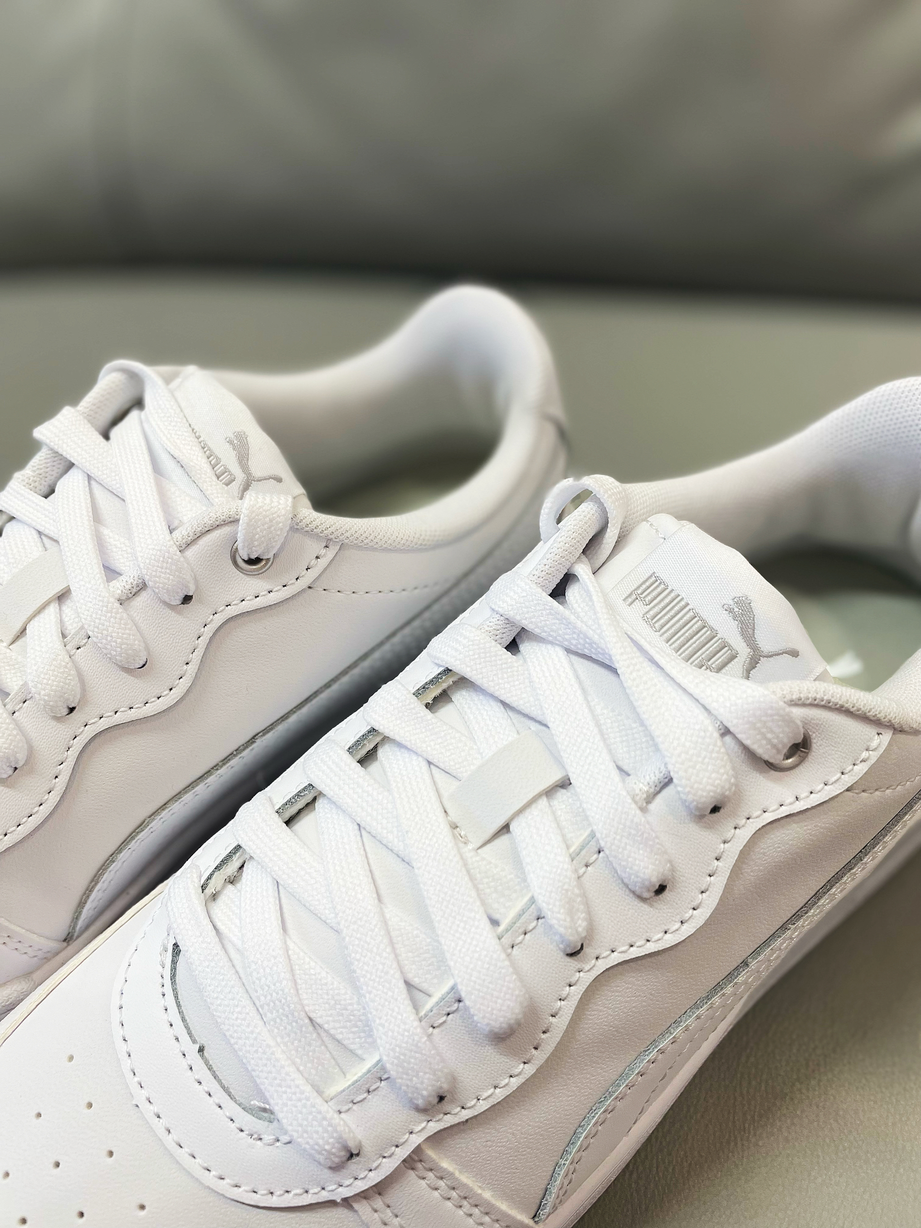 小白鞋是让人非常喜爱的鞋,纯净美丽!不论春秋,冬日,都是可以穿搭的。这款鞋,尤其秋天这个季节,是最舒服好看的。 💖鞋面材质选用了合成革,拼接纹路明显。透气网孔设计,有一定透气性。系带的闭合方式。橡胶底,多纹路,鞋底处有彪马标识。纯白色,没有其他配色。 💞脚感还算不错吧,有些宽胖的样式,适合大多数人。不错的颜值,百搭的款式,较低的价位,还是不错的选择。性价比,还是很高的。