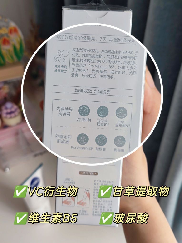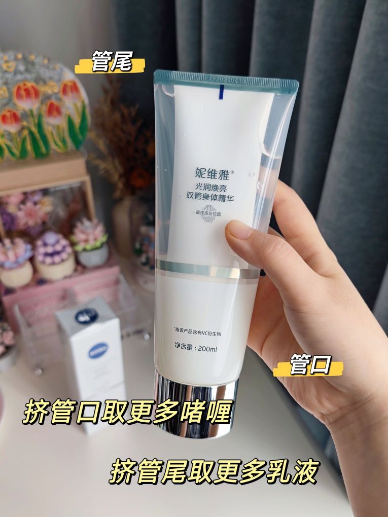 🌸大家有没有觉得现在的天气越来越干燥了呢?我们北方地区已经降温好一阵子了,感觉户外风也很大,平时护肤的话不仅要注重面部,身体护理也要开始了,分享这款妮维雅光润焕亮双管身体精华,真的是新奇又好用呢~ 🌸它这个是肌底液+美容液二合一的设计,一次挤出两种质地,外管是莹润肌底液,透明流动啫喱质地,能够维稳强韧持久水润,内管是焕亮美容液,白色滋润乳液质地,可以光感焕亮减少暗沉,搭配使用真的很不错~ 🌸成...