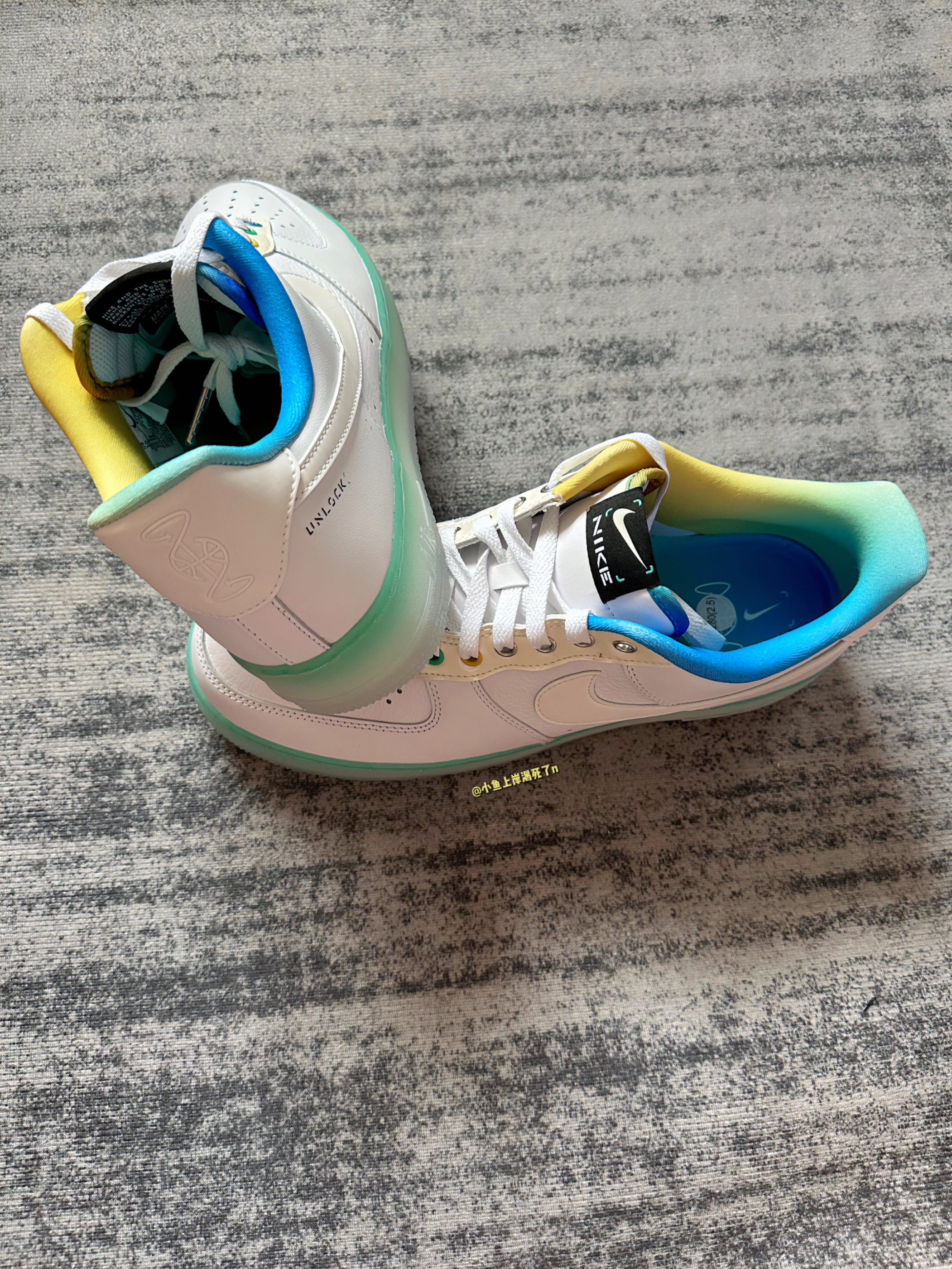 哈喽 小鱼🐟来喽! 今天给大家视频推荐分享这双空军一号 白蓝👟 鞋面全牛皮革材质 皮质挺软的 质感也很好 鞋身白蓝配色 后跟内衬渐变设计我很喜欢 中底大底都是渐变蓝色水晶大底 还是挺好看的 但是容易氧化 个人建议尽量少踩水 会加速氧化 目前女码4开左右性价比真的高 男码贵一些