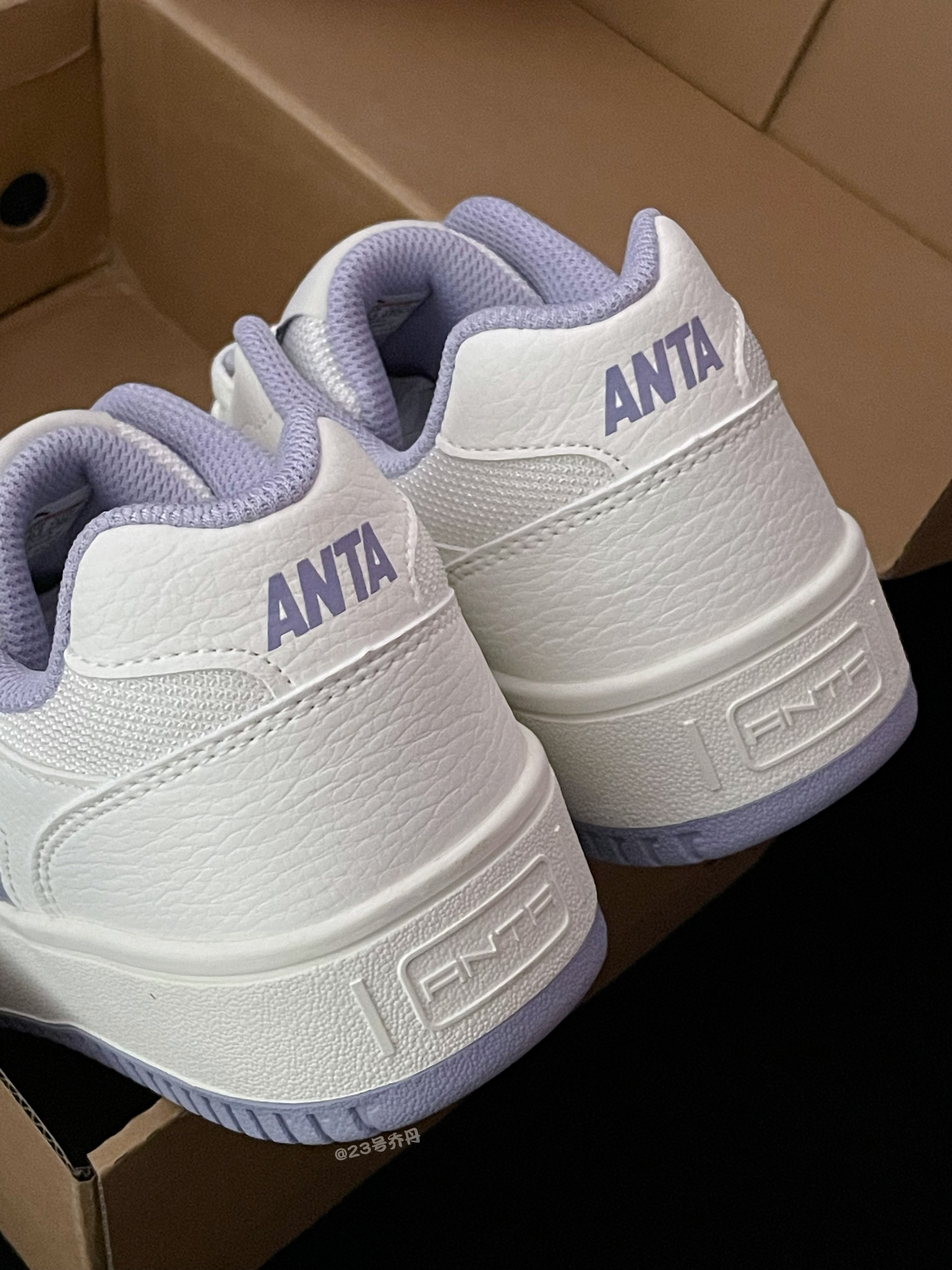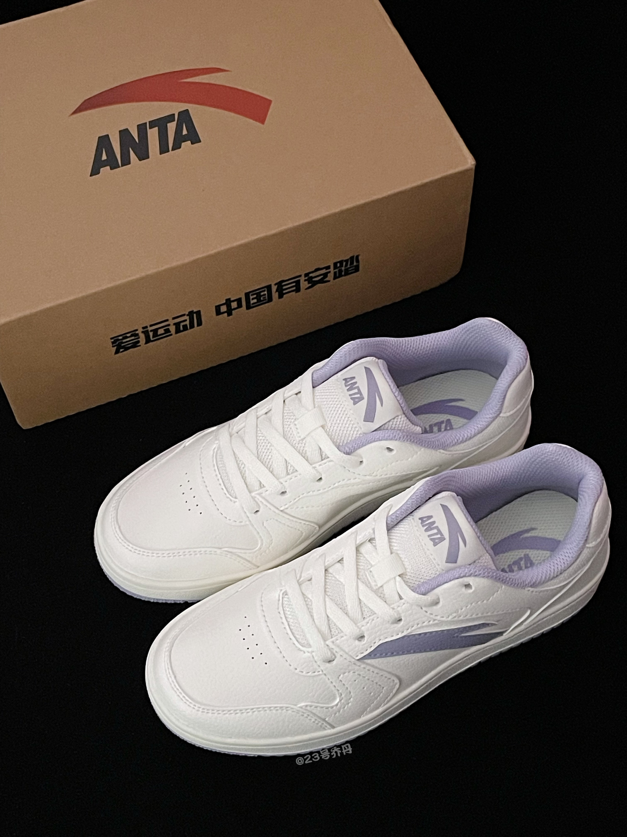 今天给大家分享这双颜值和性价比都不错的 Anta安踏 小零感『白紫』板鞋👟 整双鞋以白色为主色调 细节部分运用了香芋紫进行点缀 鞋面选用了质感到位易于打理的荔枝纹路皮革 鞋头的透气孔设计保证了一定的透气性 鞋身外侧香芋紫的Anta Logo颇为吸睛 鞋舌与鞋尾也都设计有品牌Logo图案 中底部分较为厚实 有3⃣️公分左右增高 最后由香芋紫多纹路耐磨防滑橡胶底收尾 整体来说这是一双兼具颜值和质感的板...