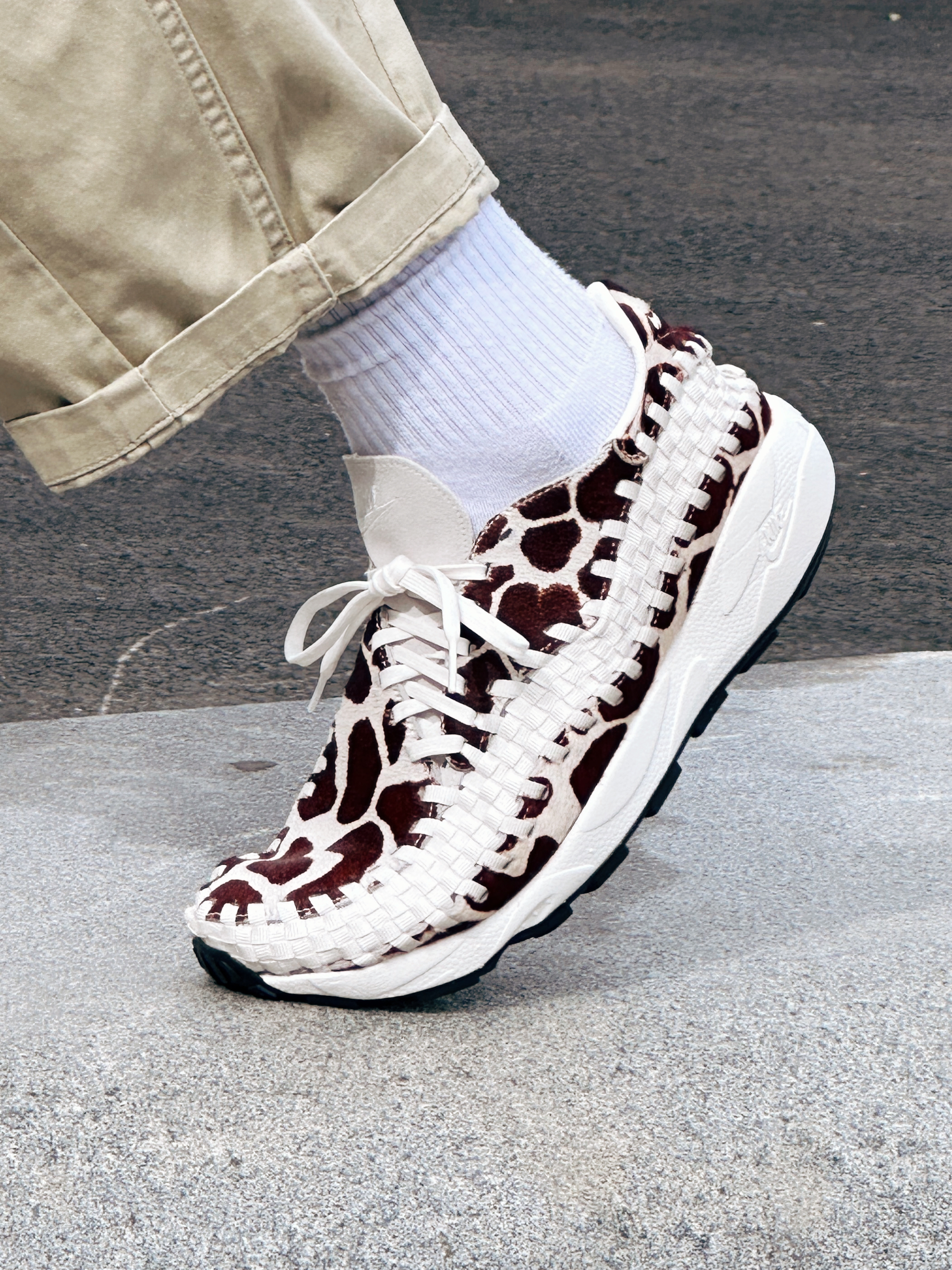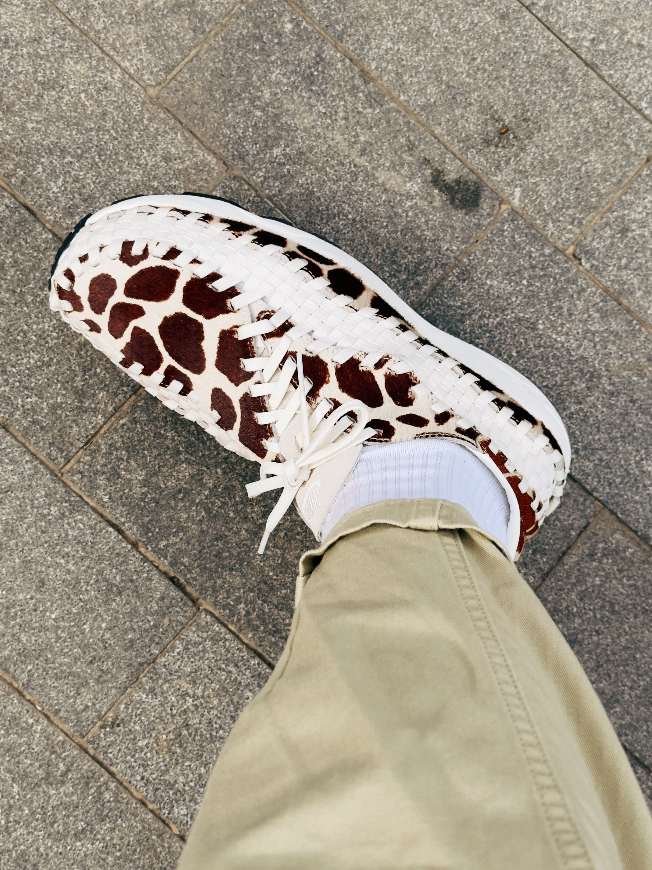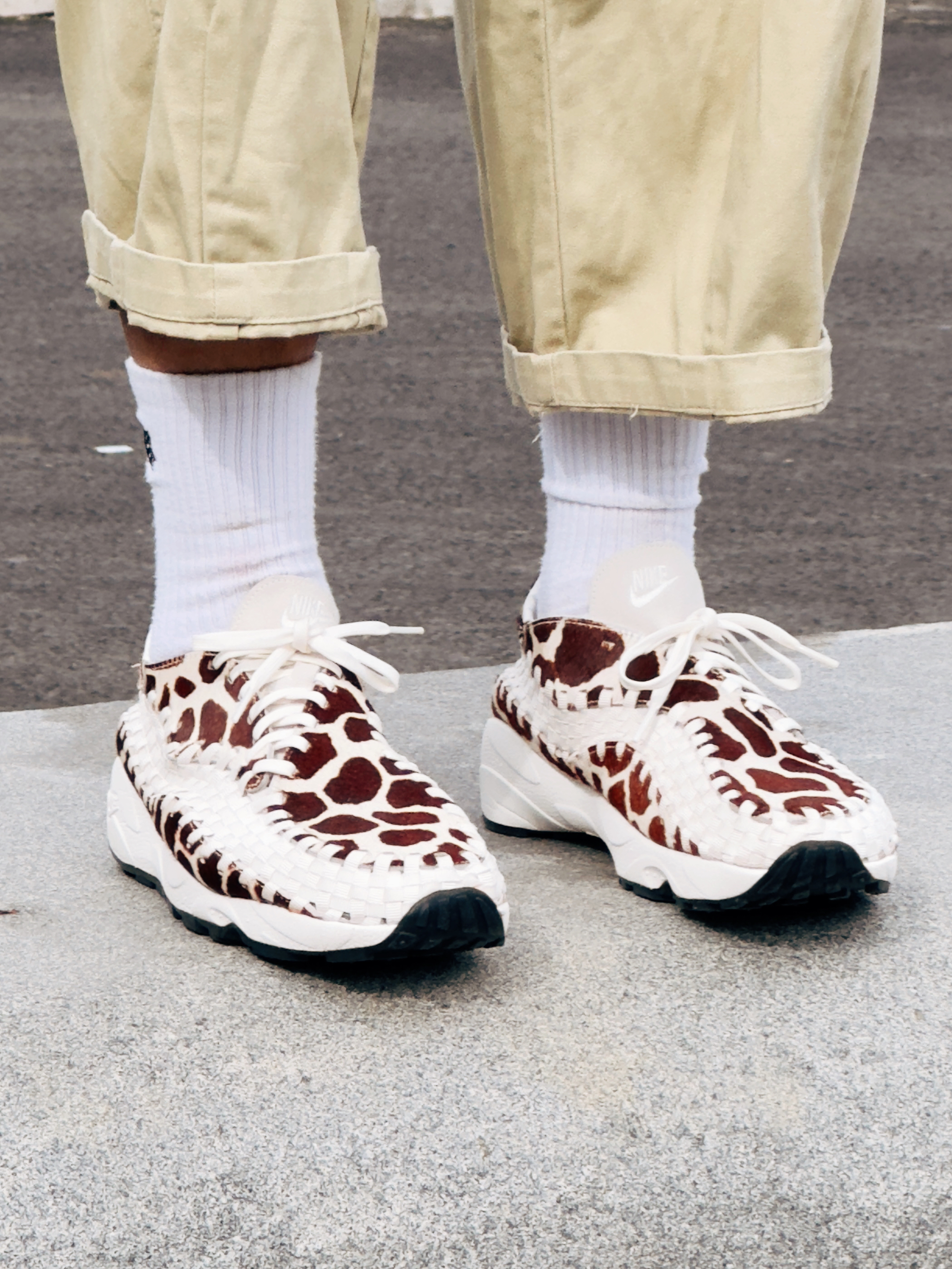 Nike Footscape Woven 长颈鹿,买它没别的原因,以前的潮流天花板,如今复刻回归,没有拒绝的理由啊! 整双鞋采用了原汁原味的方式回归,中帮的鞋型搭配起来更轻松! 全身采用了仿马毛的皮革,质感特强,鞋身外侧环绕型的编织带,非常有艺术性,每次看编织的纹路我都觉得像马赛克,鞋身内侧采用了细腻的皮革打造,增加了舒适性! 中底采用了全掌 PHYLON 泡棉加后掌内置 Air Sole...