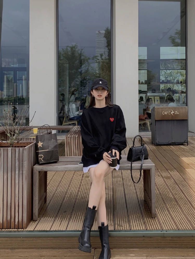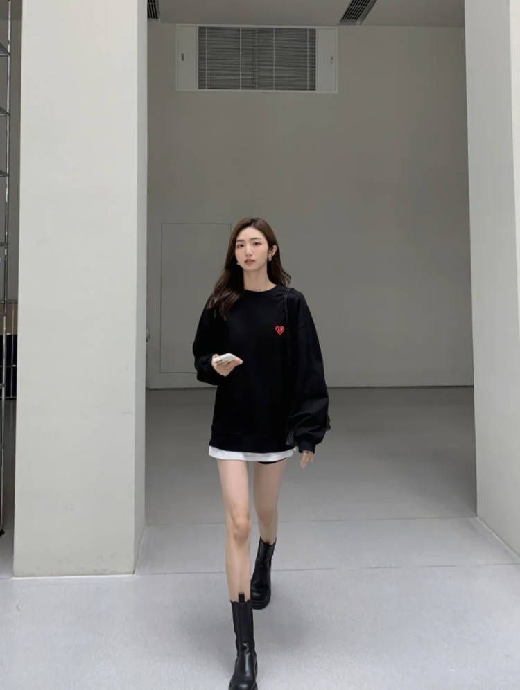 只要衣服版型做得好,上身是妥妥的自带氛围感,想要配得时髦,入秋的天气不妨可以试试下半身失踪的穿搭,搭配一双靴子真的很好看!