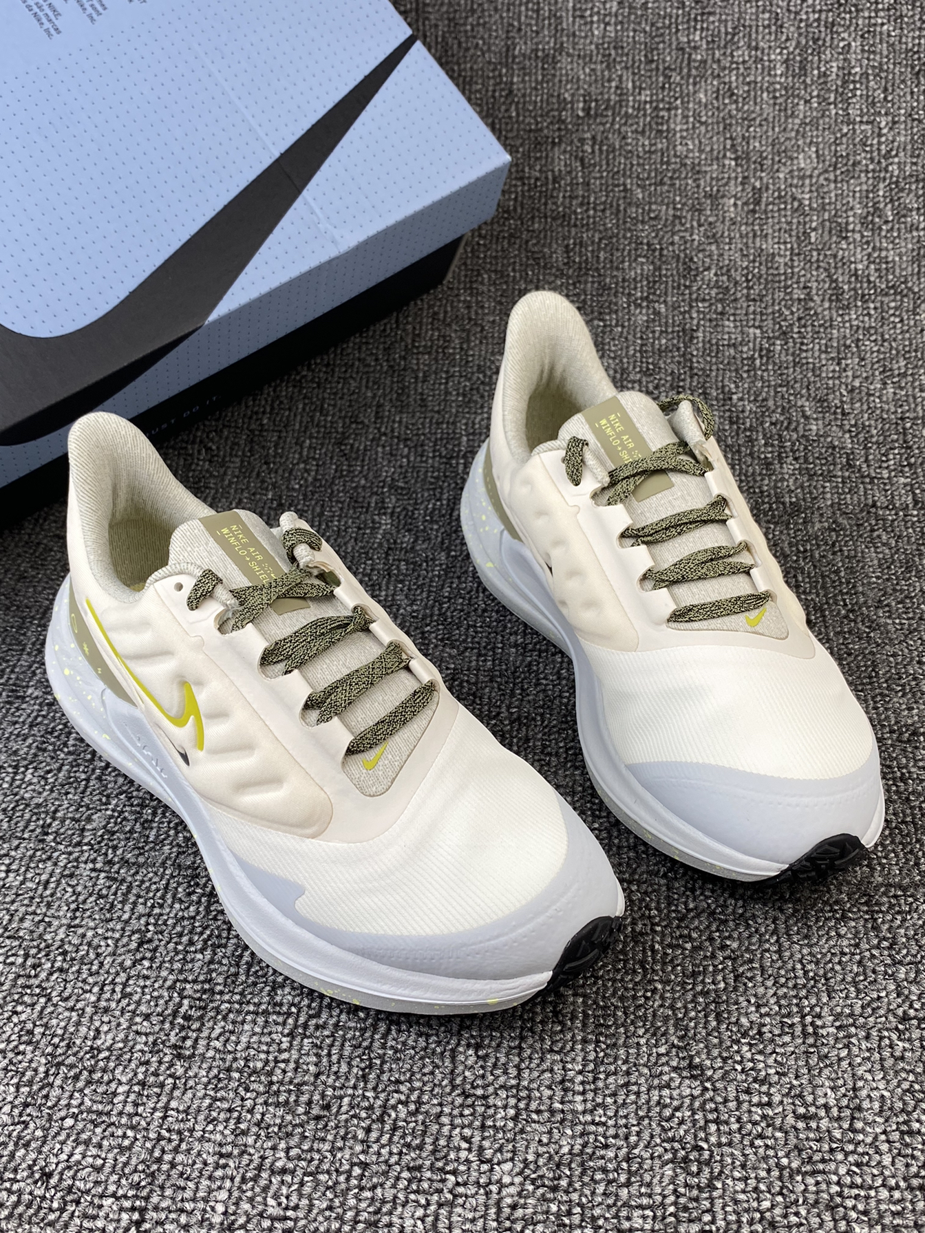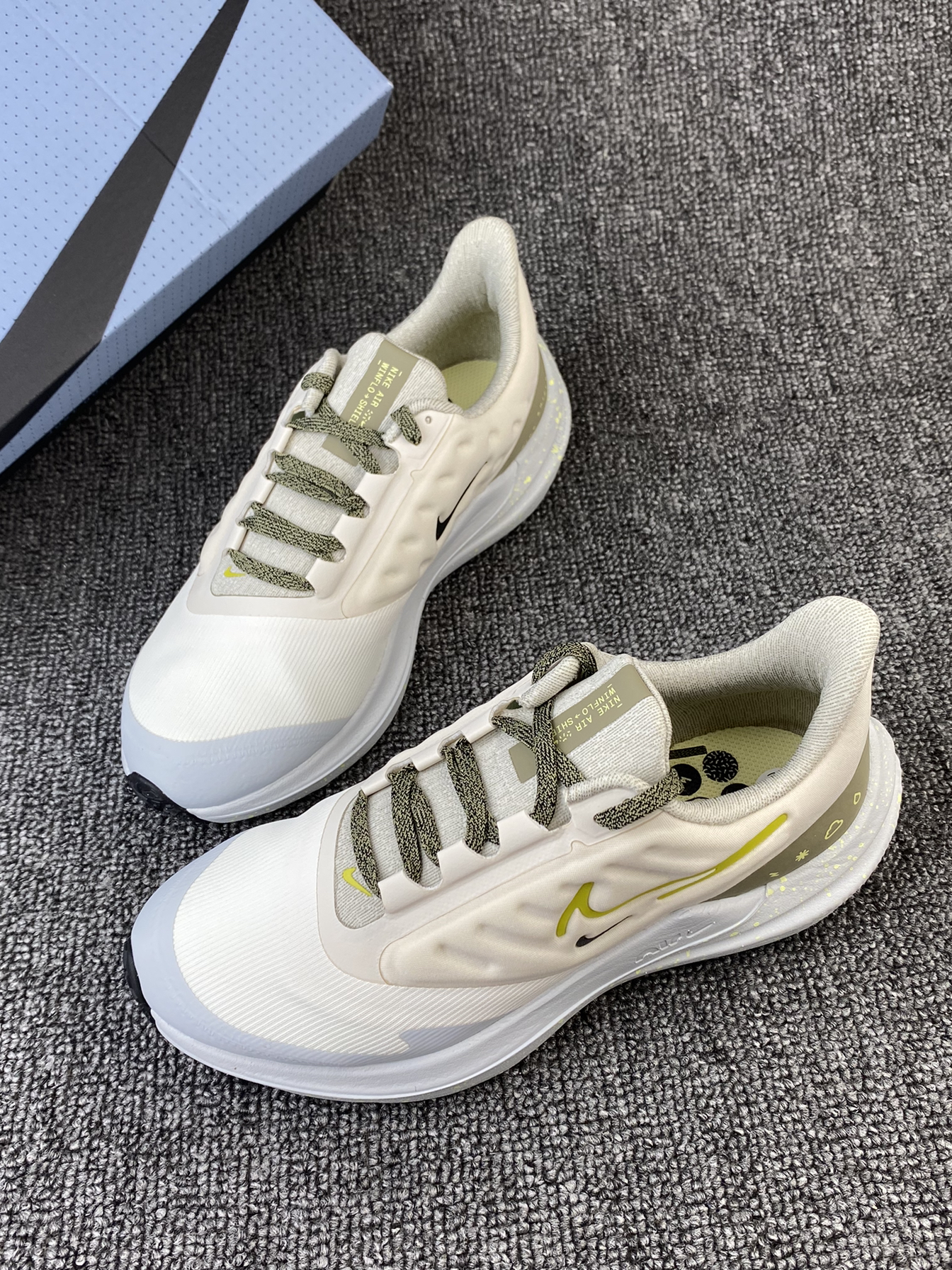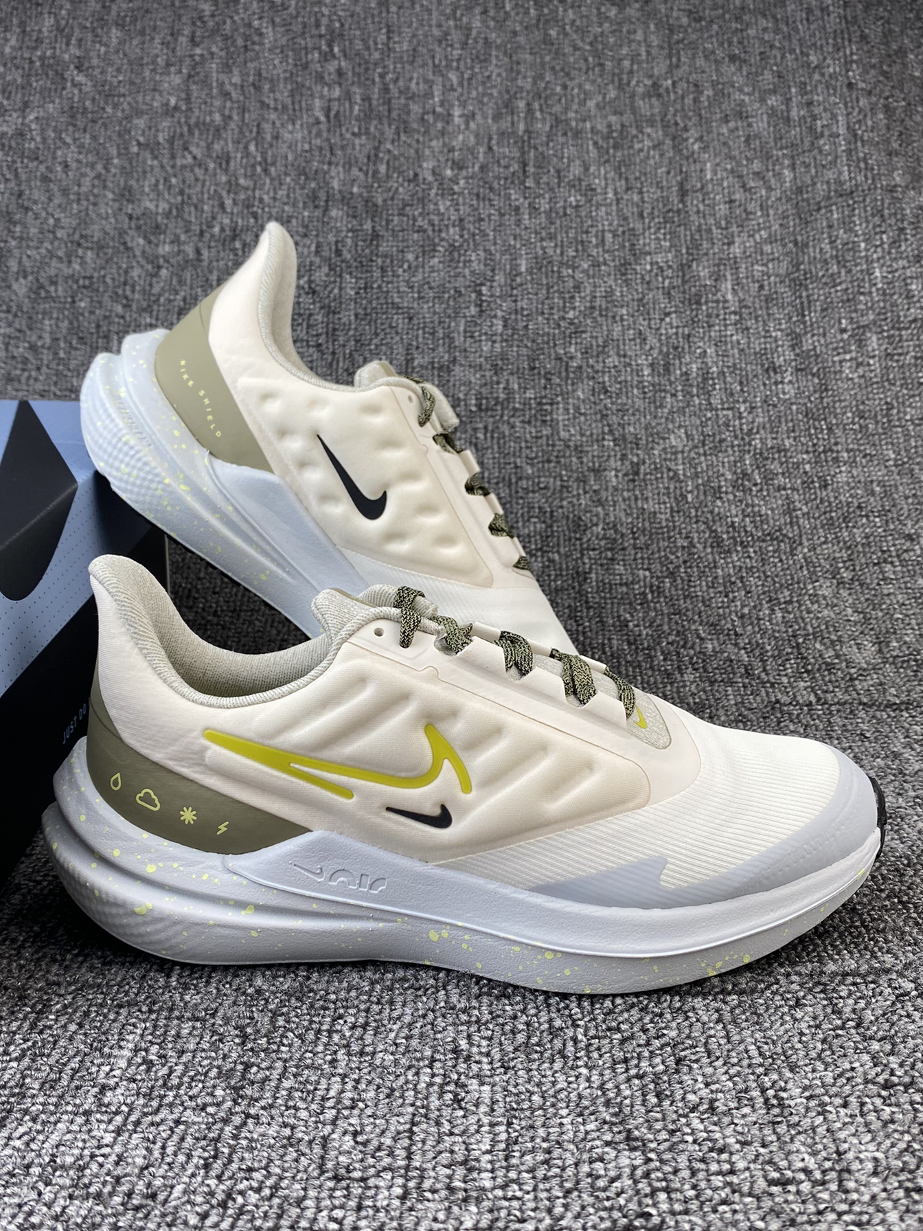 👟Nike Winflo 9 Shield 跑鞋 ✨Winflo 9都不陌生吧!这次发售新配色啦!鞋子整体以白黄色为主,很清新亮眼的色调。 🌸鞋面采用的是织物以及合成材质拼接的,同时加入了拒水处理,就算是在下雨天穿着也不用担心啦!另外鞋侧加入了太空棉,很好的提升了鞋子的舒适感。中底部分内置全掌Air缓震配置,脚感很好。 🌟颜值很高且很好穿的跑鞋真的很爱!目前刚刚发售,喜欢的我觉得可以再等等~